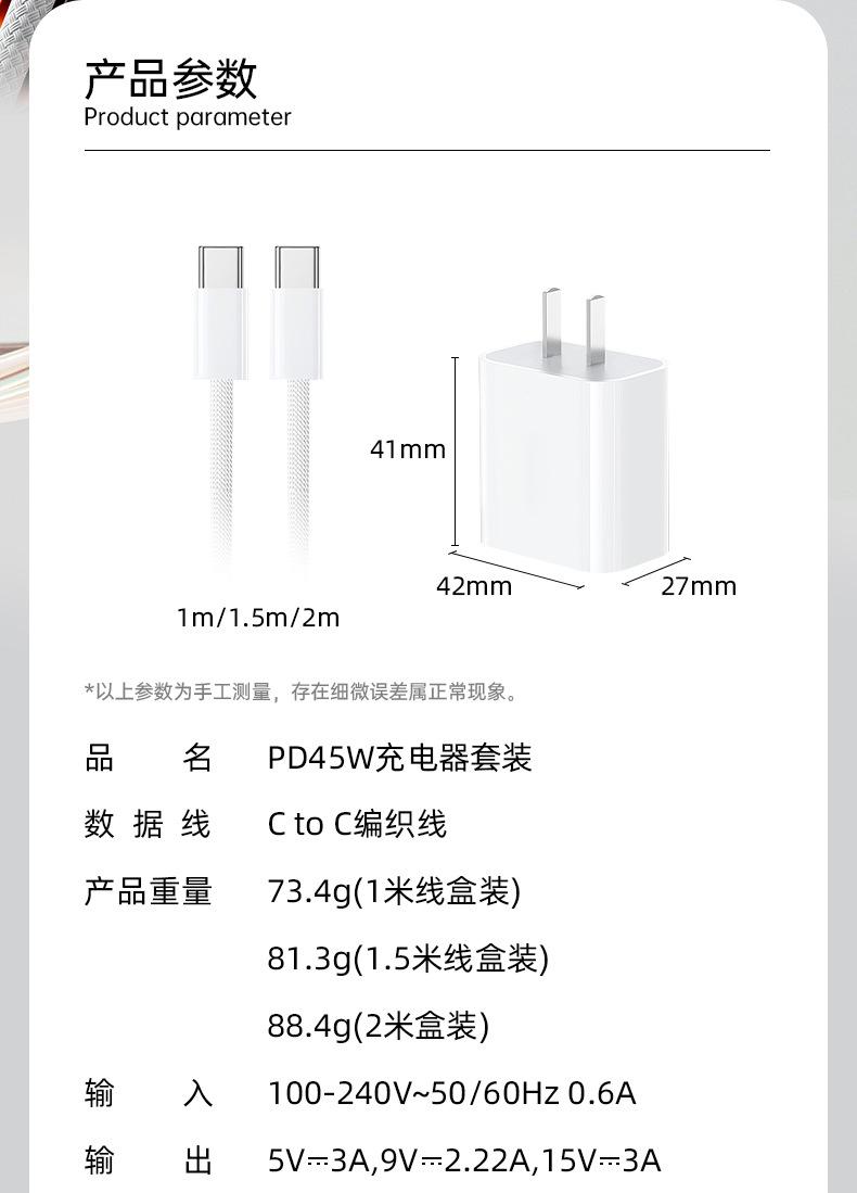 3c head boxed, Pd45w+ 1m braided wire [ccc certification], Pd45w+ 1.5m braided wire [ccc certification], Pd45w...