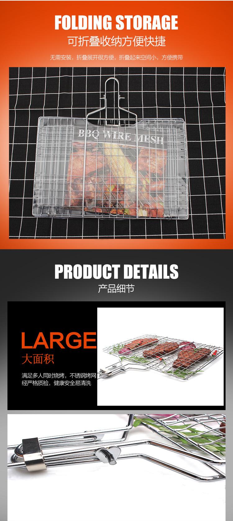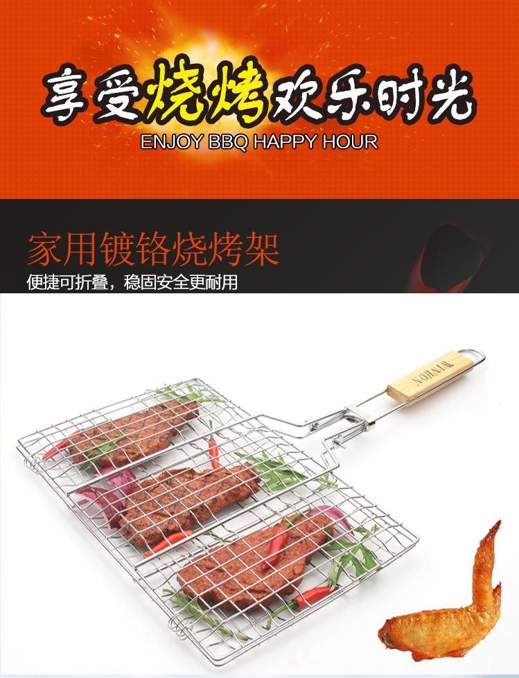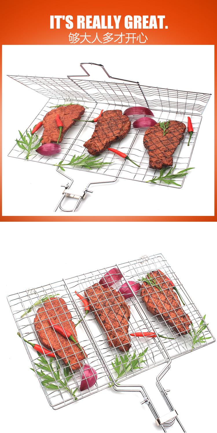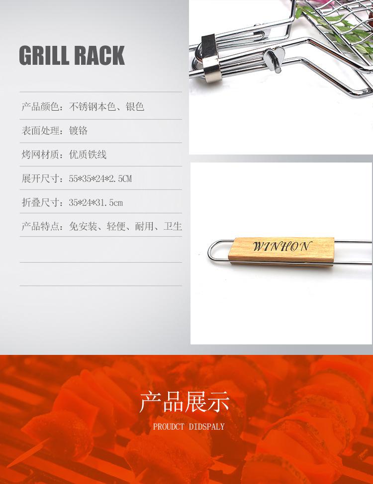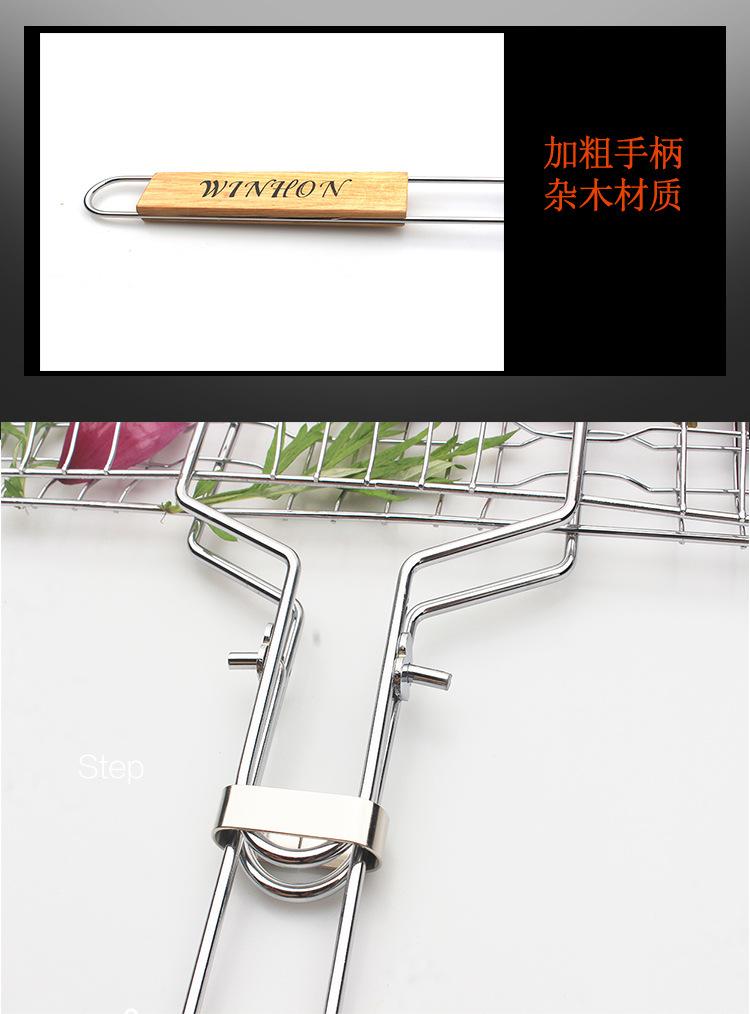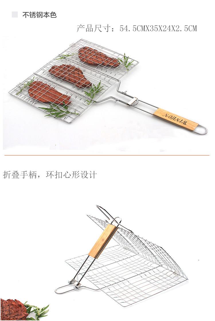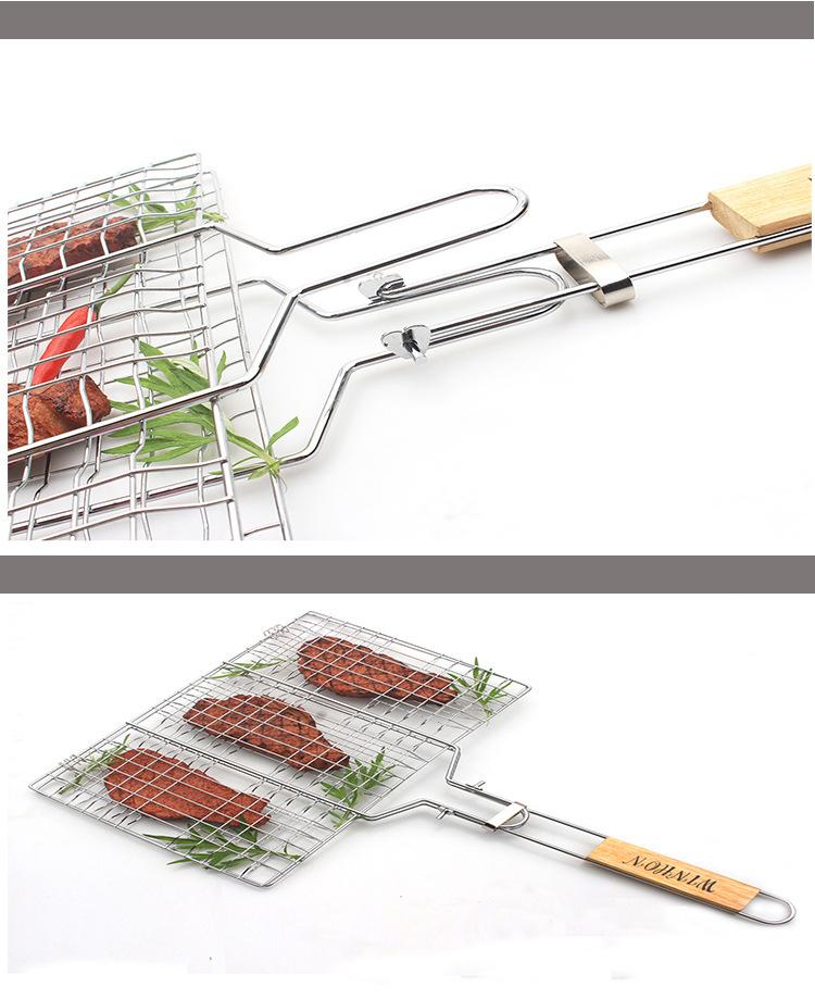 Red de barbacoa plegable para exteriores, herramientas de barbacoa, mango de madera de acero inoxidable, pinza para alimentos, pinza para pescado a la parrilla, red de parrilla de barbacoa desmontable