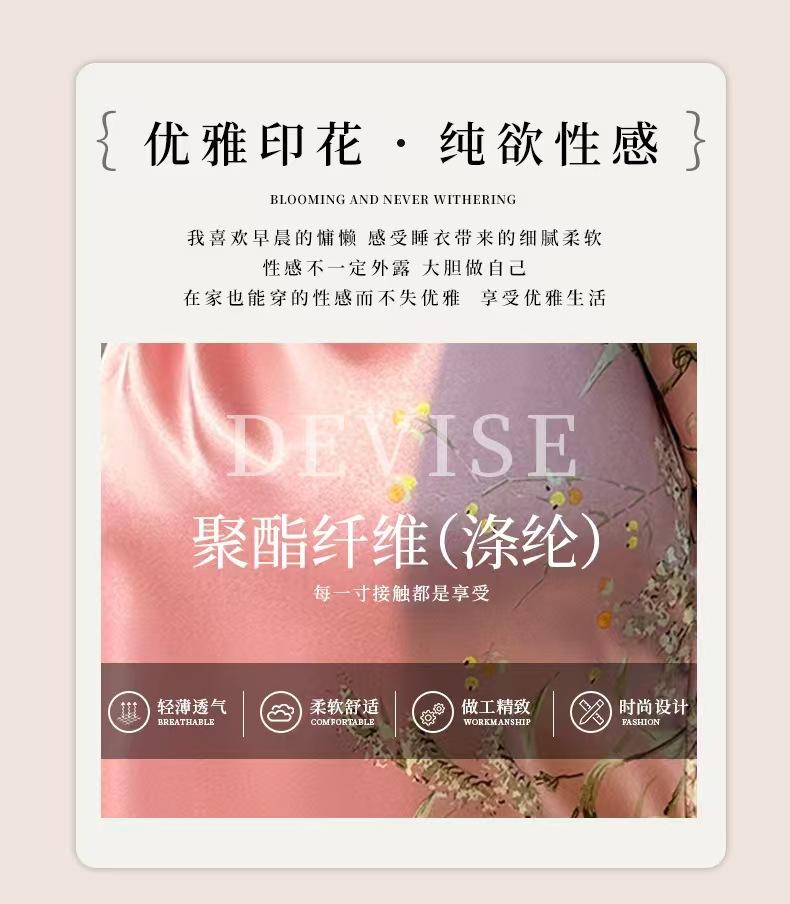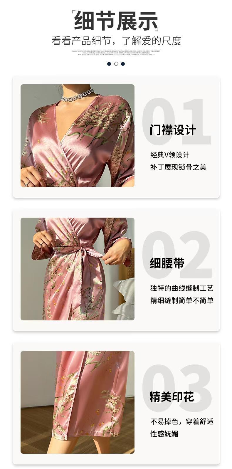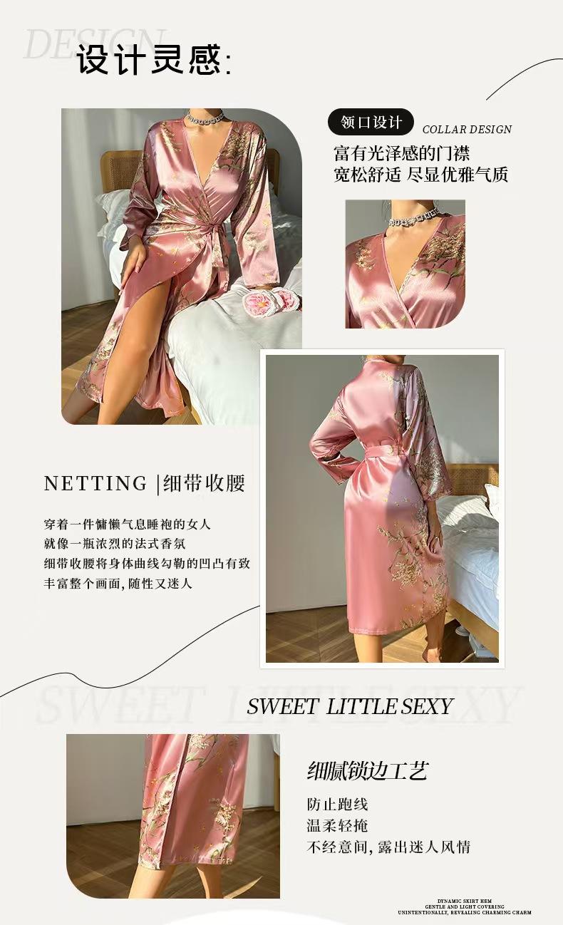 Pijama sexy europeo y americano con tirantes finos, cárdigan estampado de primavera y verano, de seda de manga larga, ropa de casa para mujer