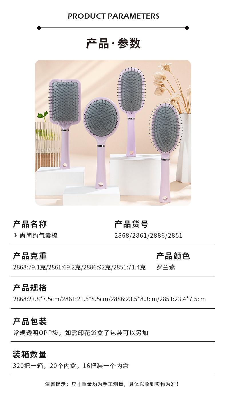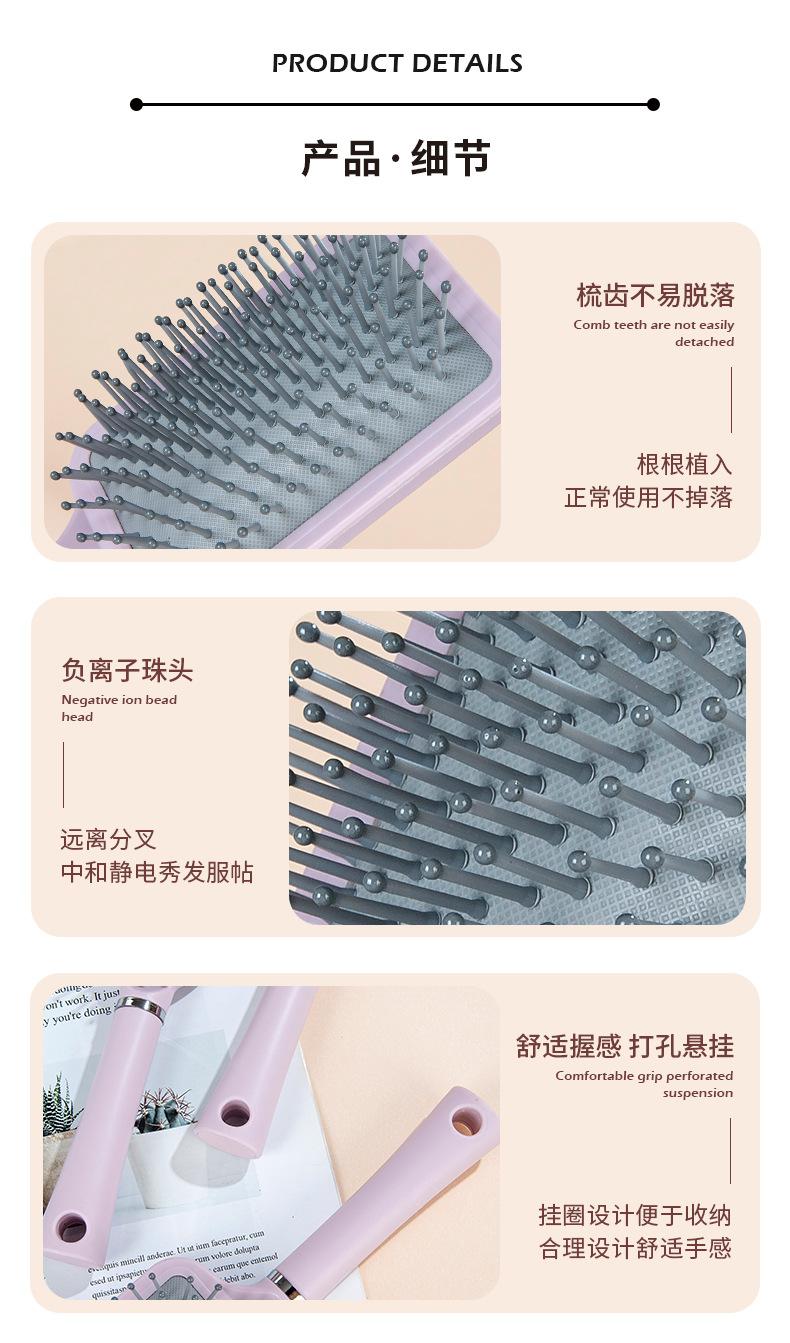 Peine antiestático para mujer de uso doméstico con cojín para cabello largo, bolsa de aire, dormitorio, mango largo, peine para masaje, suministro directo de fábrica