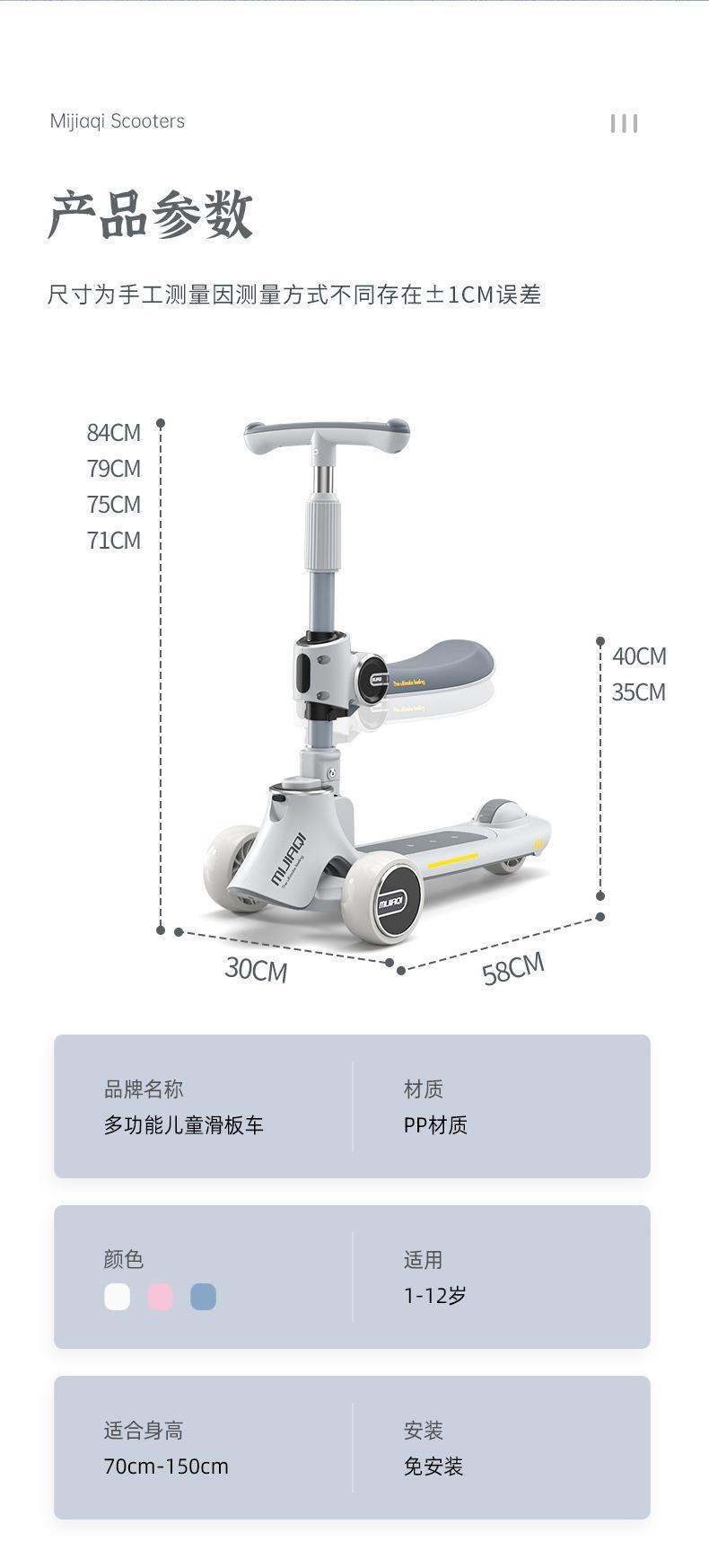 Scooter para niños niño grande arroz alto tres ruedas 1-3-6-12 años puede sentarse en el scooter tres en uno Mijia Qijia al por mayor