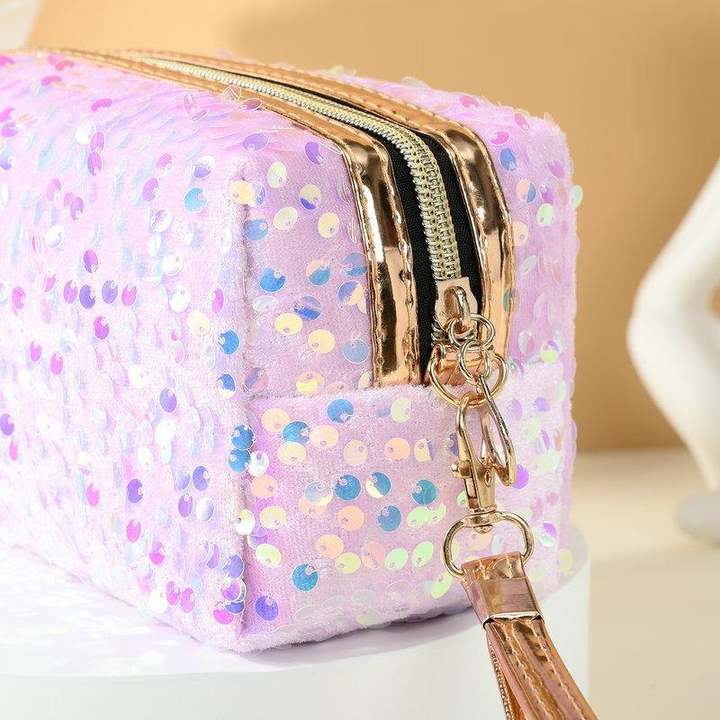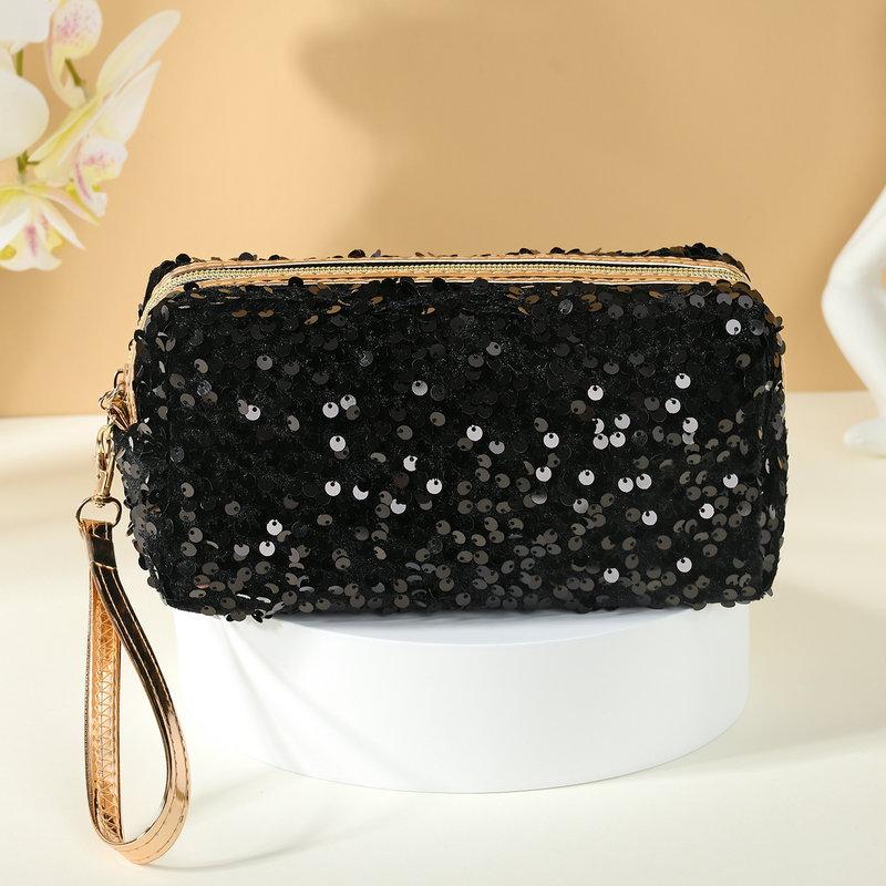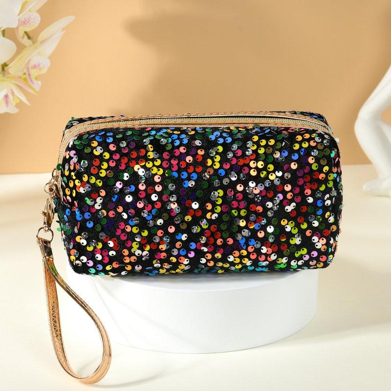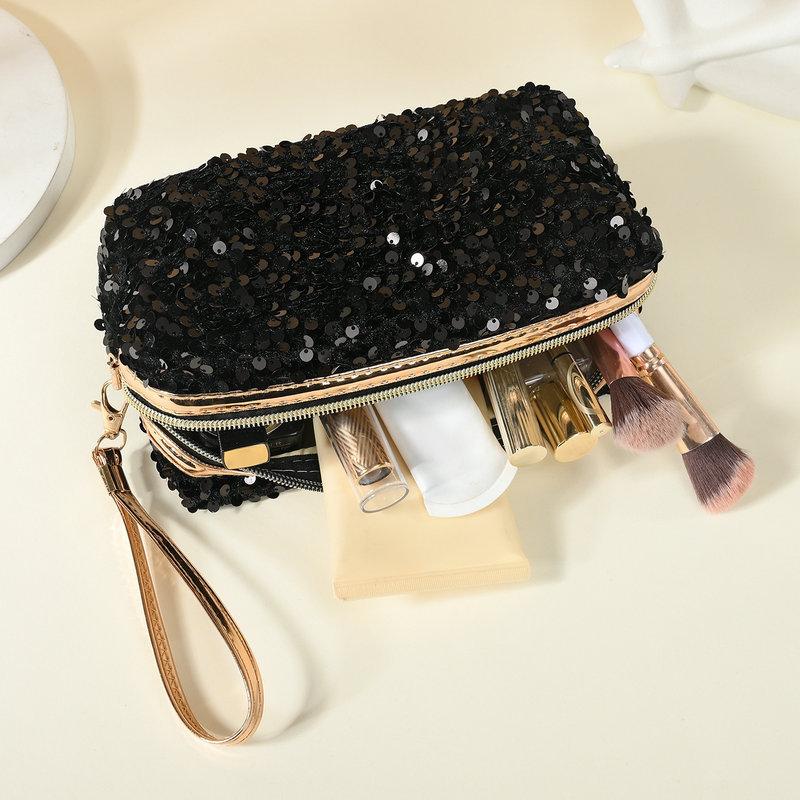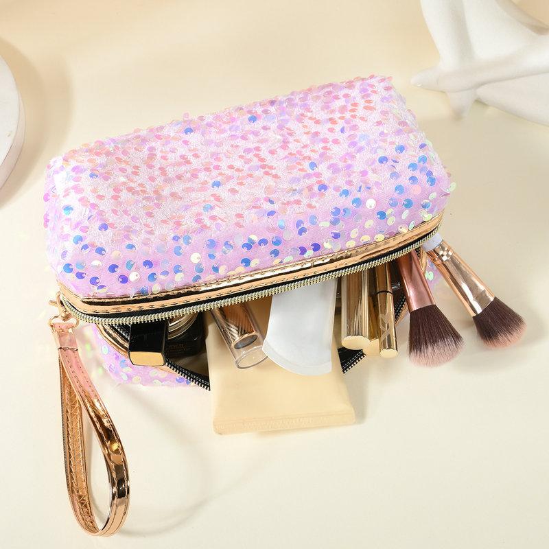 Bolsa de almacenamiento de cosméticos con lentejuelas, gran capacidad, portátil, para viajes, 2023
