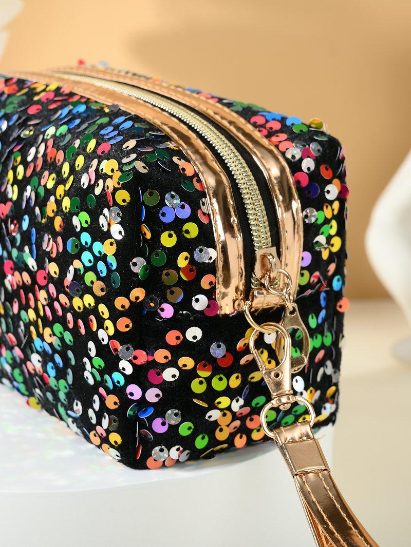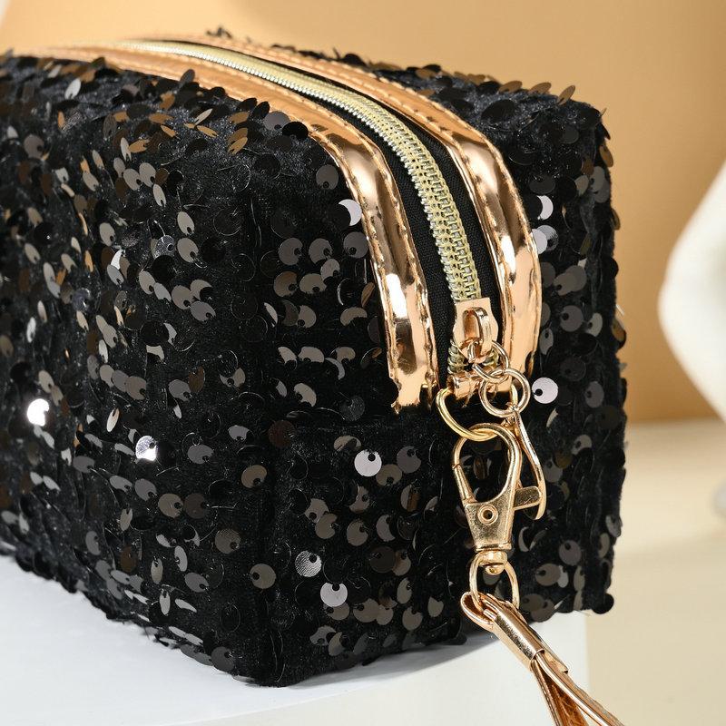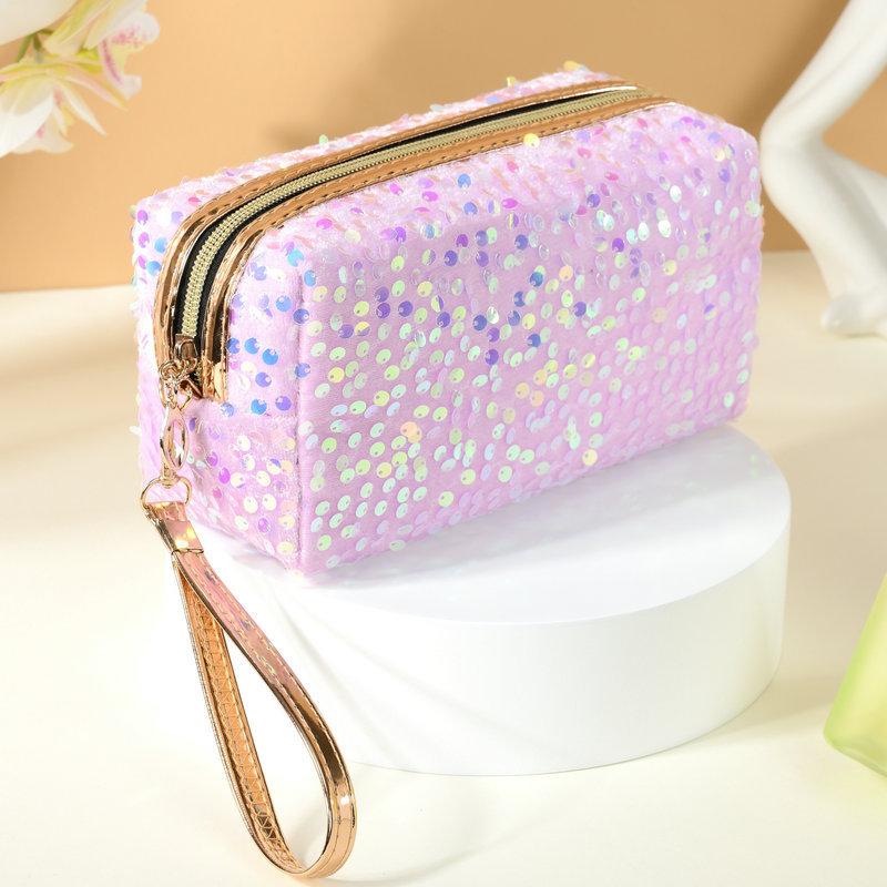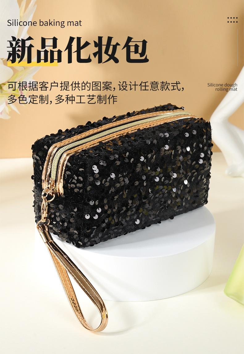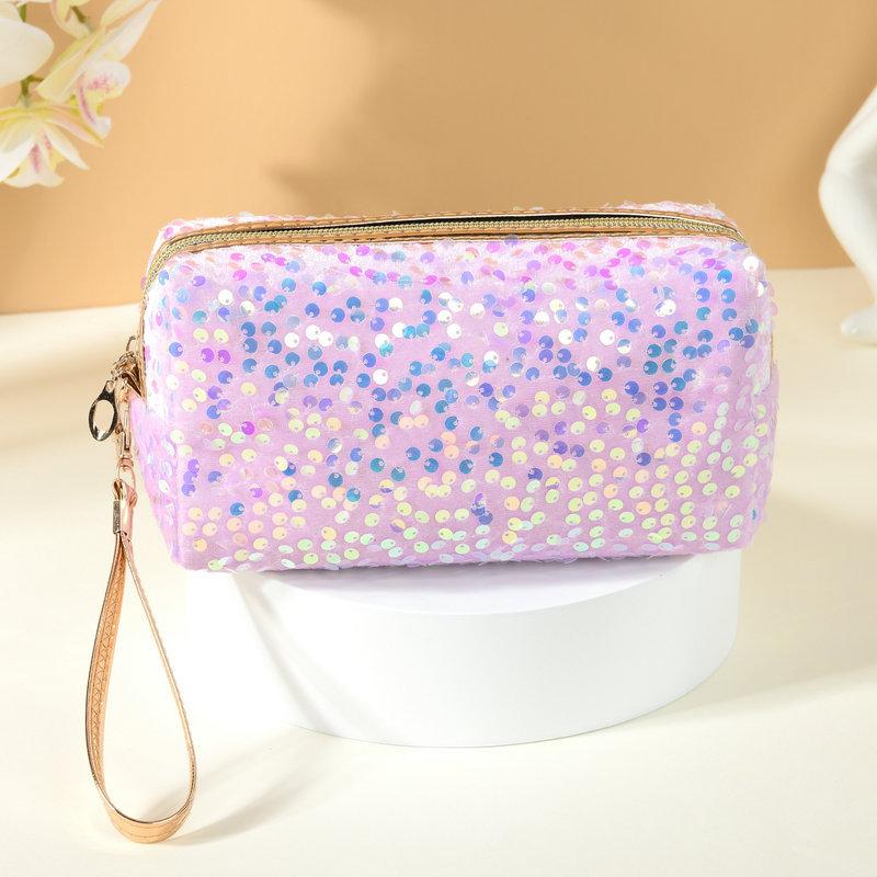 Bolsa de almacenamiento de cosméticos con lentejuelas, gran capacidad, portátil, para viajes, 2023