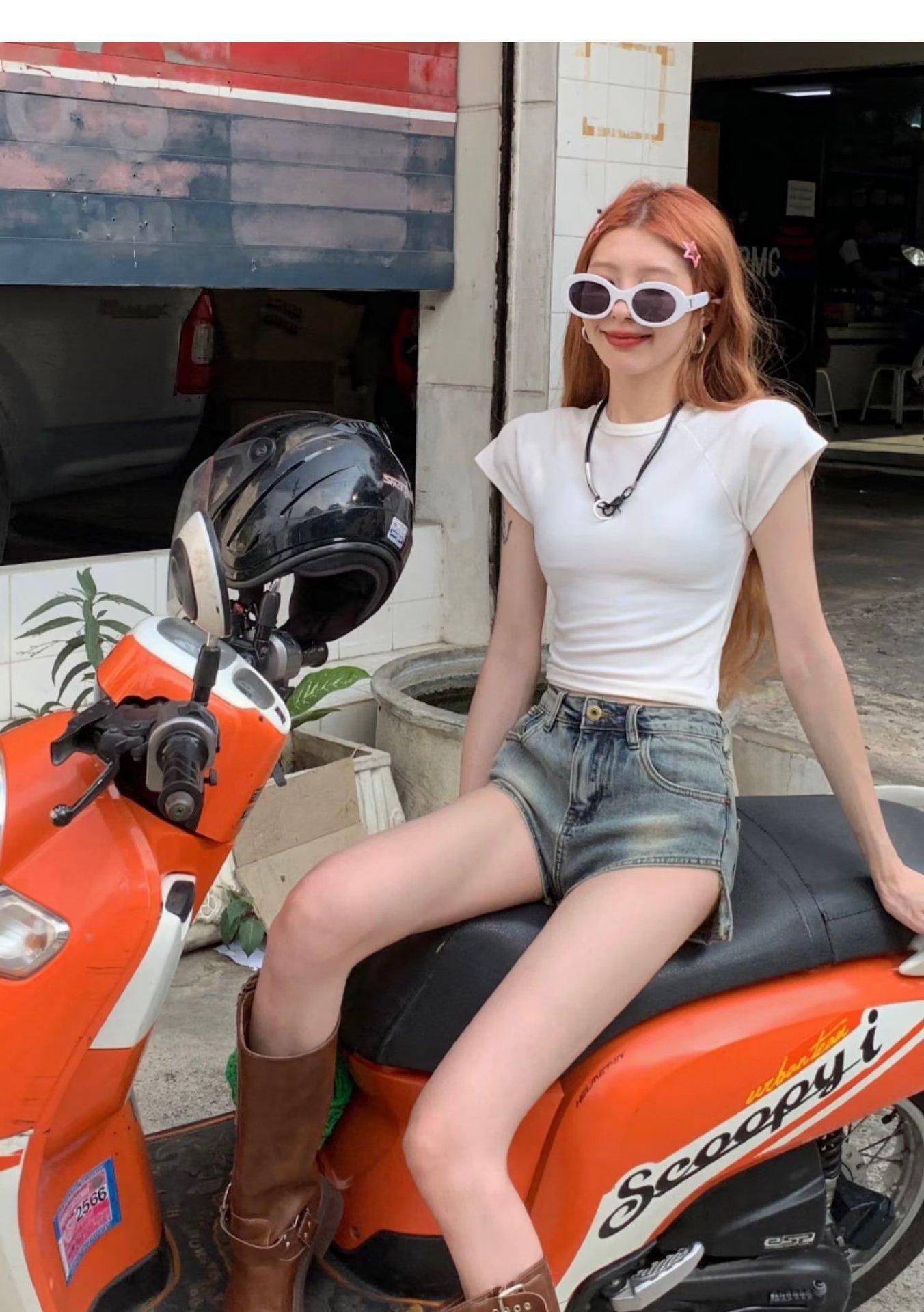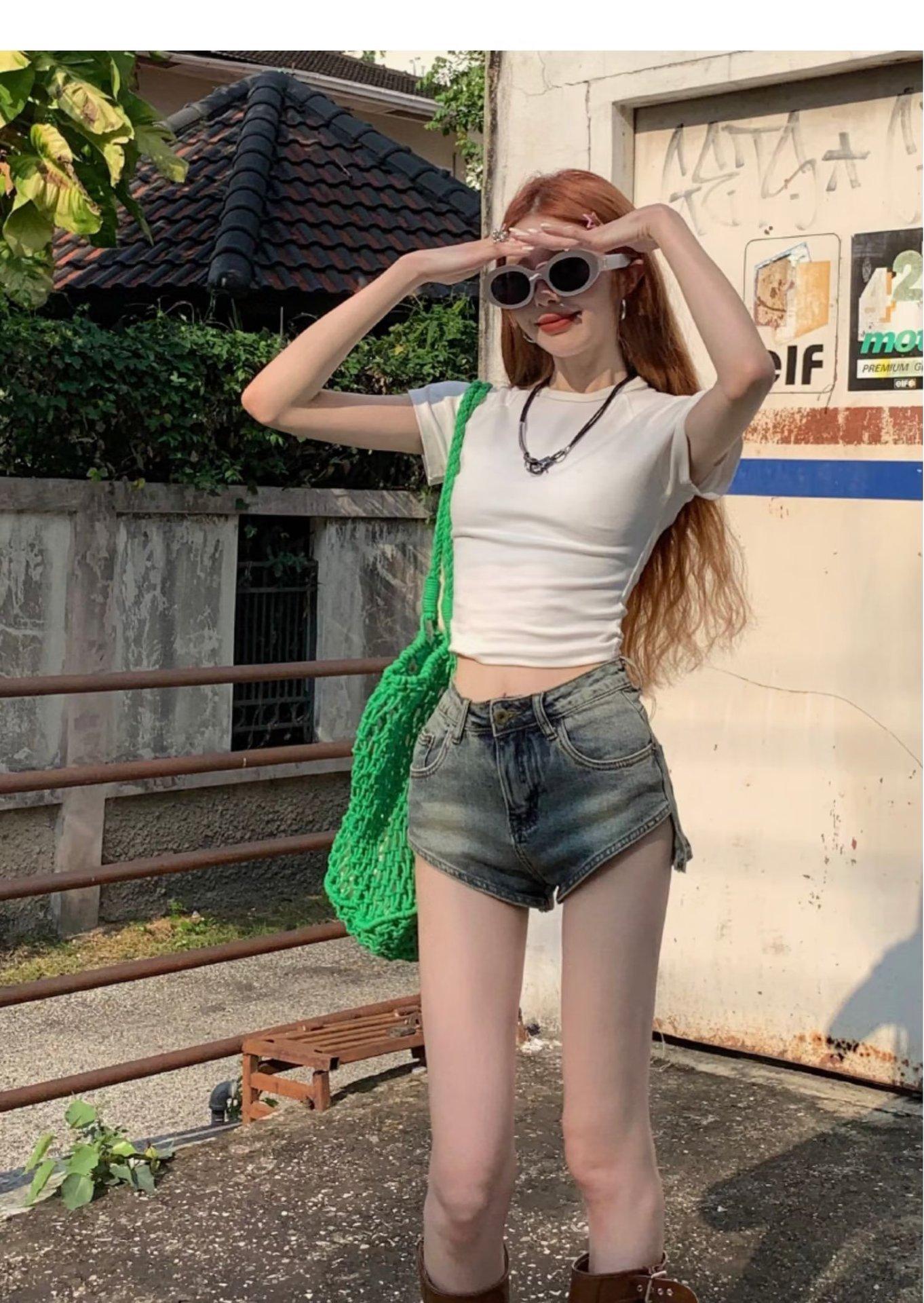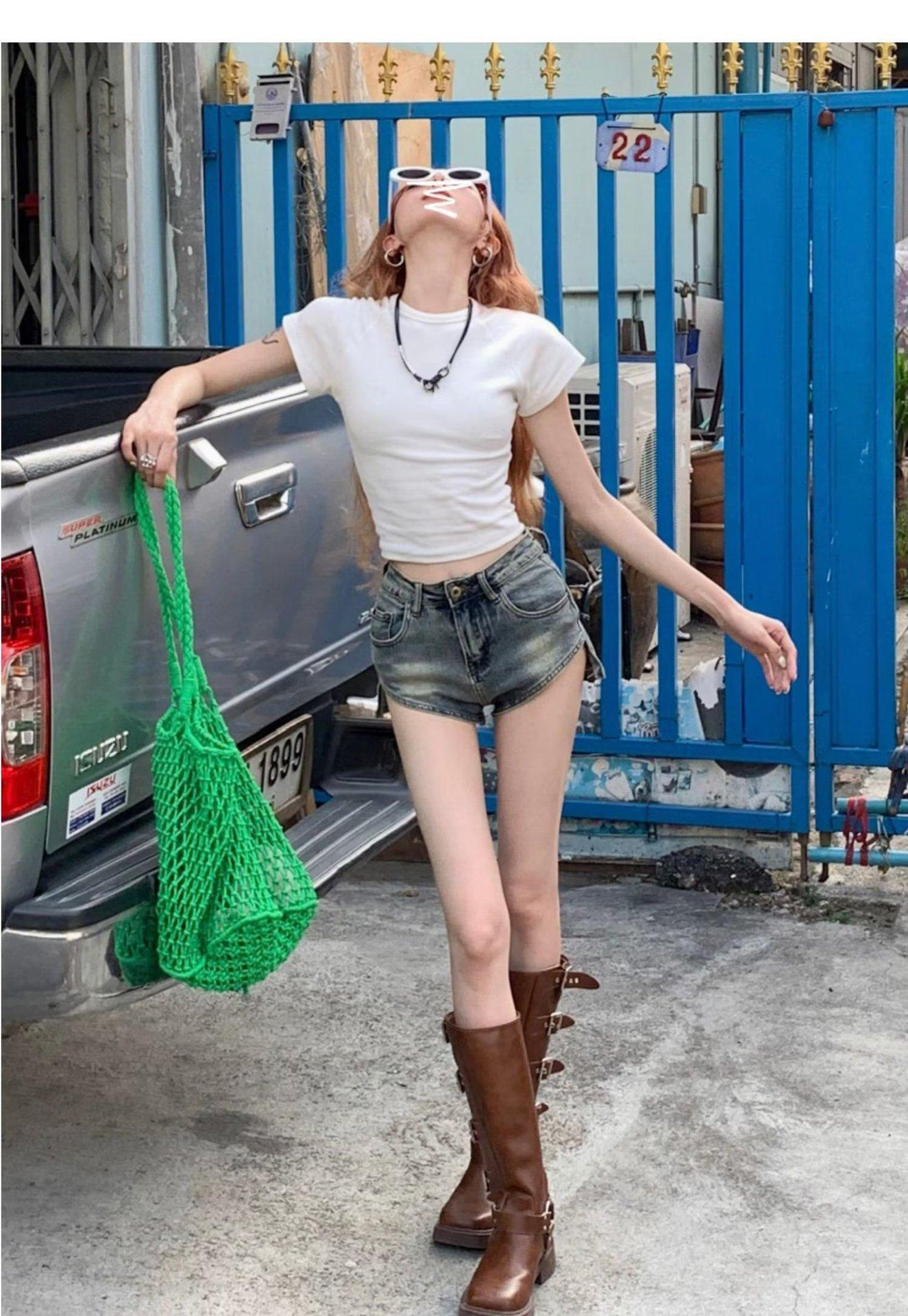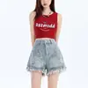 Verano Cintura Alta Jeans Irregulares para Mujer Modernos Nuevo Estilo Americano Spice Girl Pantalones Rectos Pantalones Cortos Calientes Pantalones Cortos Línea A