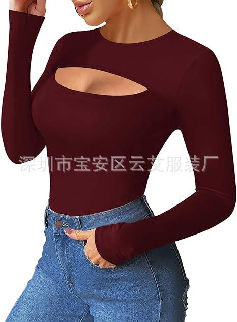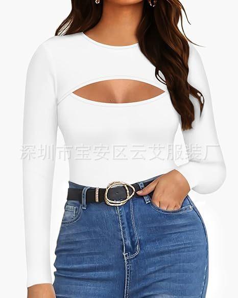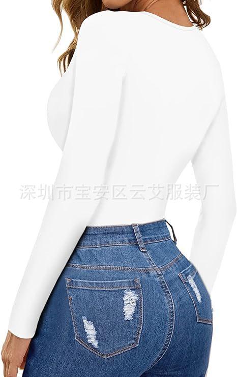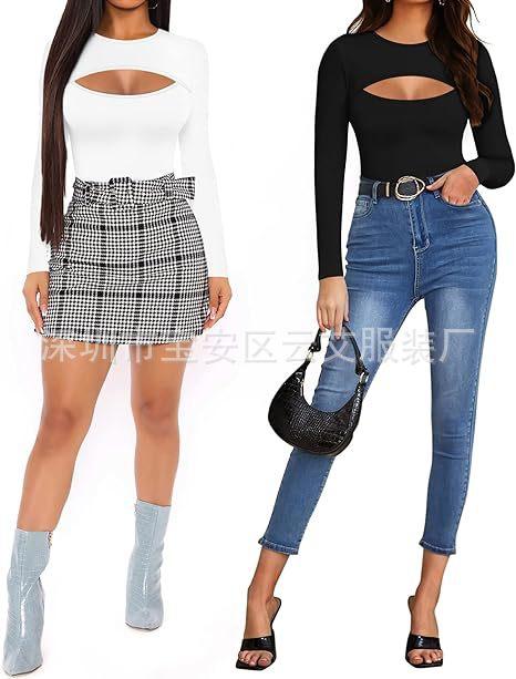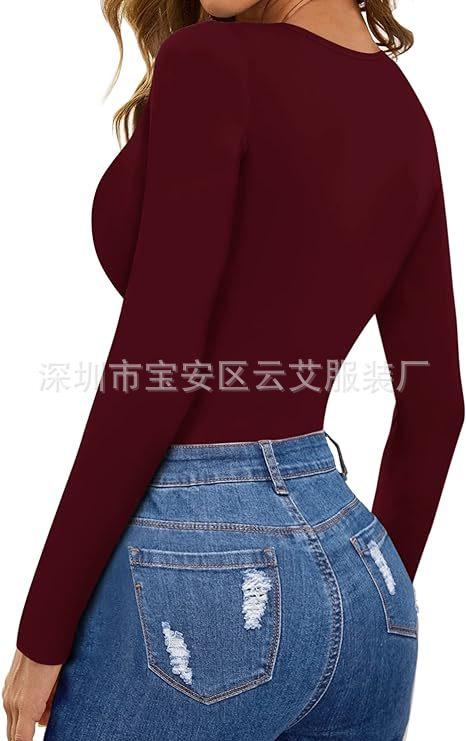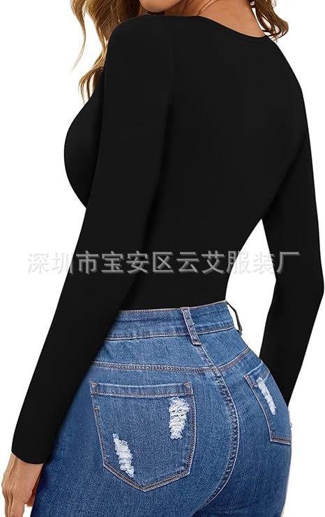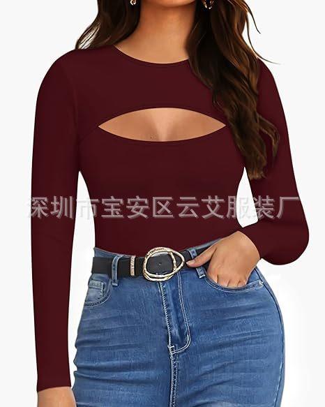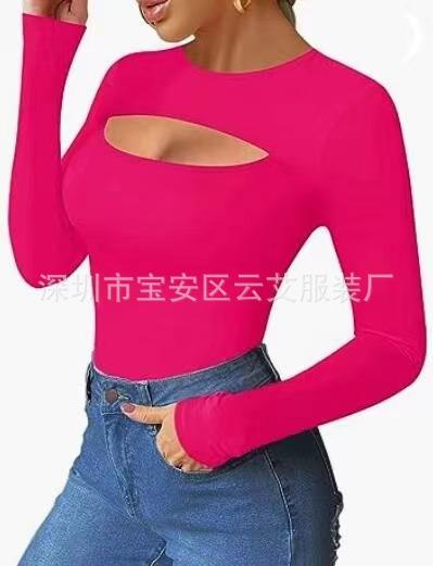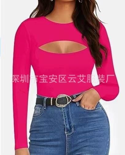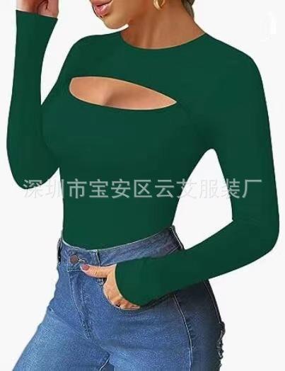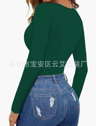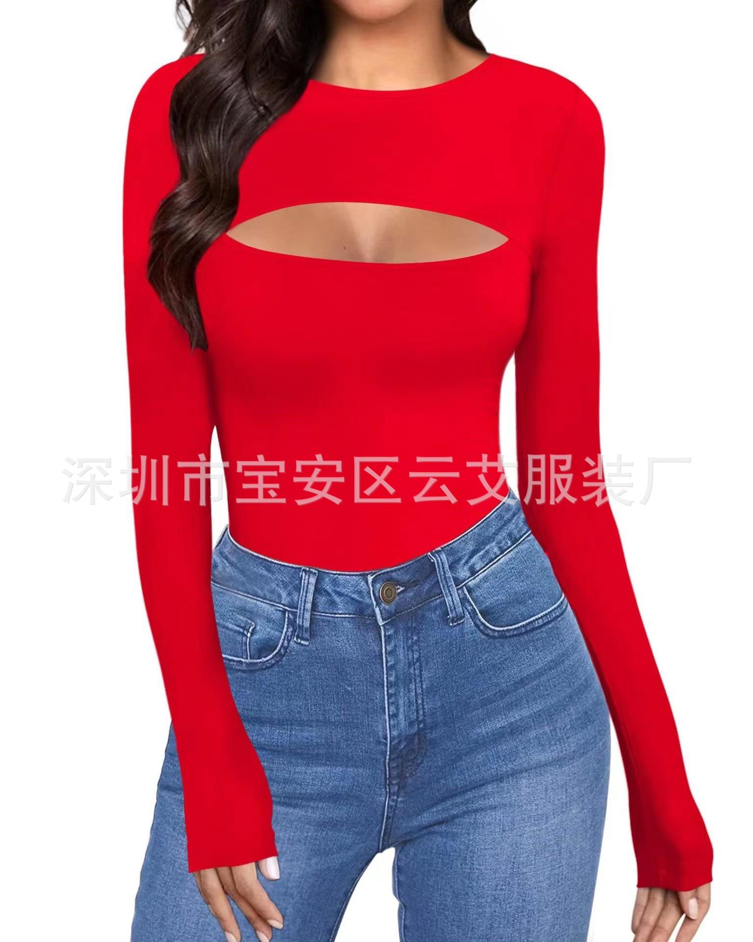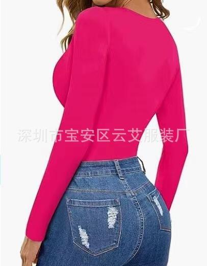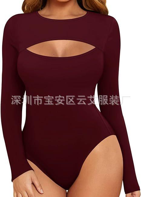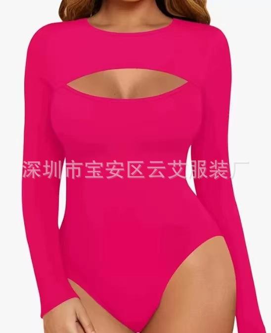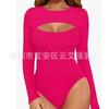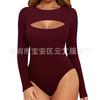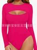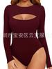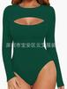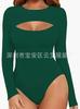Mono de manga larga ajustado con escote redondo y abertura frontal sexy para mujer europea y americana, superventas en Amazon y eBay, transfronterizo.
