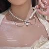 Broken silver pearl necklace, Bow pearl necklace, Butterfly pearl necklace, Bow necklace, Broken silver love p...
