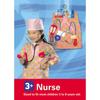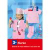 0968 Set de enfermera: bata, pantalones, gorro, jeringa, tensiómetro, tijeras, martillo, estetoscopio, termómetro