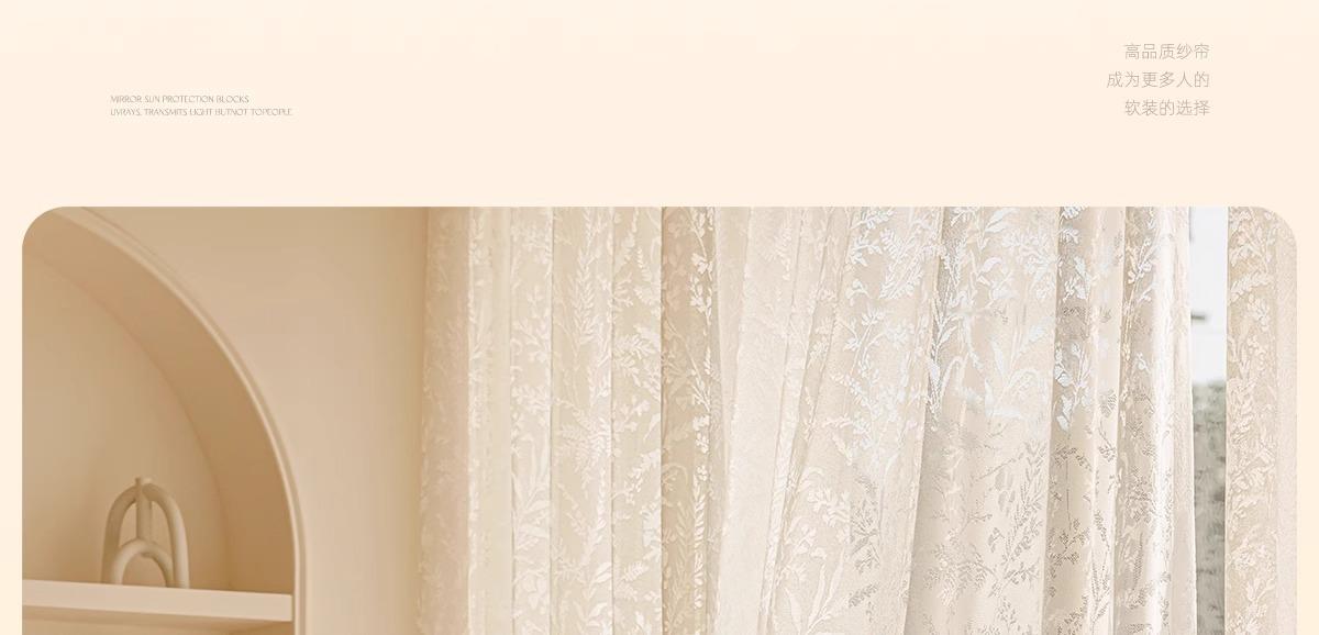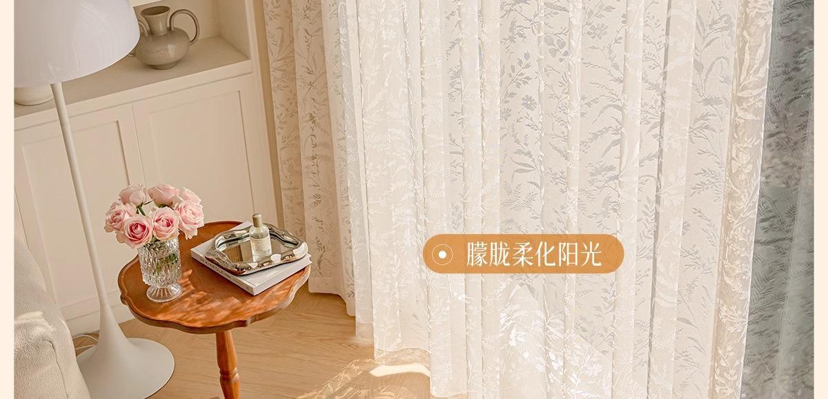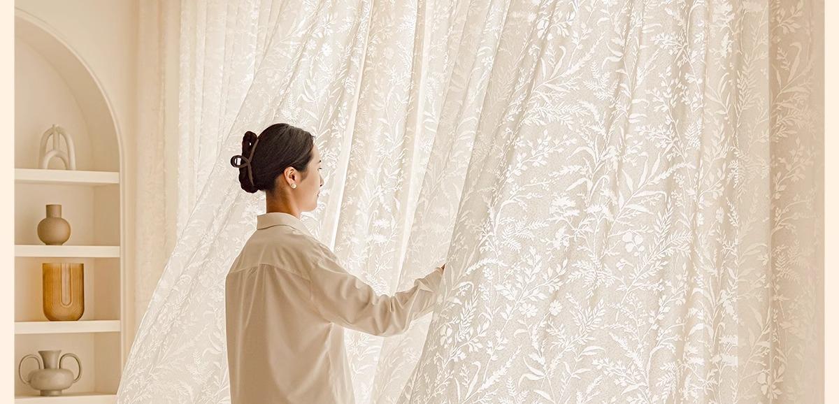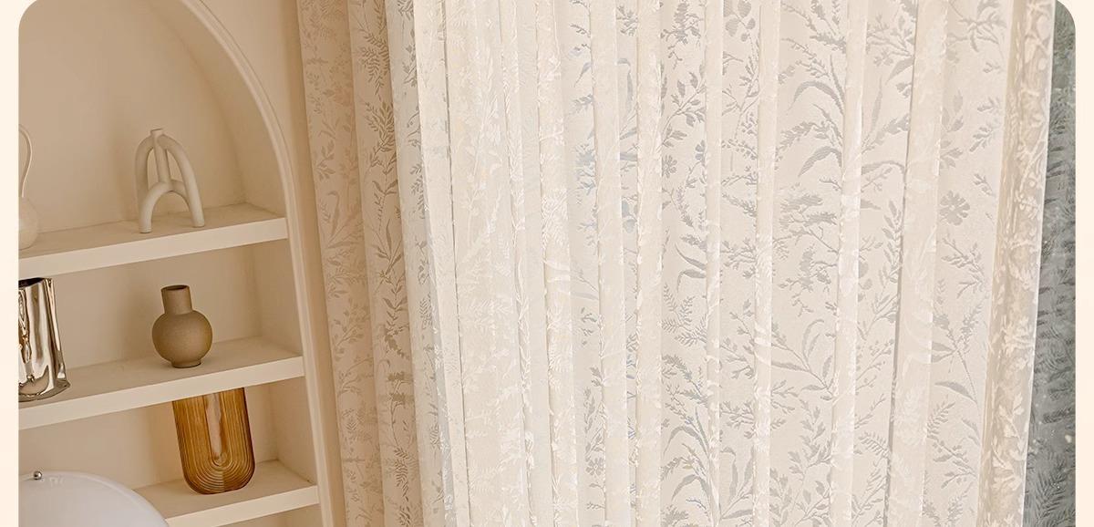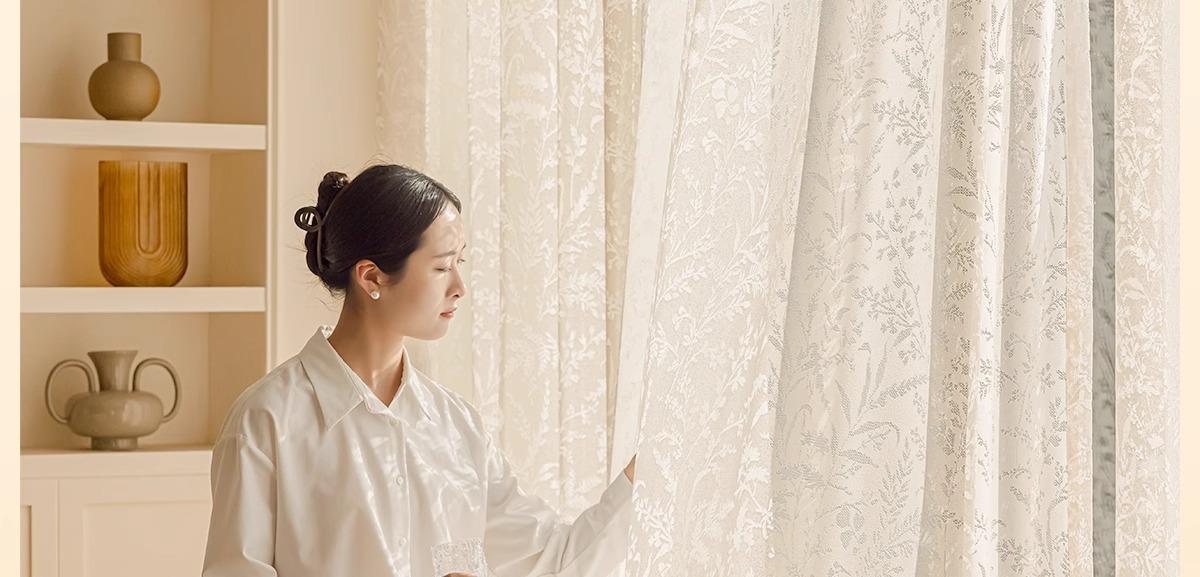 Cortina Traslúcida con Diseño Calado de Estilo Francés Moderno para Ventana de Sala de Estar y Balcón, No Requiere Perforación