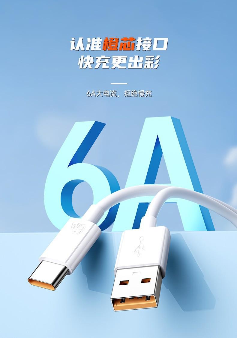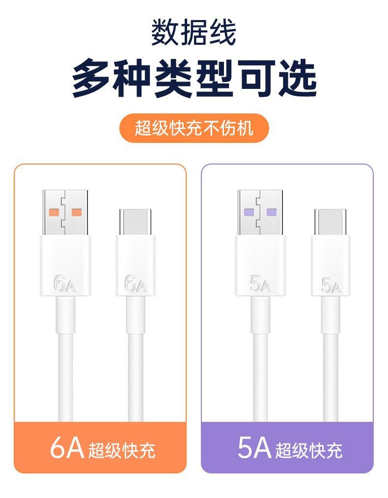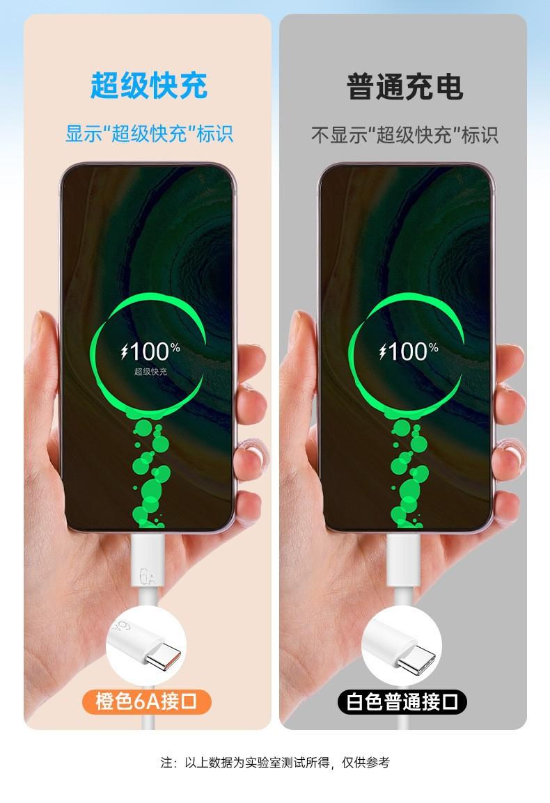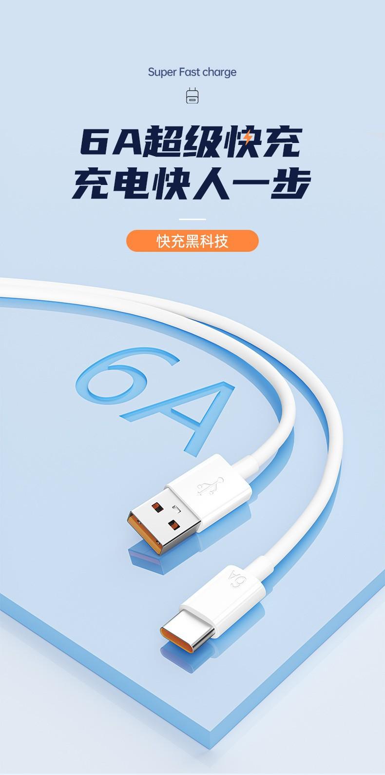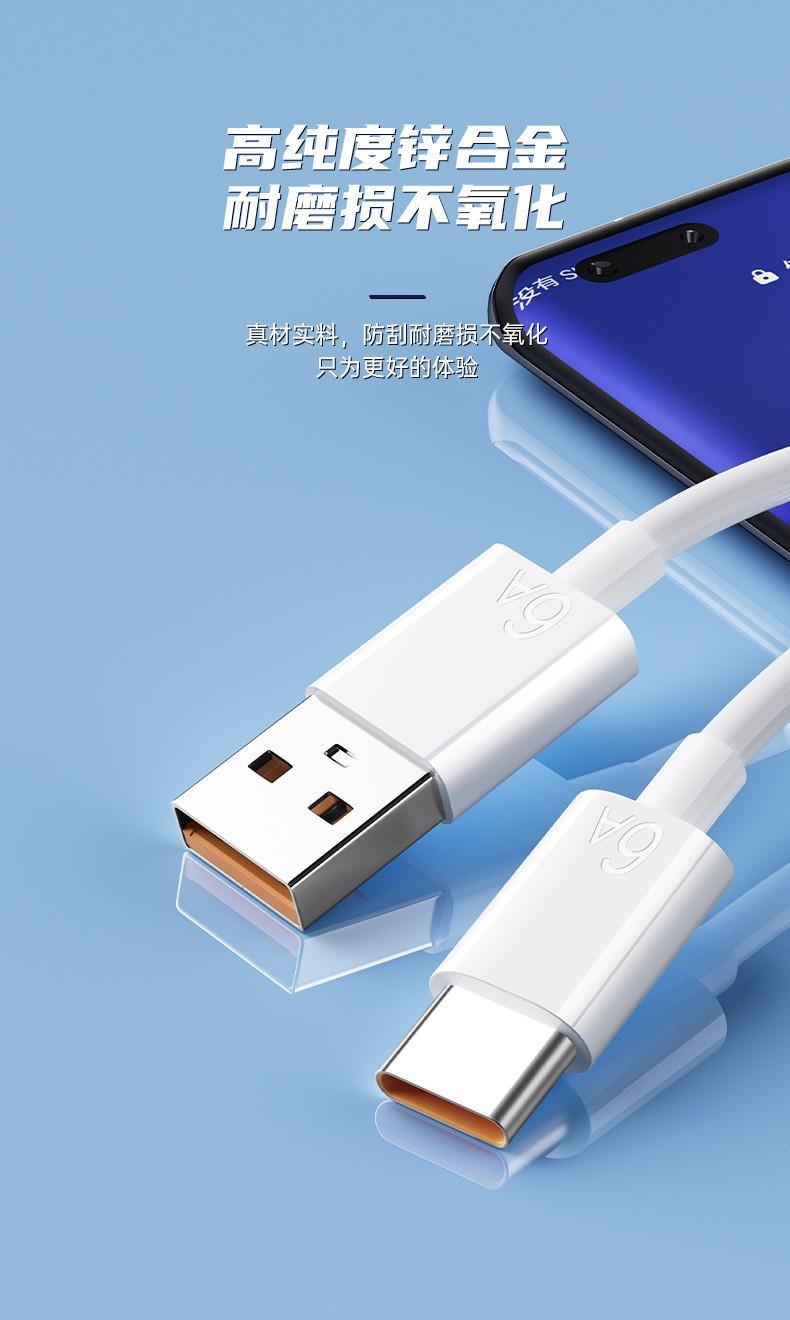 Cable de datos de un solo cabezal tipo C, carga rápida 6A, adecuado para teléfonos móviles Huawei.
