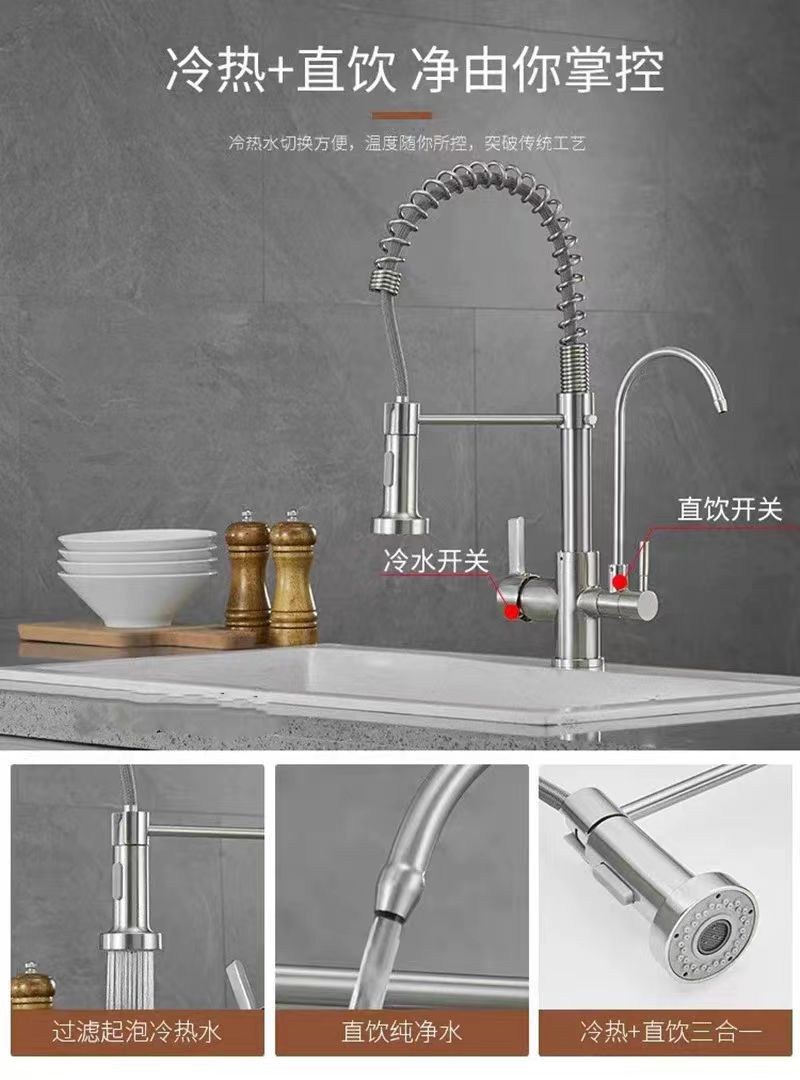 Compra Grifo de cocina transfronterizo tres en uno, agua pura, agua fría y caliente, grifo doméstico de tres canales para fregadero de verduras al por mayor en Joom.pro