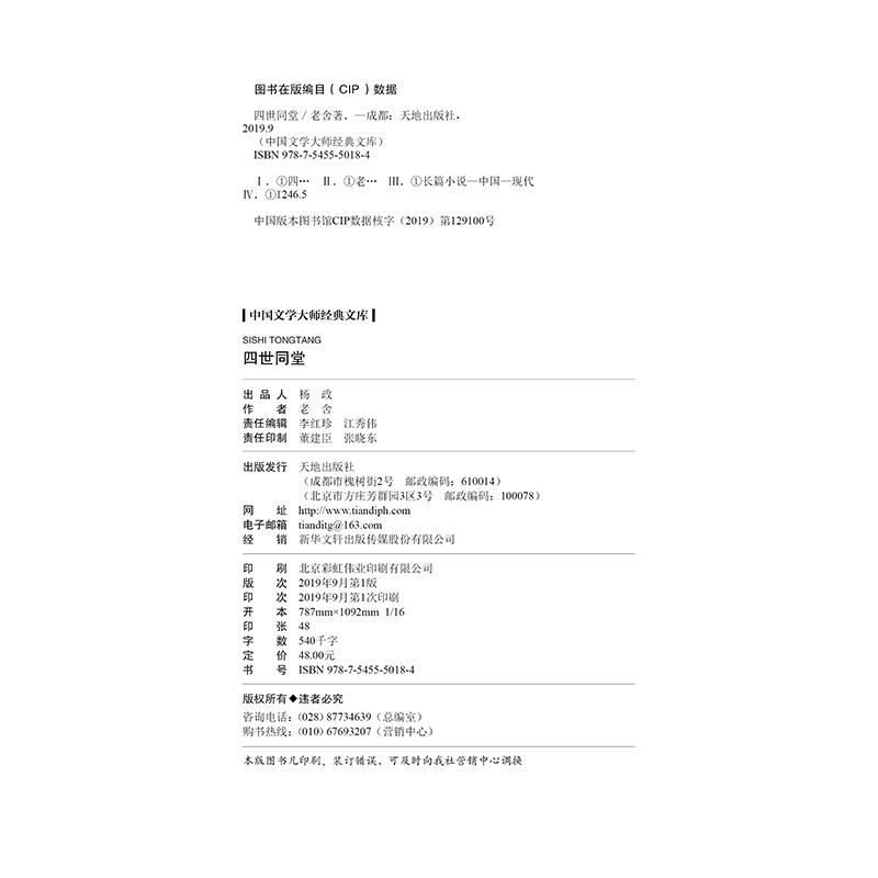 | Colección clásica de obras originales en prosa de maestros literarios chinos "Cuatro generaciones bajo un mismo techo" ¥10 | ![]() |