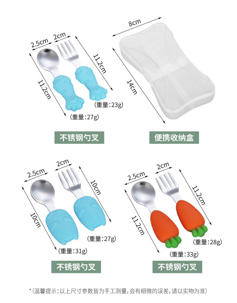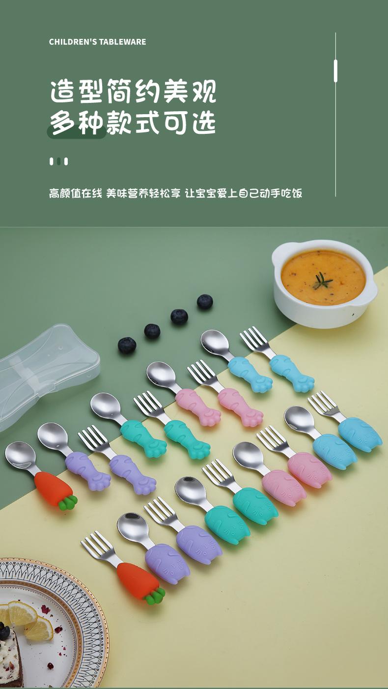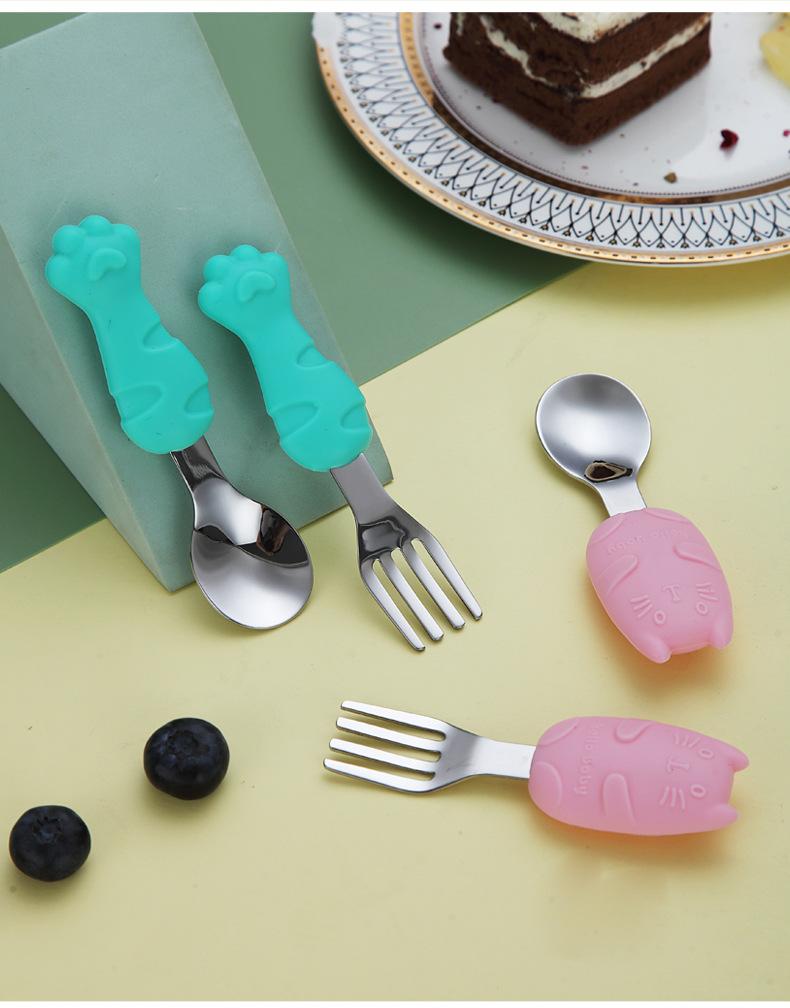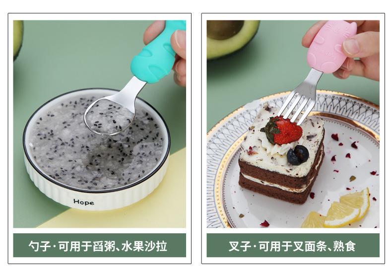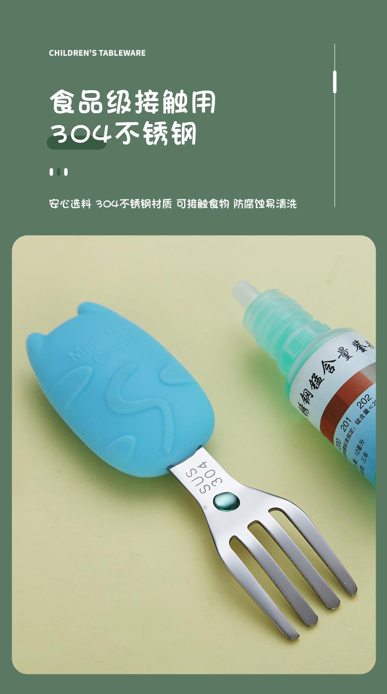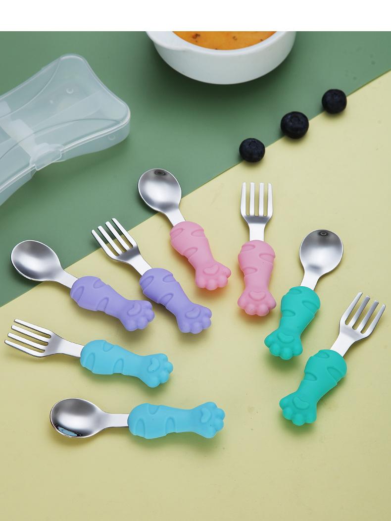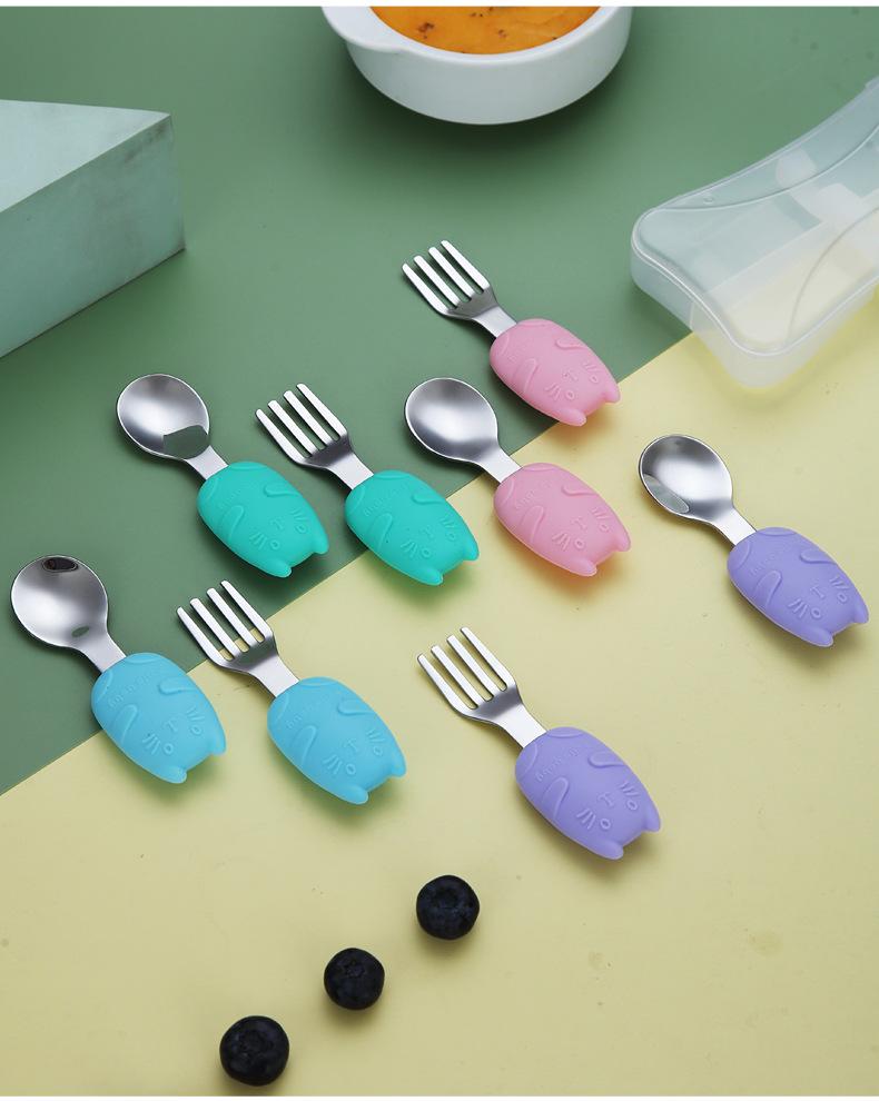Juego de Cuchara y Tenedor de Silicona Acero Inoxidable 304 Niños Aprenden a Comer Cuchara de Entrenamiento Bebé Portátil Alimentación Vajilla Set