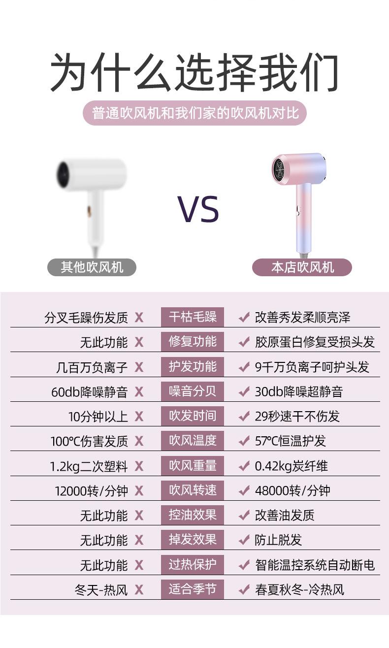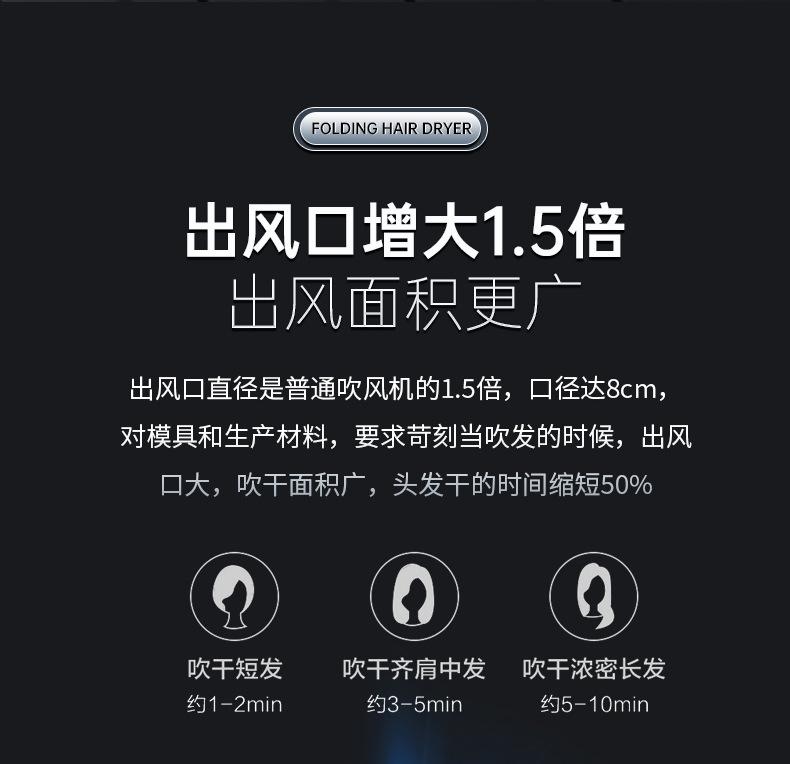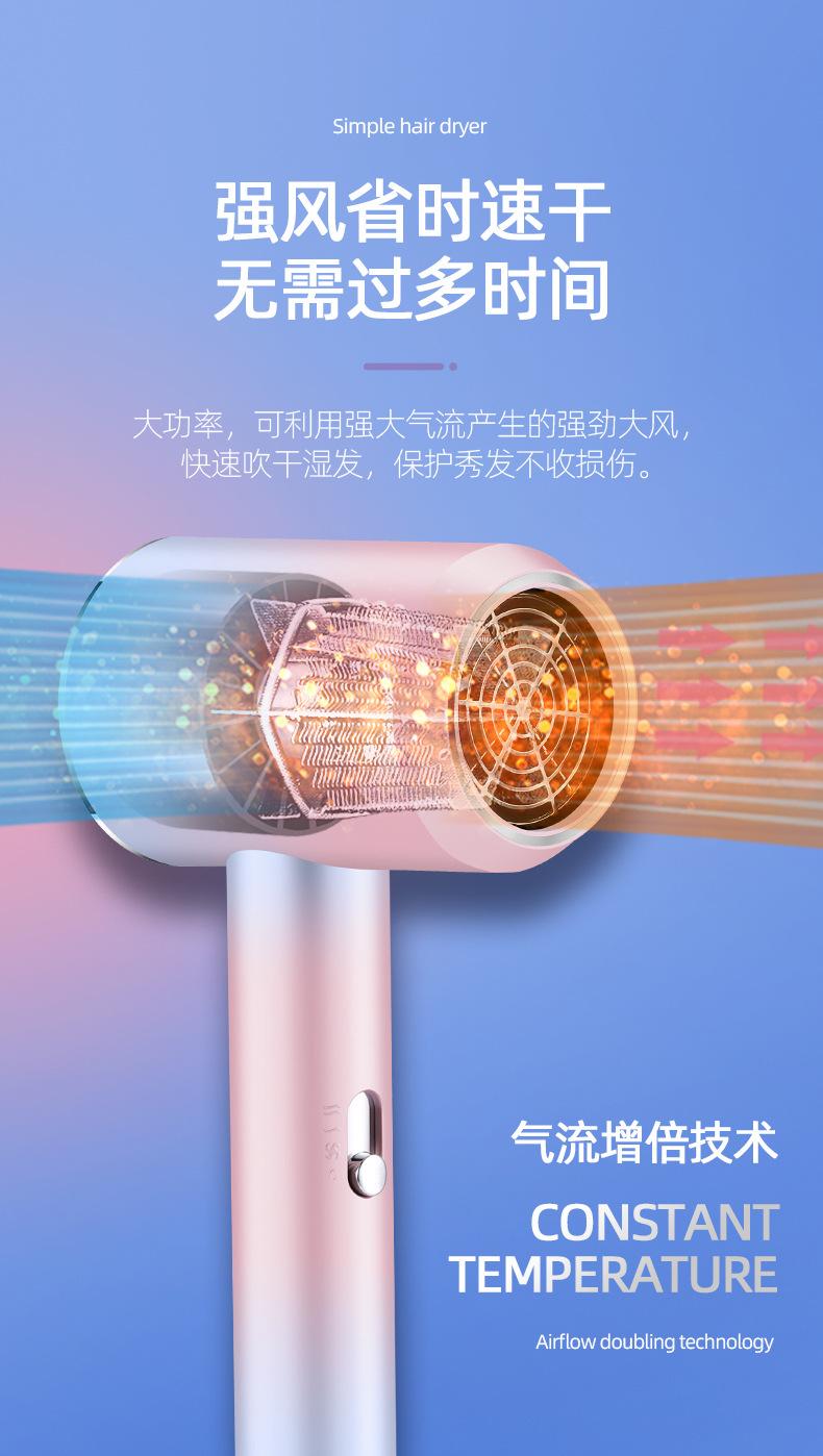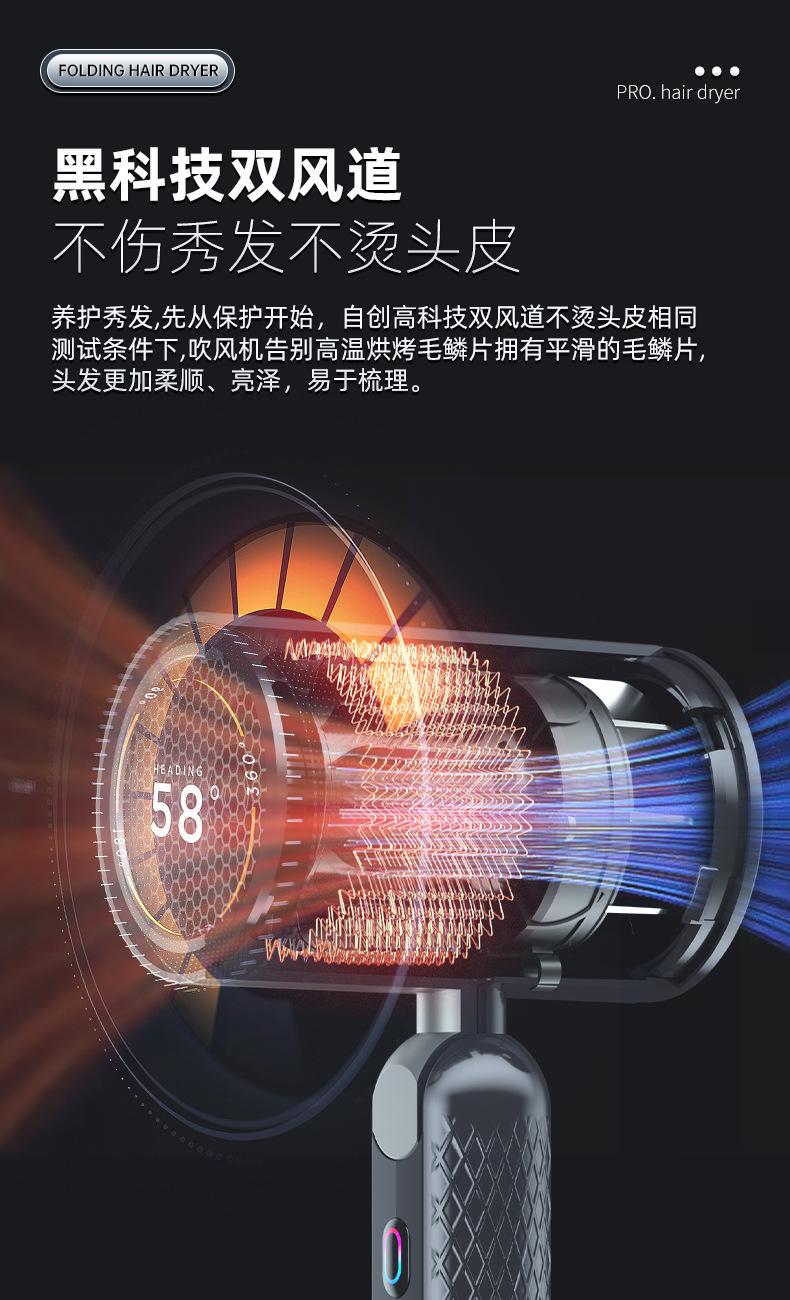Secadora de pelo de alta potencia con iones negativos de alta velocidad para barbería directamente de fábrica, plegable, portátil, para estudiantes y uso doméstico