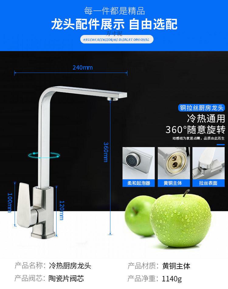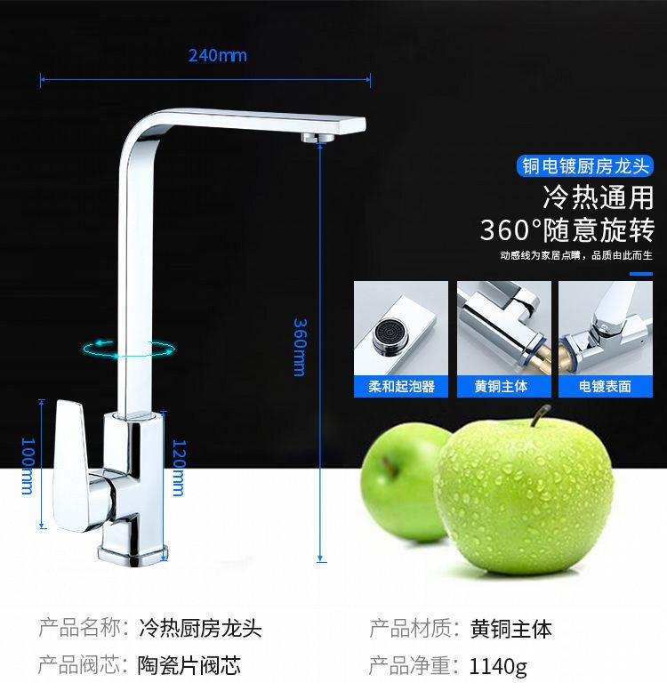 Grifo de Cocina Todo Cobre Doméstico Frío y Caliente Grifo Cuadrado Lavabo para Verduras Lavabo Agua a Prueba de Salpicaduras Grifo Solo Frío Fábrica