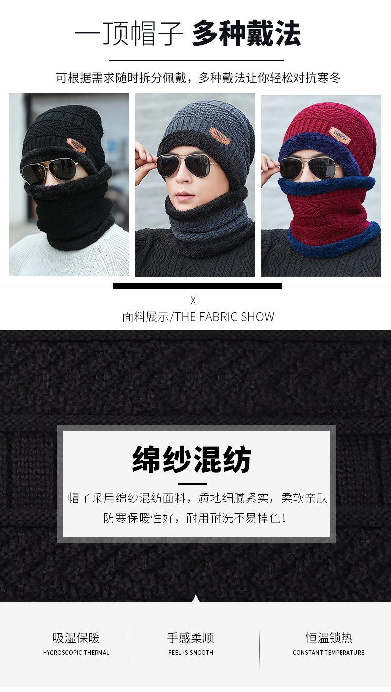 Gorro de hombre de otoño e invierno de punto de lana, gorro grueso con forro polar, bufanda, gorro de punto de dos piezas, venta al por mayor