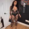 Ropa interior sexy europea y americana de gran venta Amazon transfronterizo nuevo mono sexy de malla perspectiva hueca jacquard medias de red