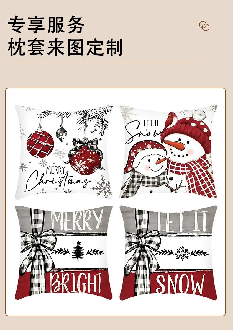 Amazon Serie Navideña Transfronteriza Hogar Sala de Estar Cojín de Sofá Funda de Almohada Juego de Cuatro Piezas Personalizado