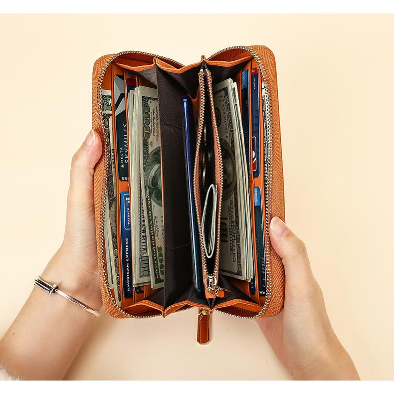 Cartera larga MVA de piel de vaca auténtica, clásica, de piel de vaca, con múltiples combinaciones, para hombre y mujer, tarjetero de gran capacidad.