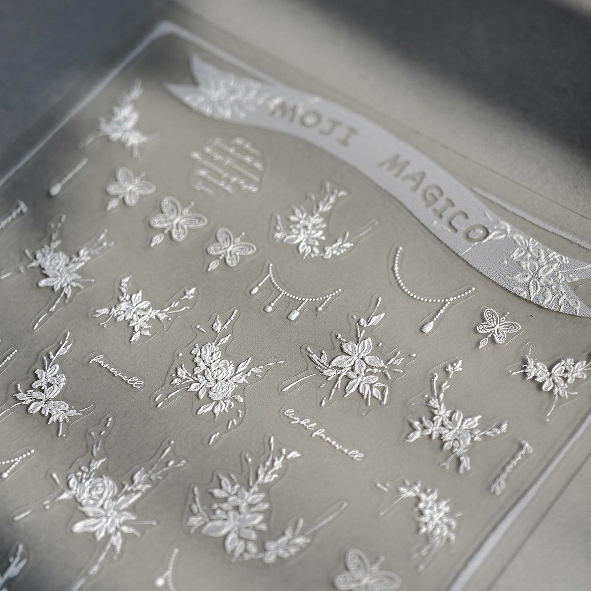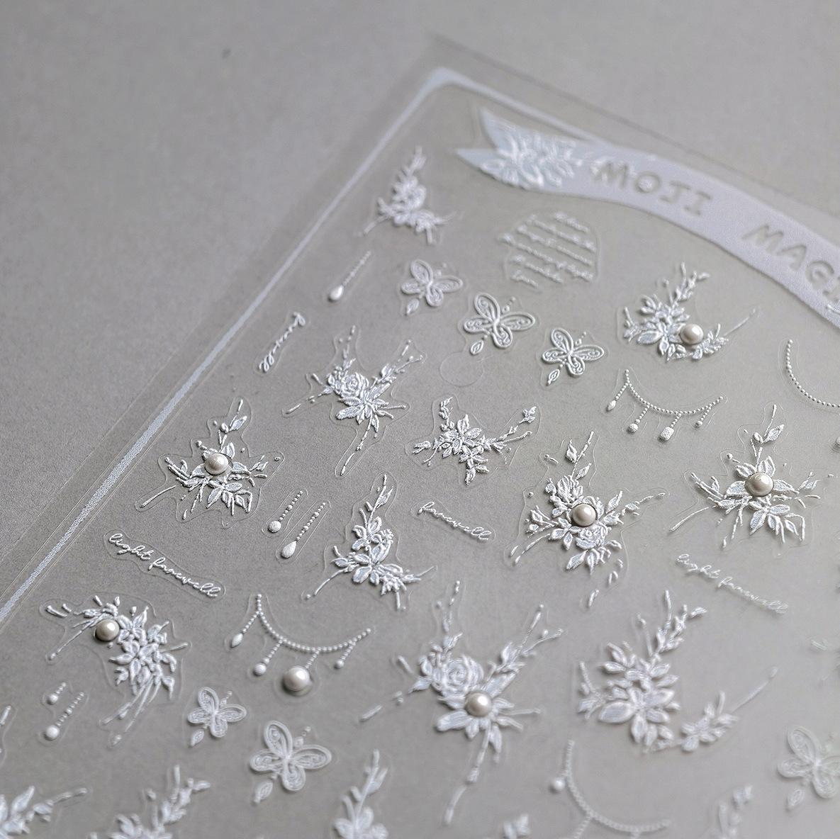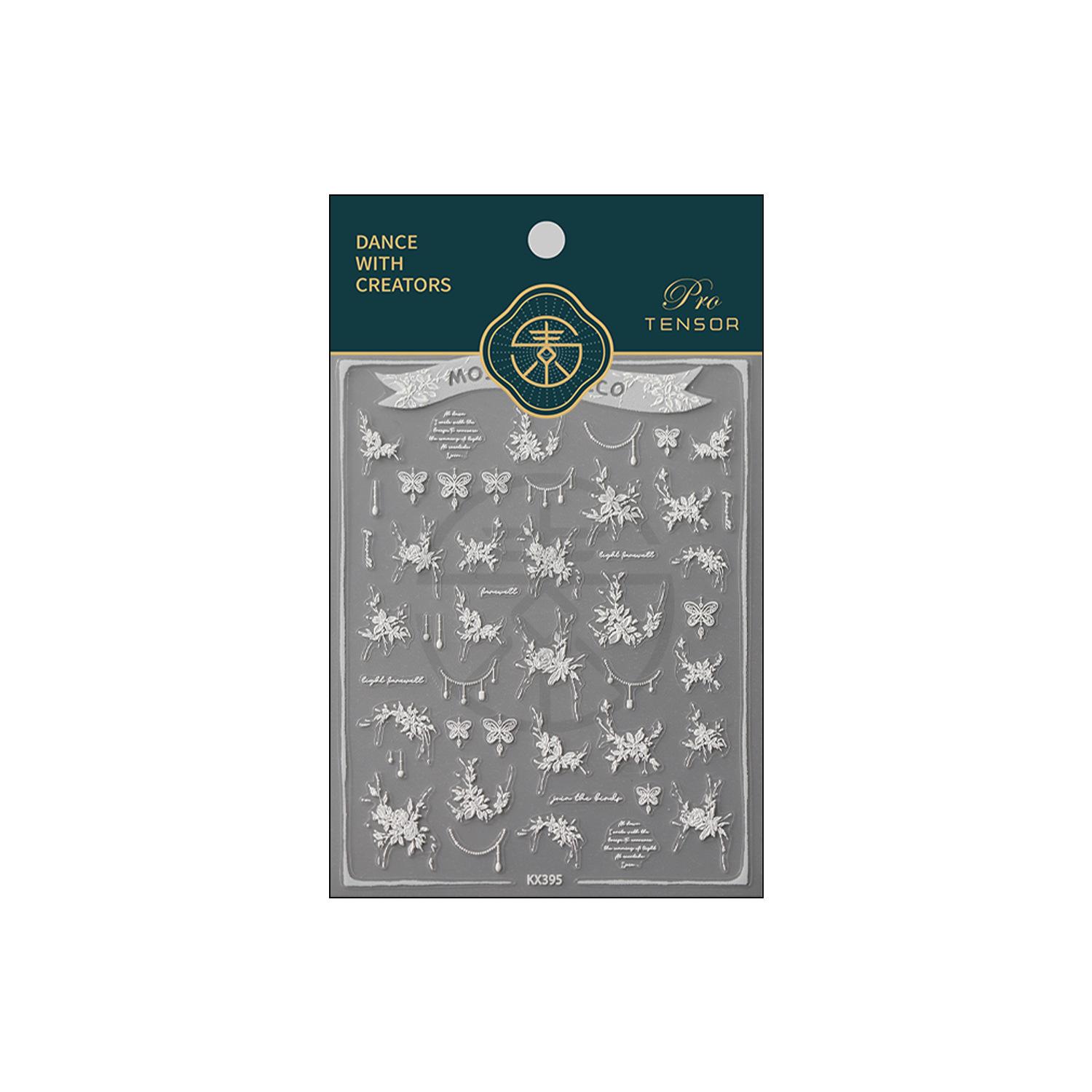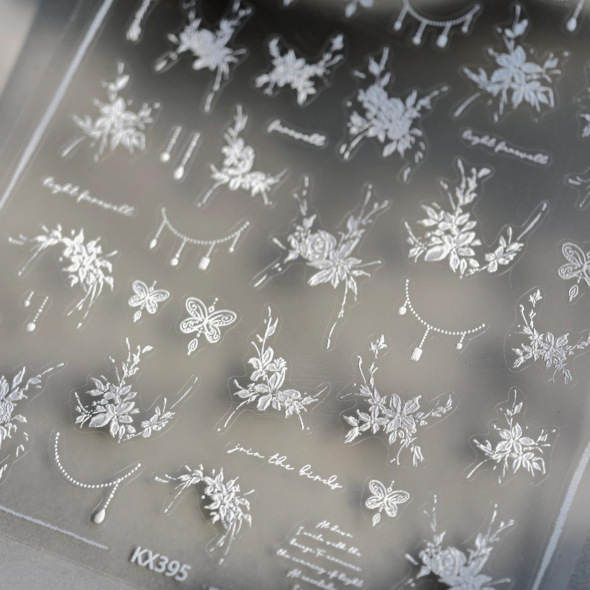 Arte de uñas de flores pintadas a mano de hierro kx395 pegatina con mariposa blanca adhesiva serie exquisita papelería explosiva para niños