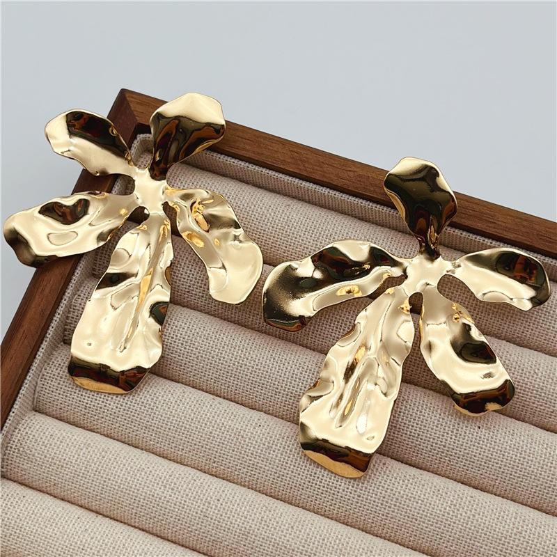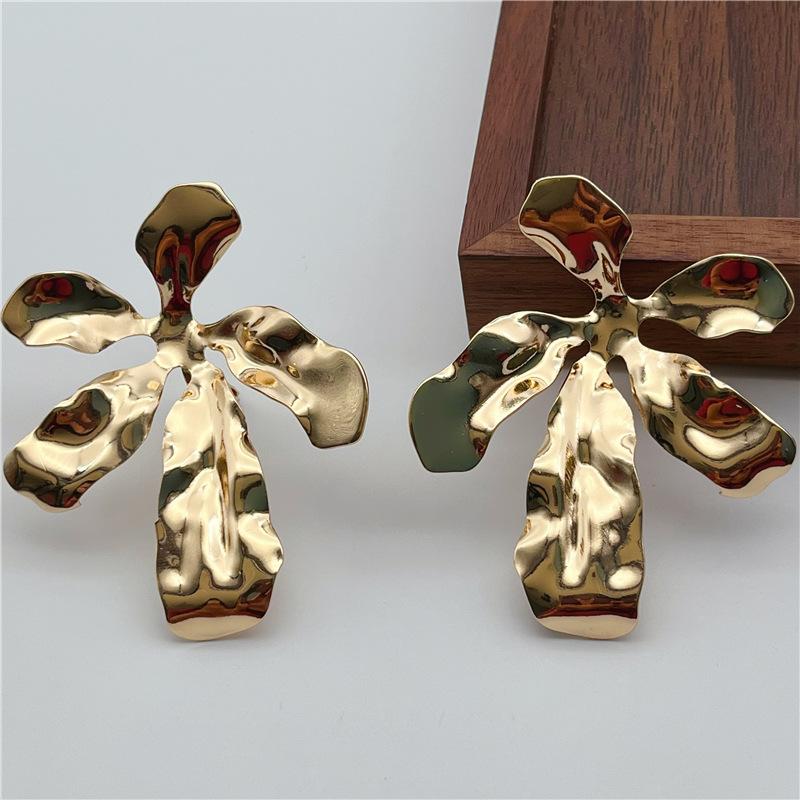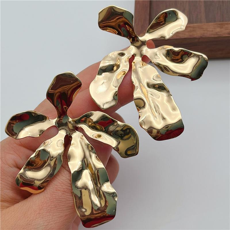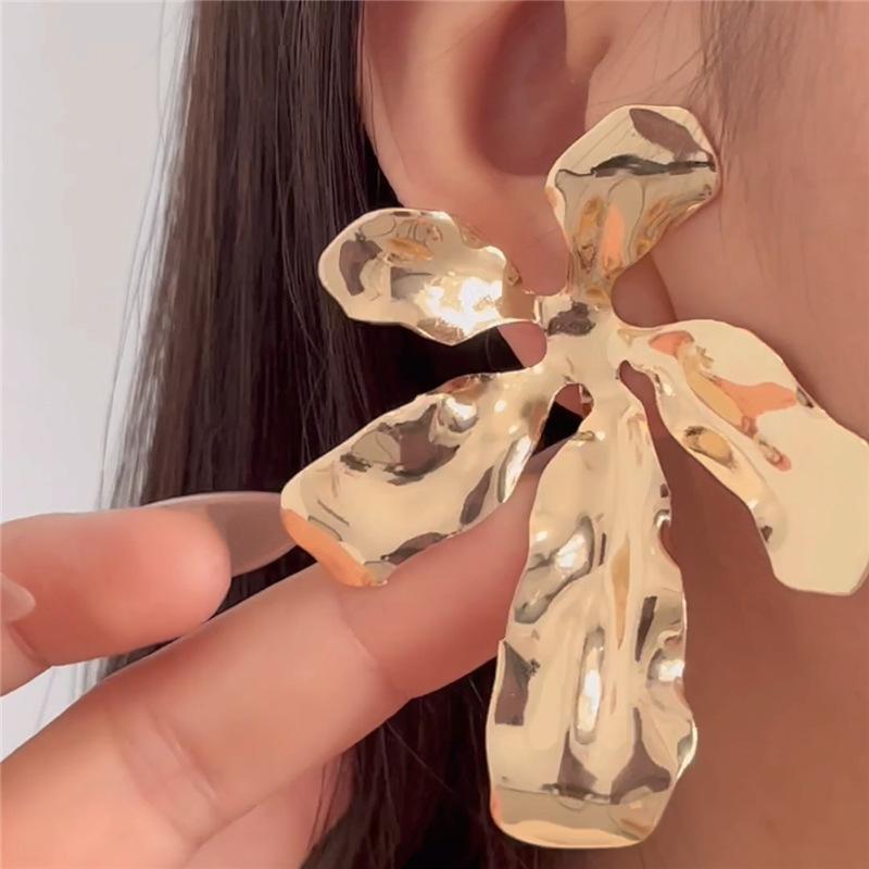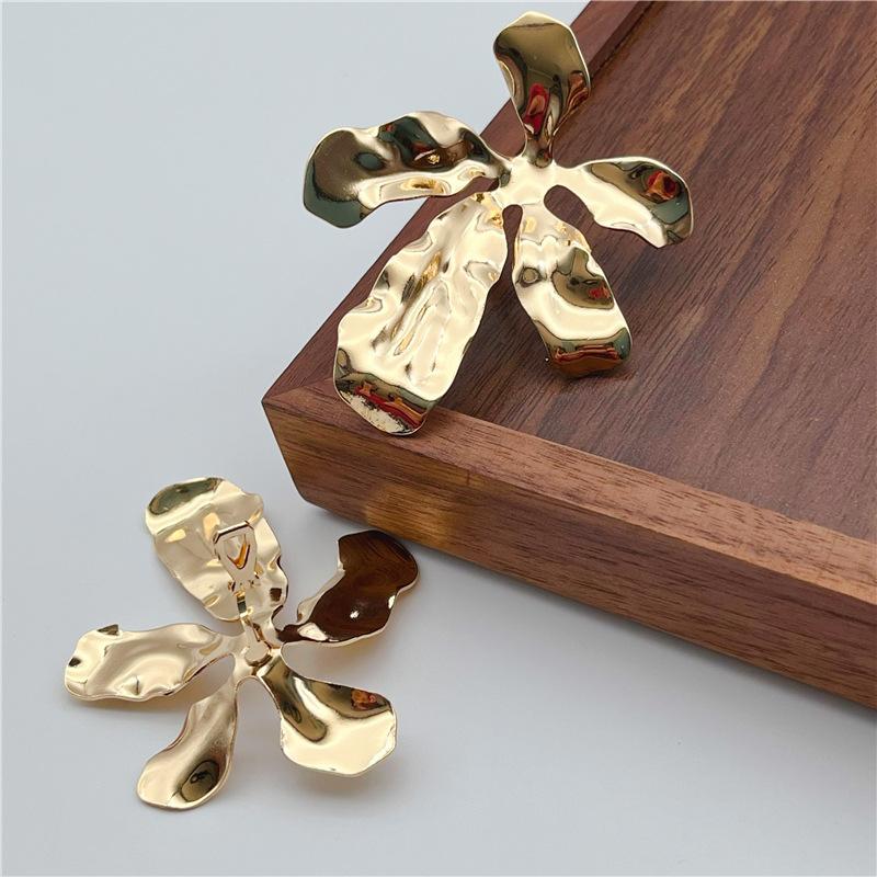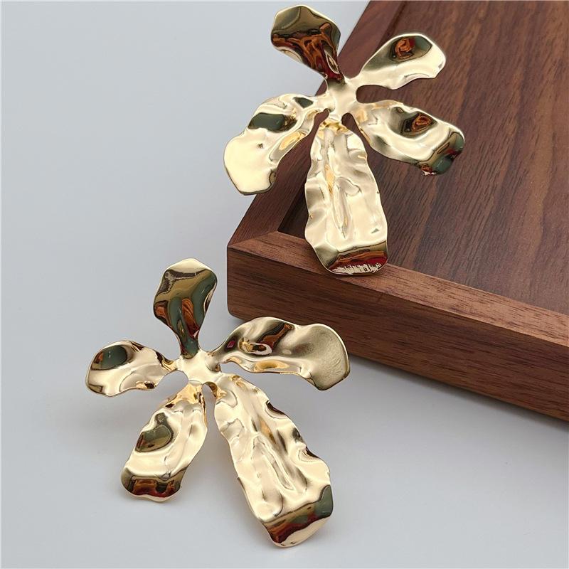 Clip para oreja de metal exagerado de flor grande europeo y americano, diseño de nicho femenino, aretes de industria pesada sin agujeros en las orejas, estilo retro frío