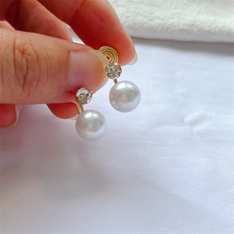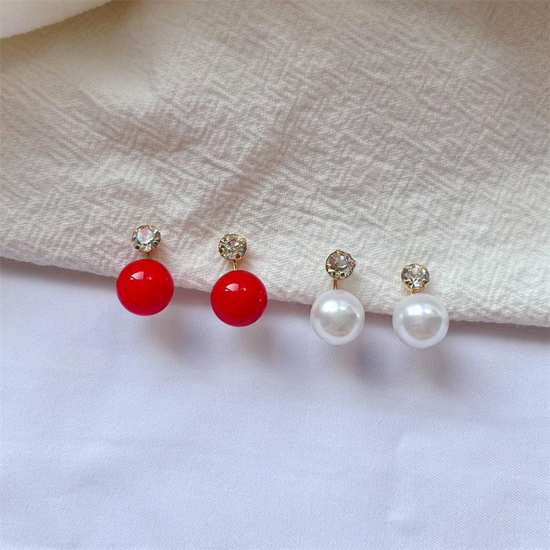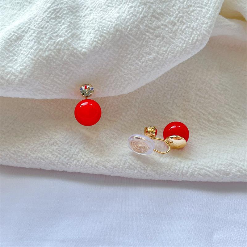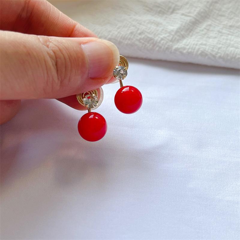 Compra Aretes redondos rojos elegantes de moda simple retro para mujer con perla blanca y diamantes de imitación, sin perforación, con clip de resorte para oreja, venta al por mayor al por mayor en Joom.pro