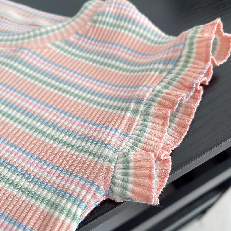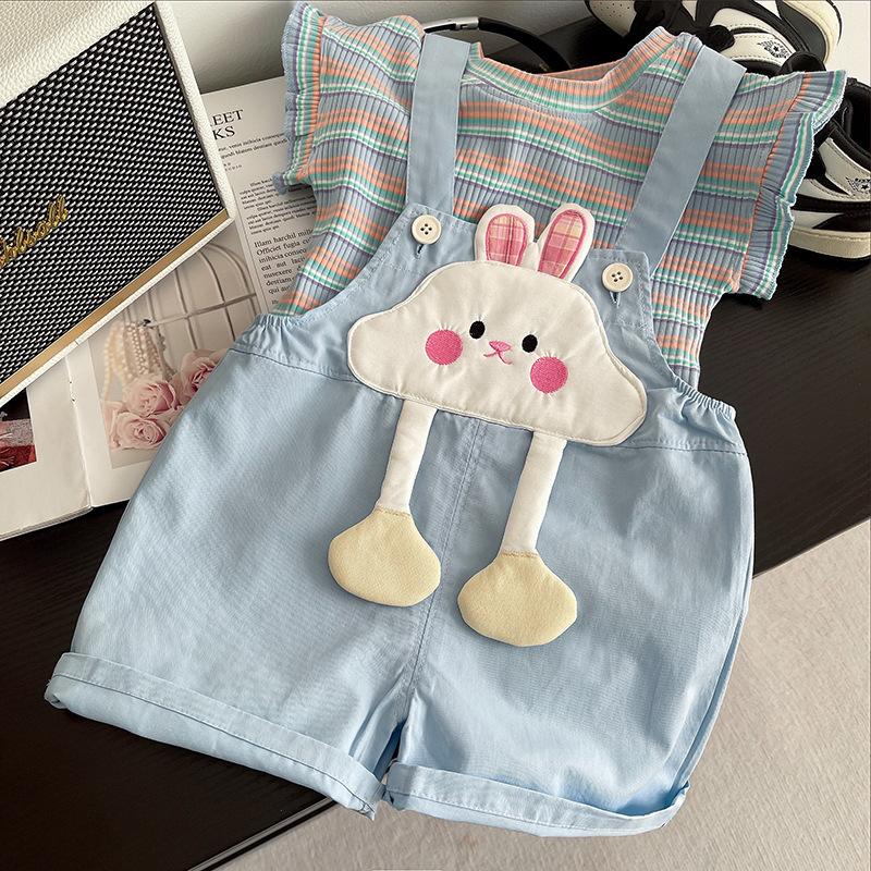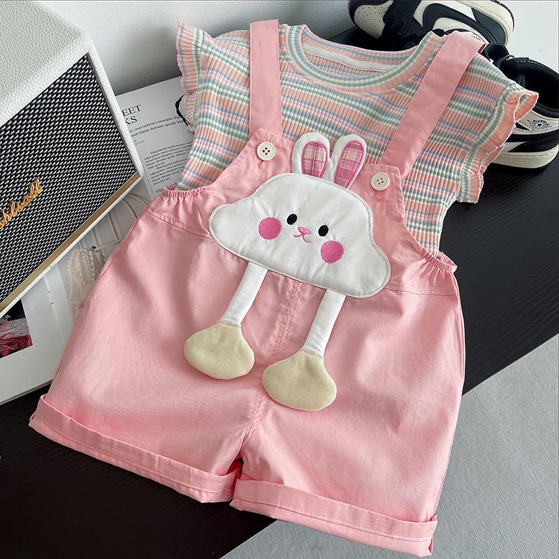 Traje nuevo de verano 2025 para niñas, conjunto de dos piezas de tirantes de manga corta para niñas de 1 a 5 años