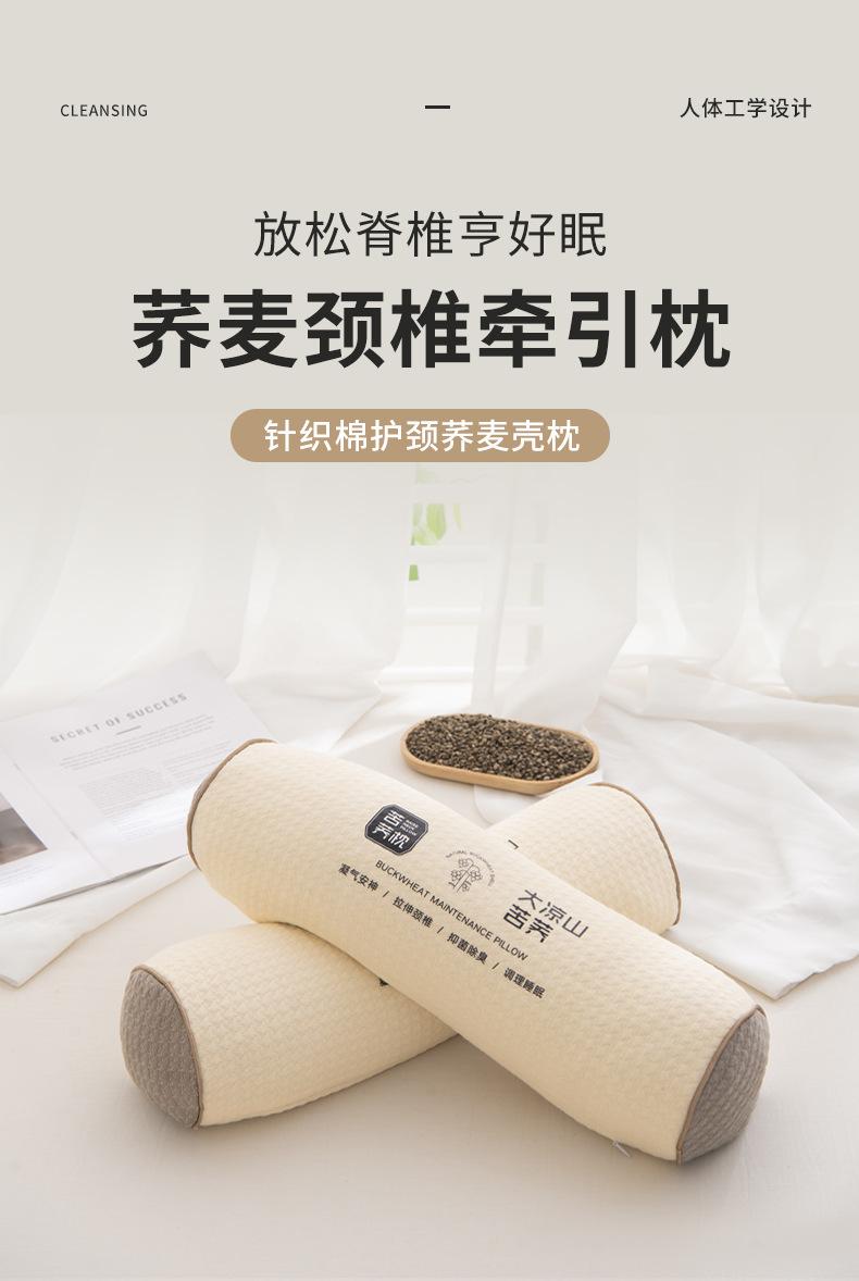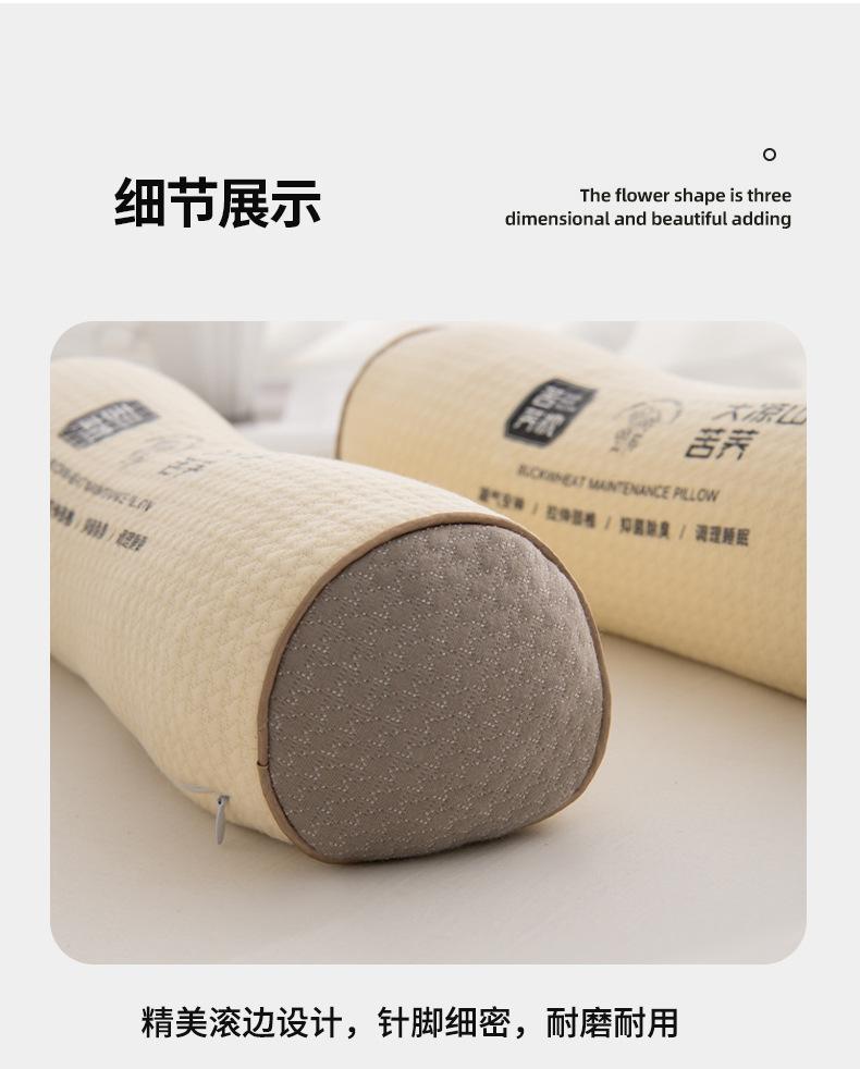 2025 Nueva Almohada Cervical Redonda de Algodón Tejido Daliangshan Trigo Sarraceno Tartario Rellena de Cáscara de Trigo Sarraceno para la Cintura Reposacabezas
