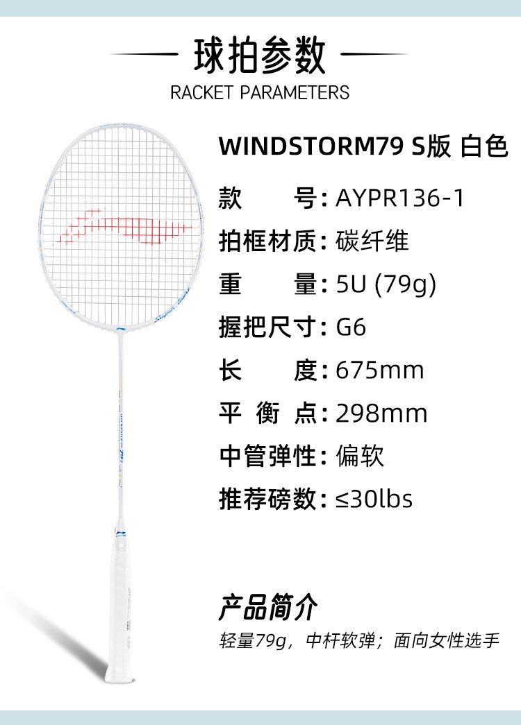 Raqueta de Bádminton Fibra de Carbono Completa Ultraligera Auténtica Tienda Insignia Oficial Ws79 Raqueta Individual Windstorm79S