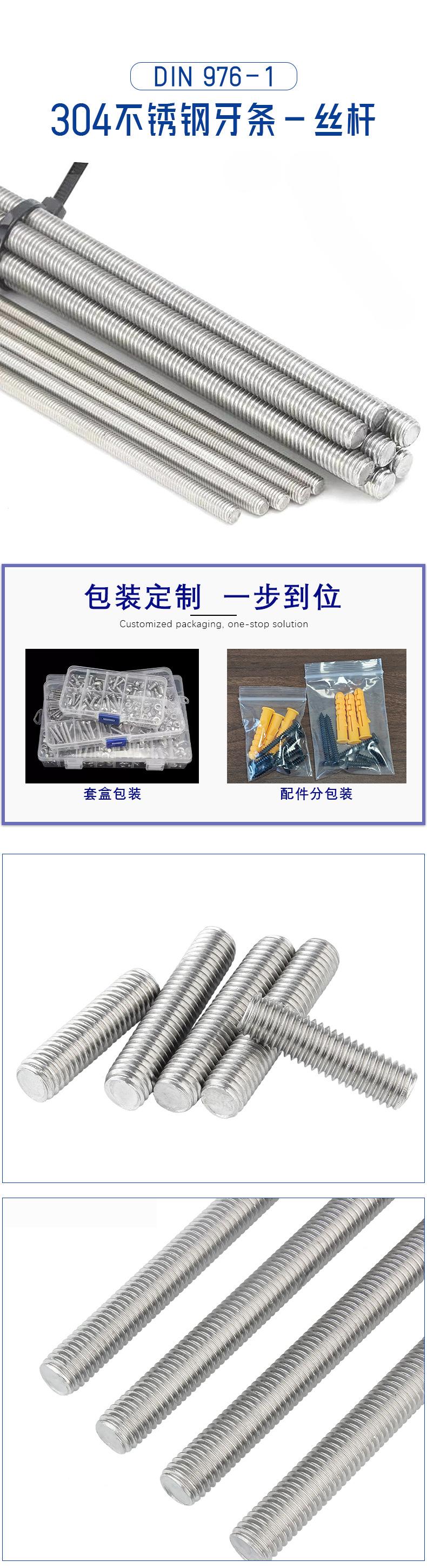 Tornillo de barra dentada de acero inoxidable 304 50cm barra dentada DIN976-1 tornillo de diente completo de rosca tornillo de techo M3 ~ M10