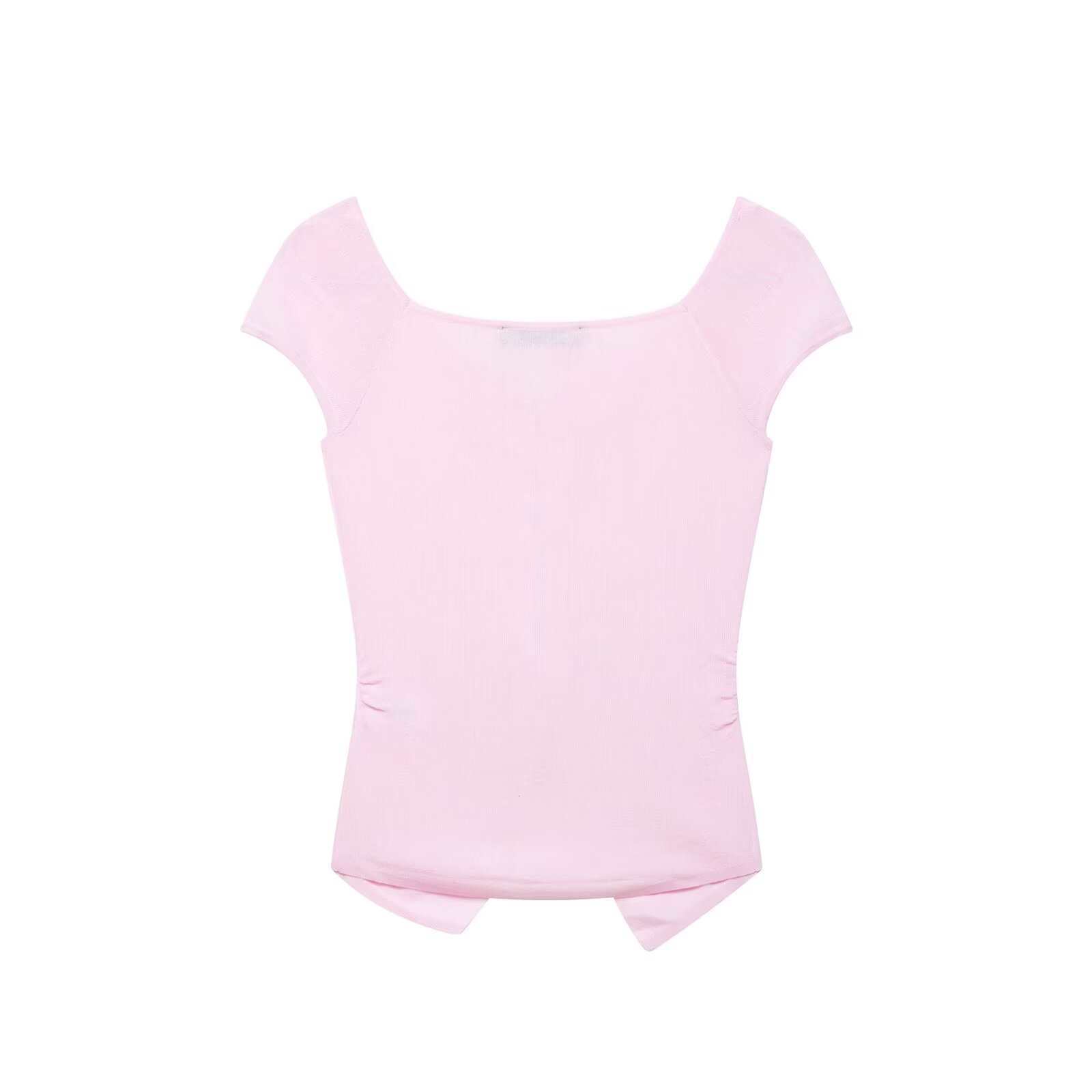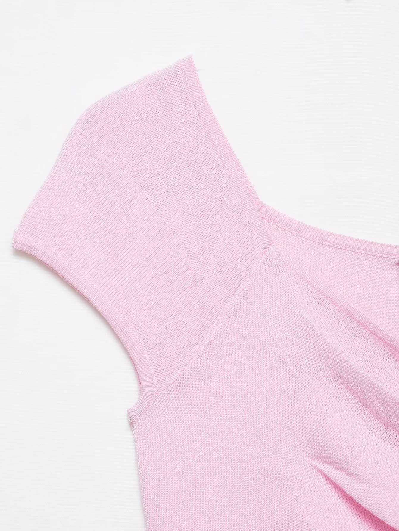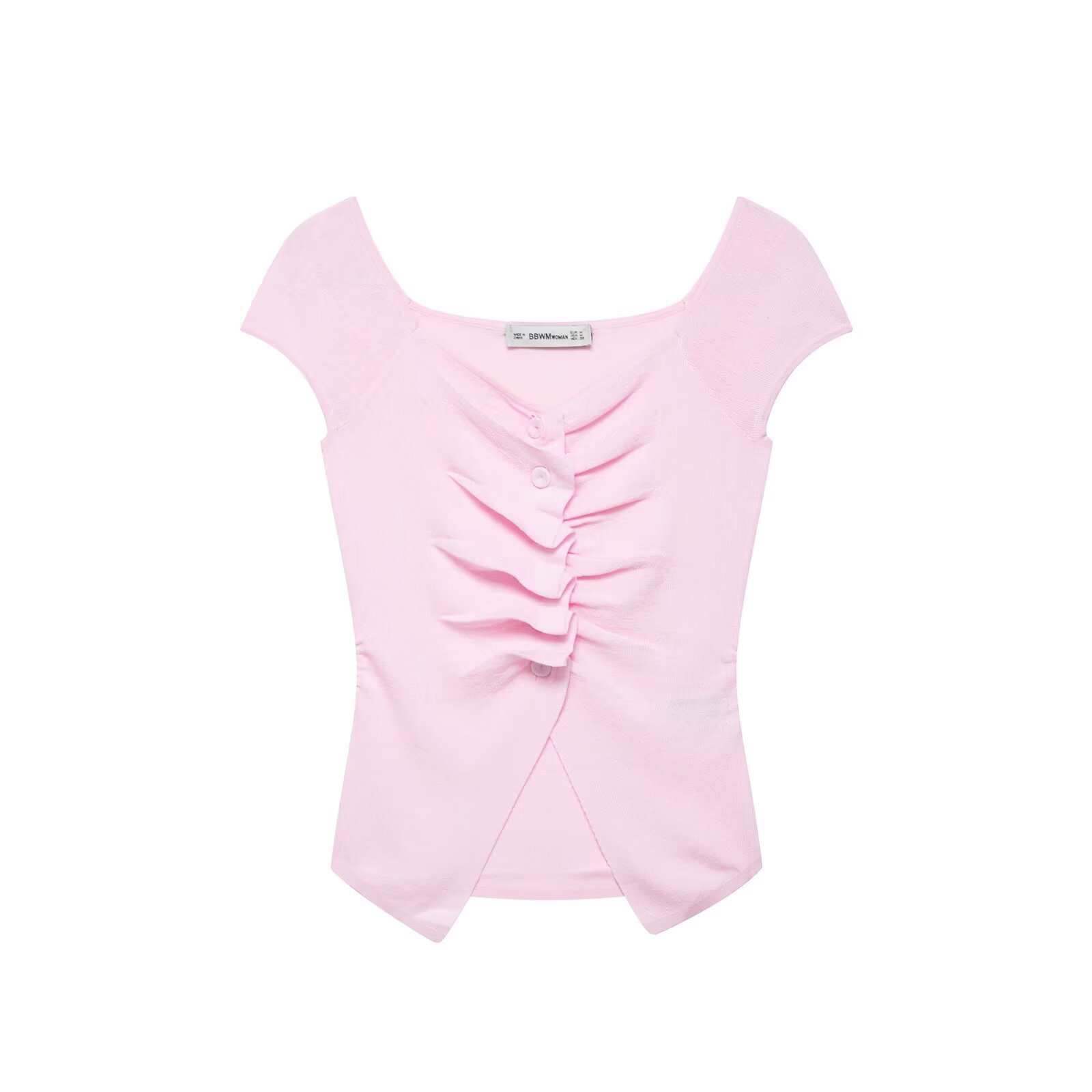 Top de punto de manga corta transfronterizo para mujer, verano, decoración, europeo y americano, nuevo, moda callejera, pliegues