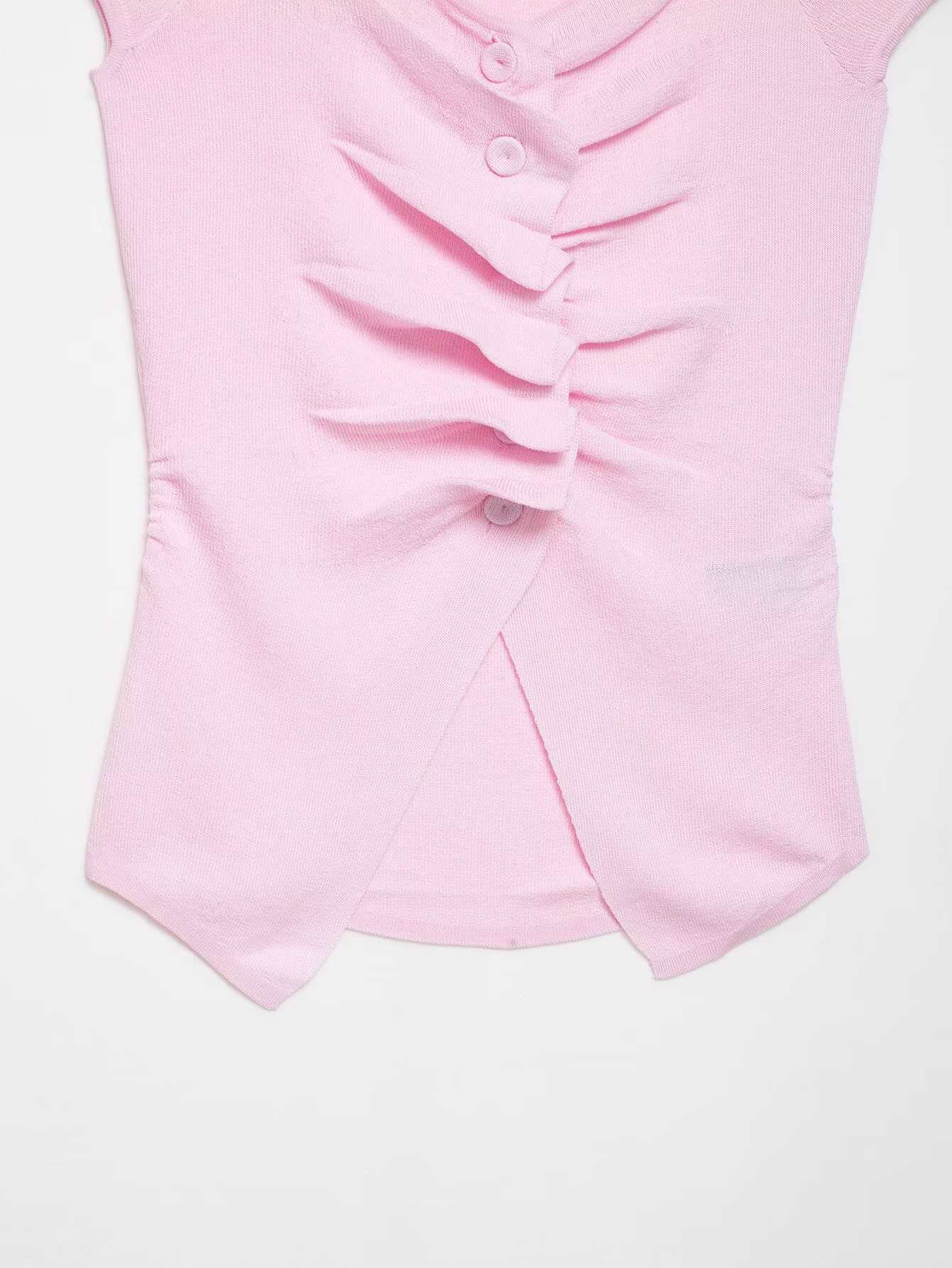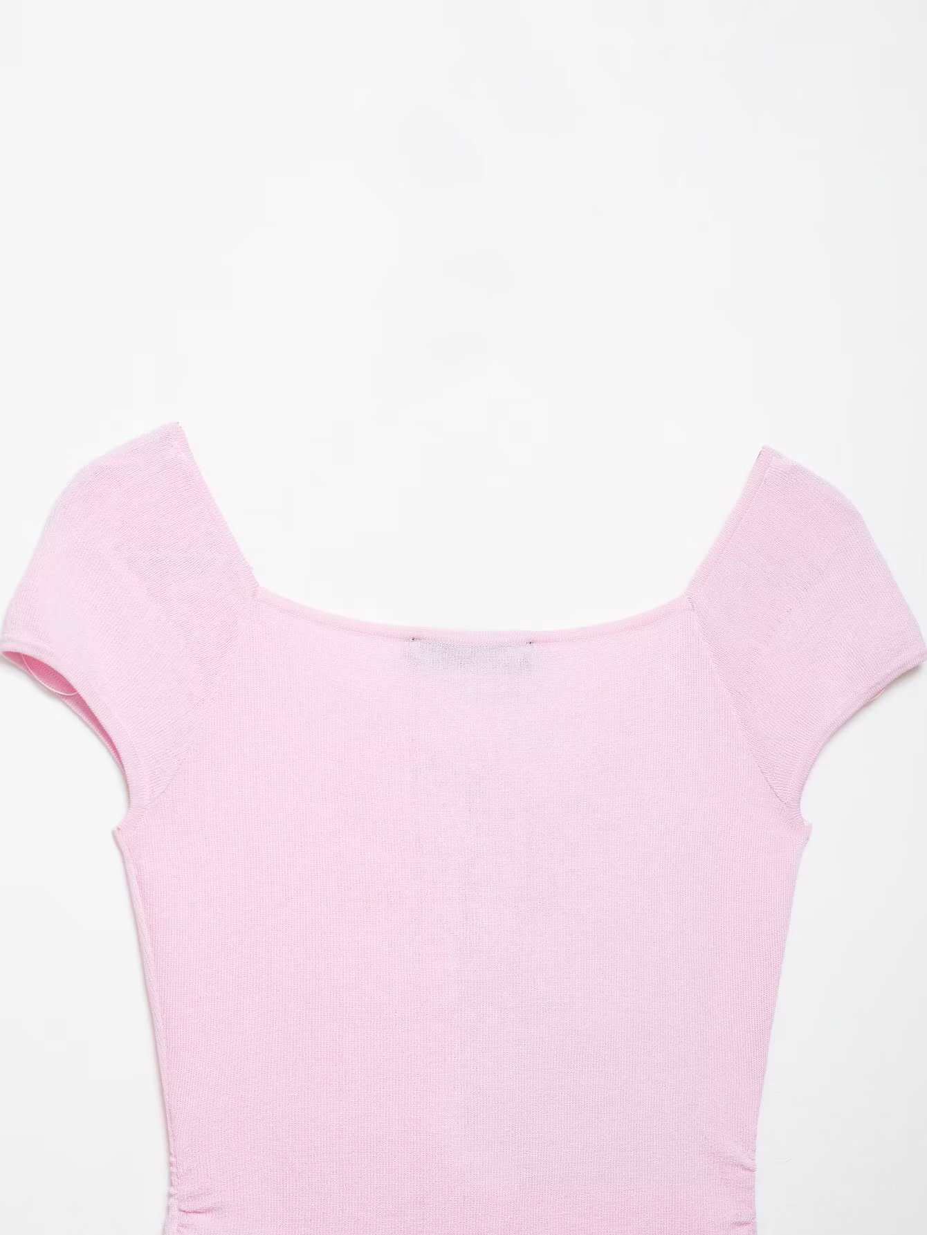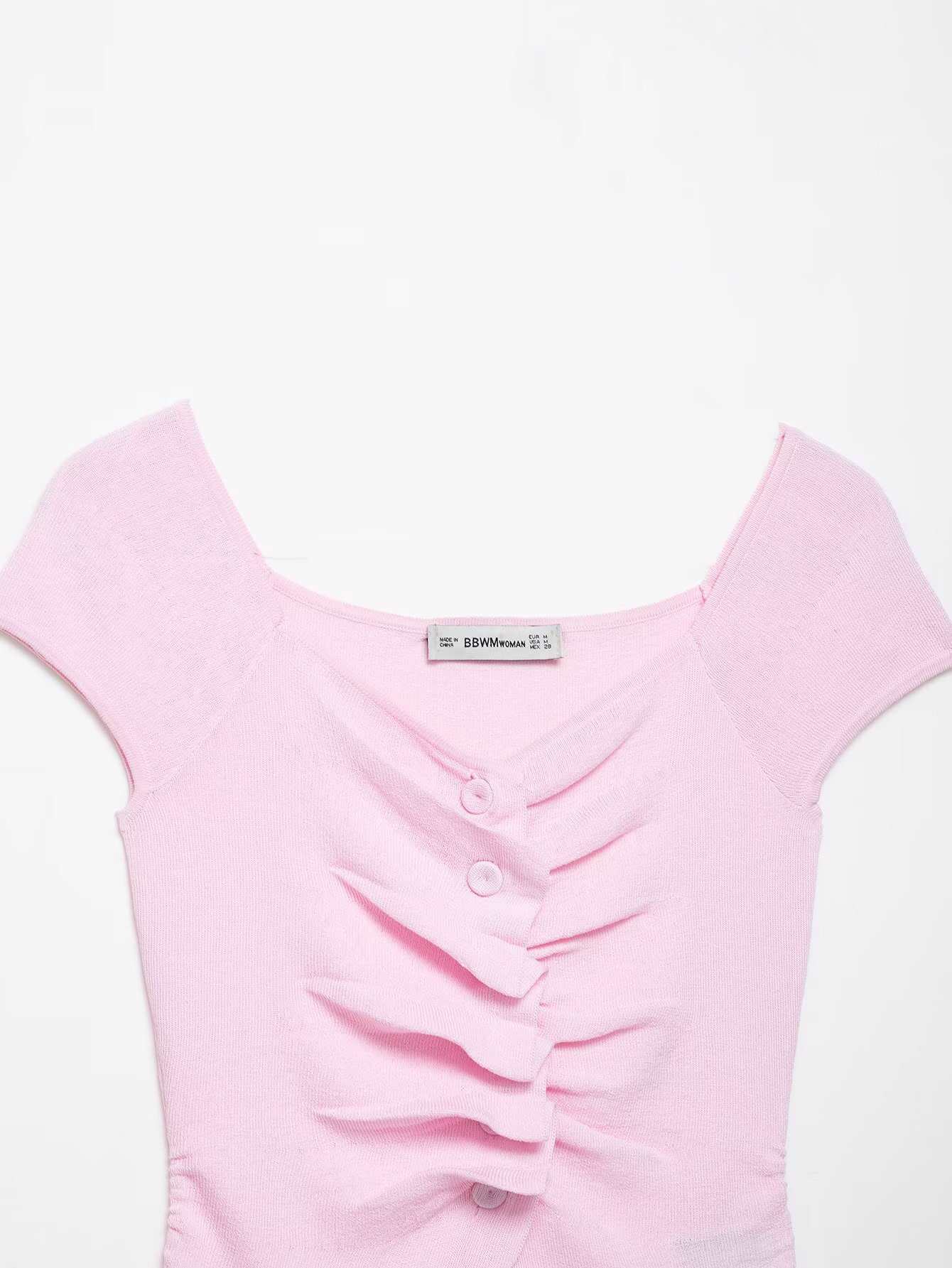 Top de punto de manga corta transfronterizo para mujer, verano, decoración, europeo y americano, nuevo, moda callejera, pliegues