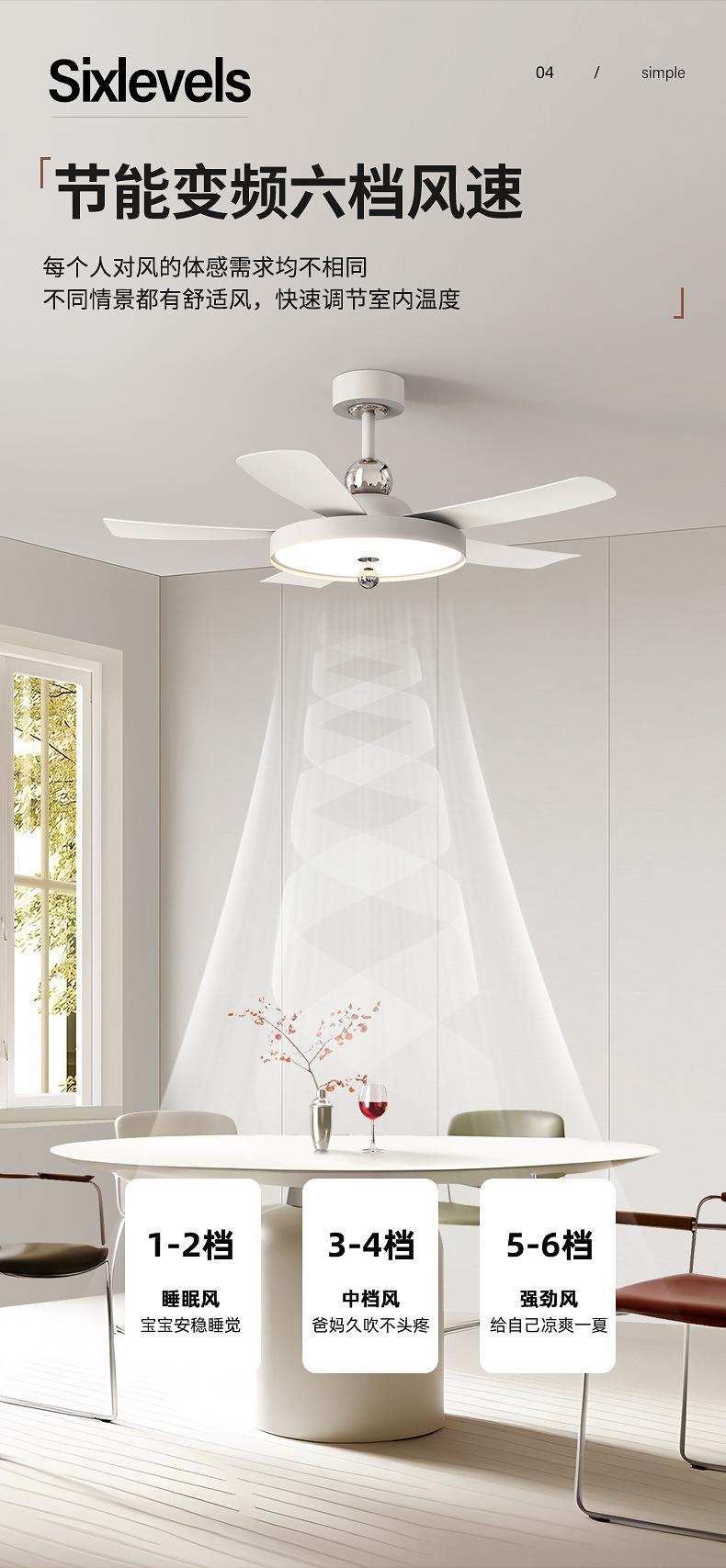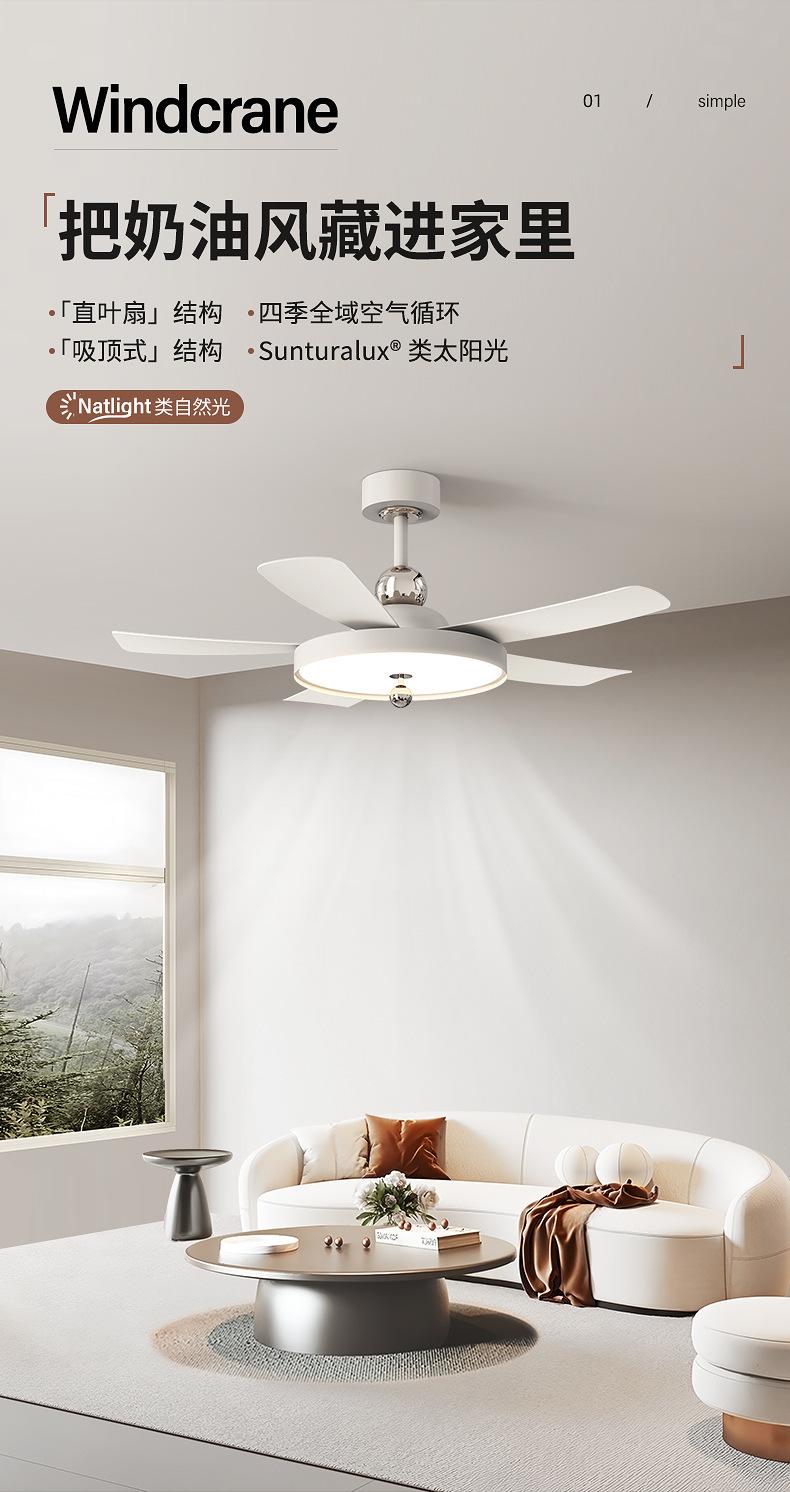 Ventilador de techo invisible estilo crema, simple, moderno, de espectro completo, para dormitorio, calabaza, conversión de frecuencia integrada, silencioso, para restaurante
