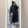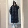 Chaqueta acolchada de algodón negra para mujer 2024 invierno nueva estilo coreano con capucha holgada por encima de la rodilla engrosada cálida abrigo largo acolchado de algodón para mujer
