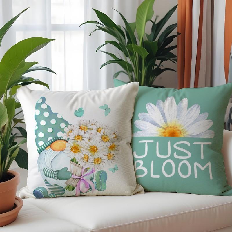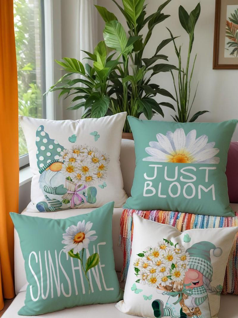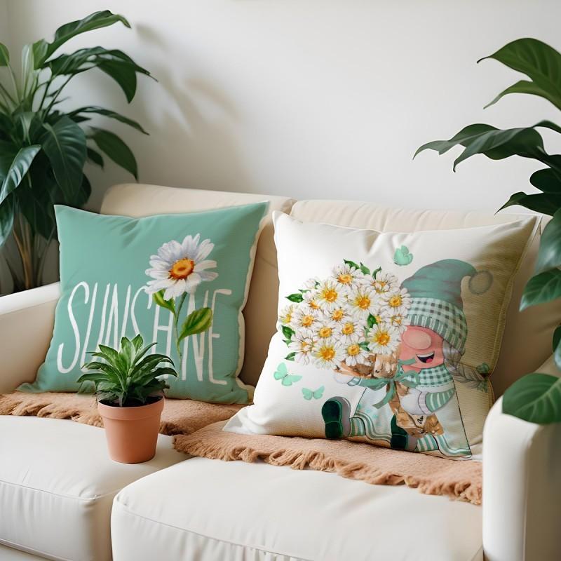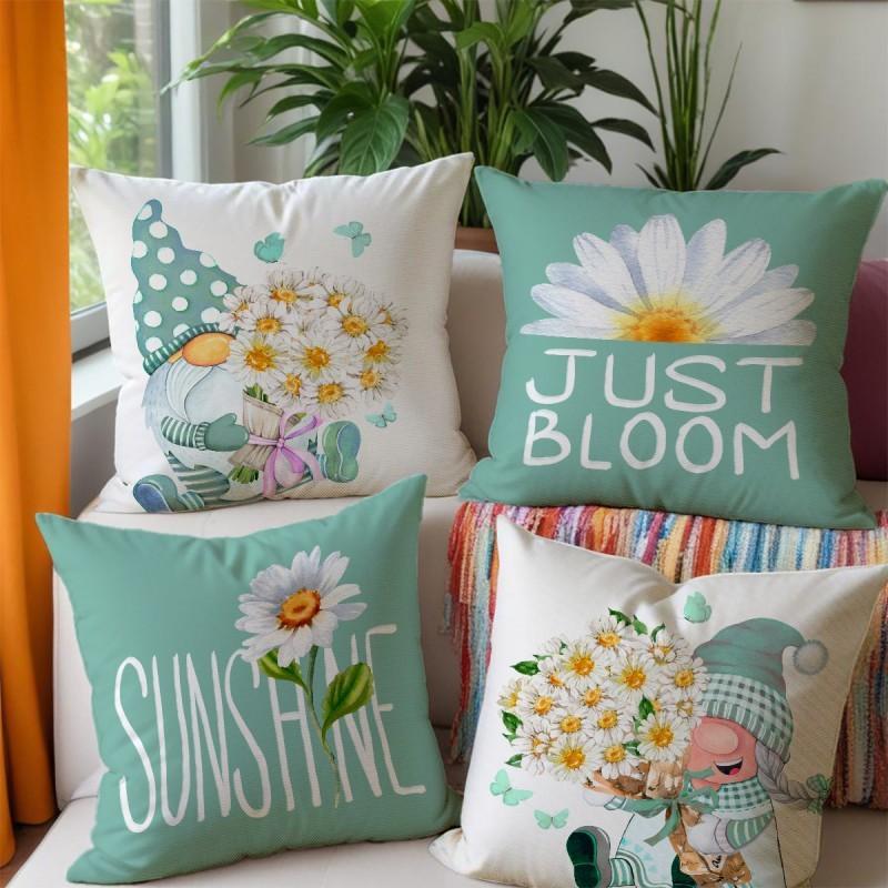 Amazon Style Funda de Almohada de Verano Verde Claro Floral Lino Funda de Cojín Hogar Sofá Moderno Simple Estilo Ins