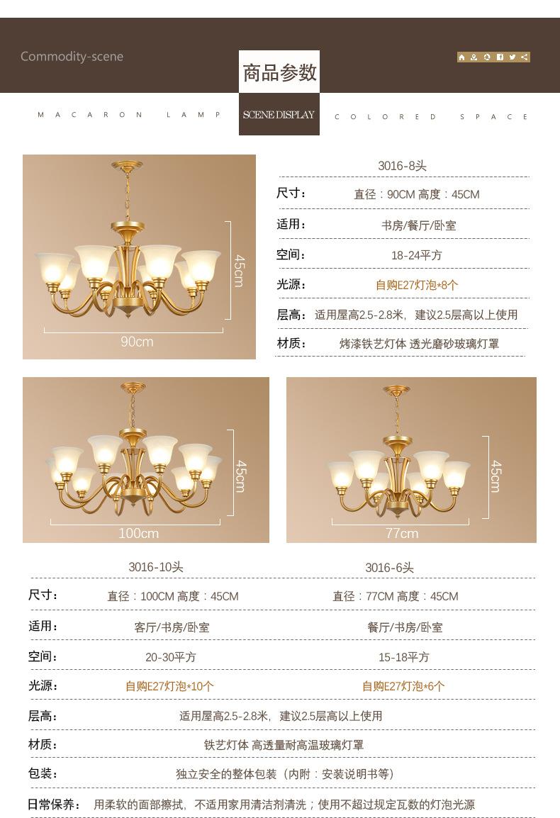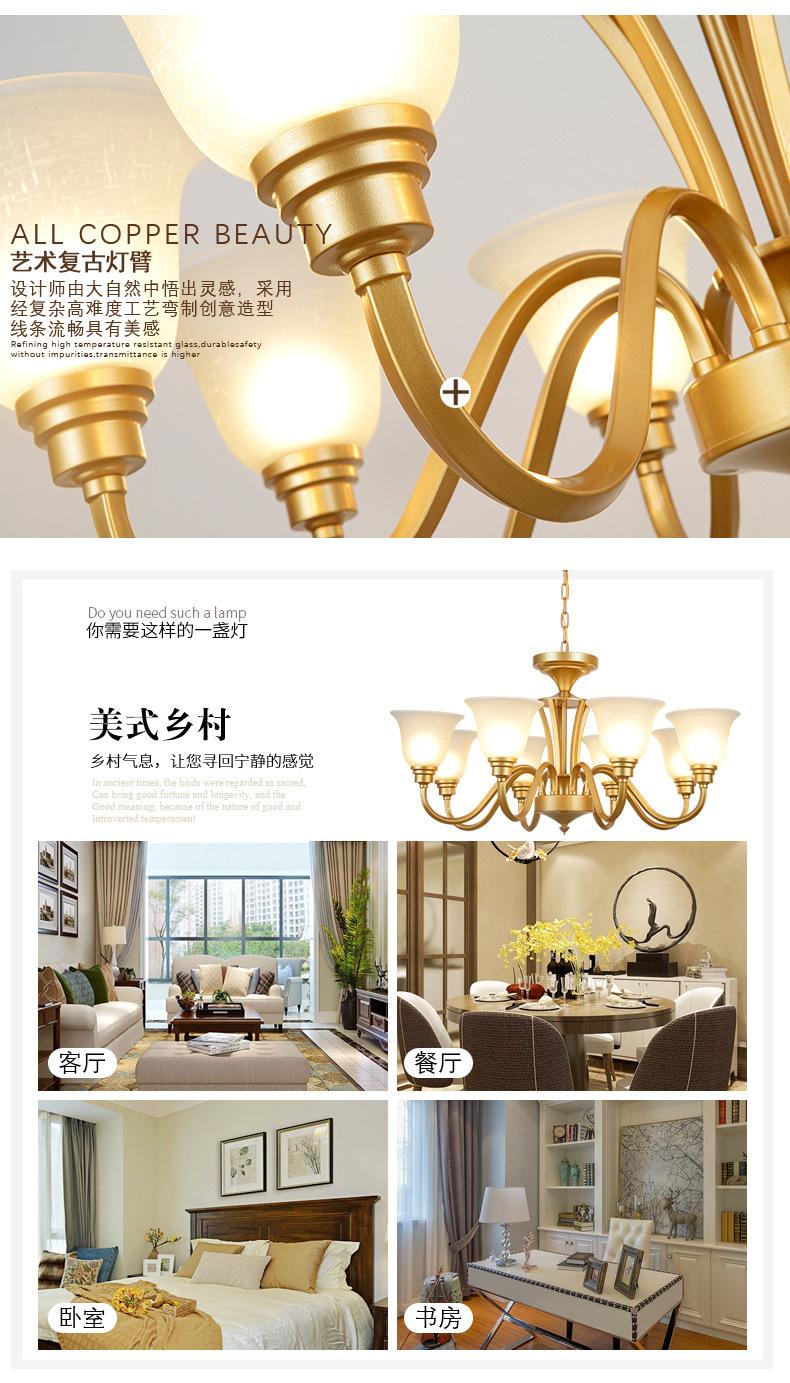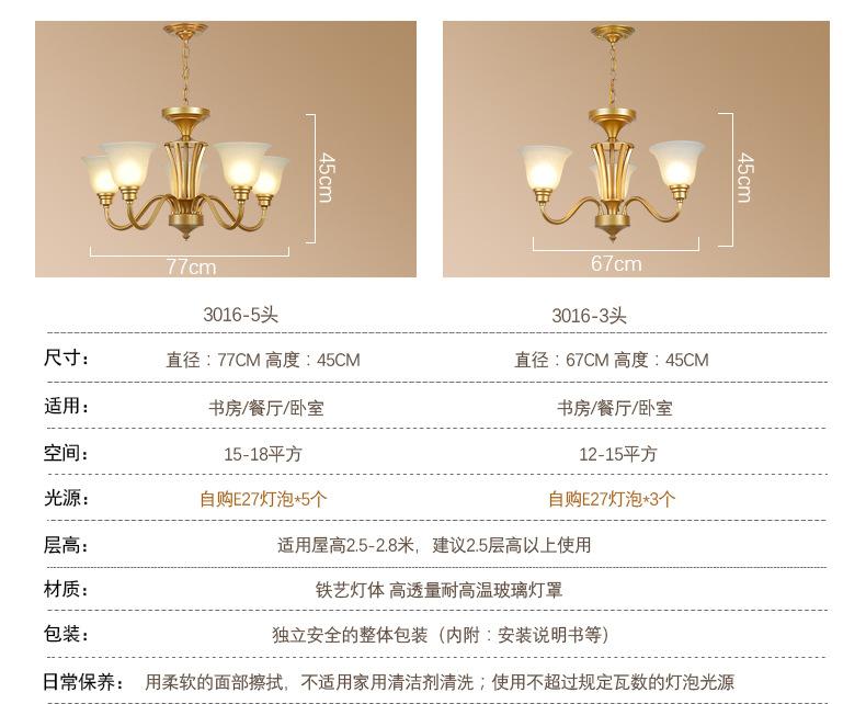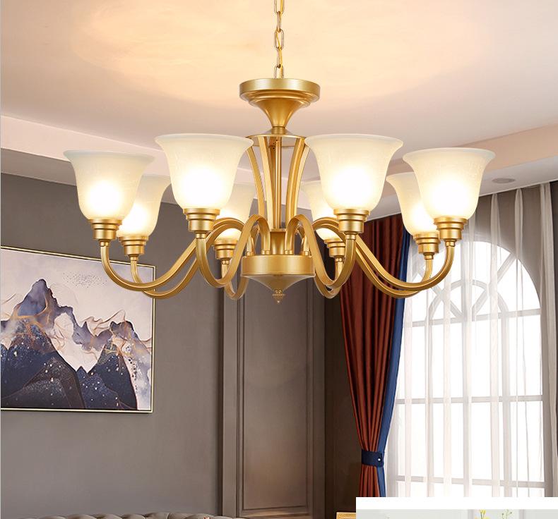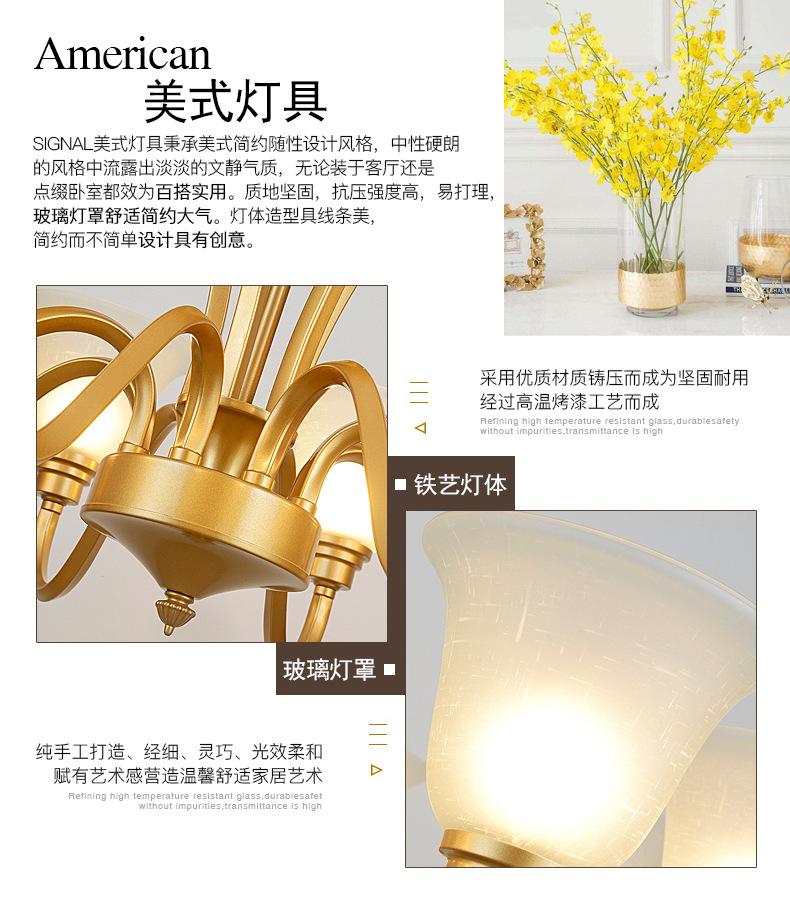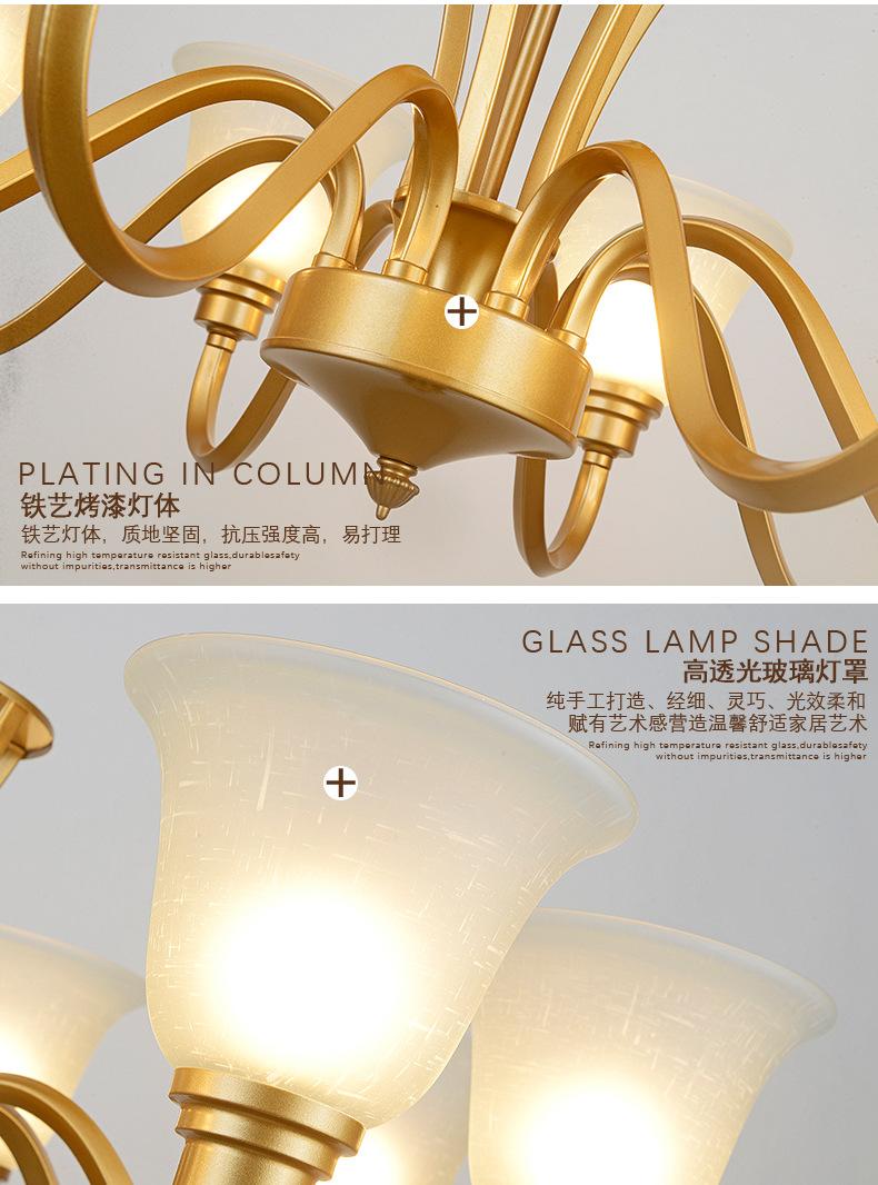 Candelabro de Sala de Estar Americano Hierro Forjado Simple Lámpara de Sala de Estar Campestre Lámpara de Comedor Retro Pasillo Estilo Europeo Dormitorio Candelabro Dorado