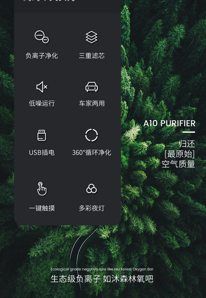 1. Purificación de aire de escritorio / purificación de aire de automóvil;