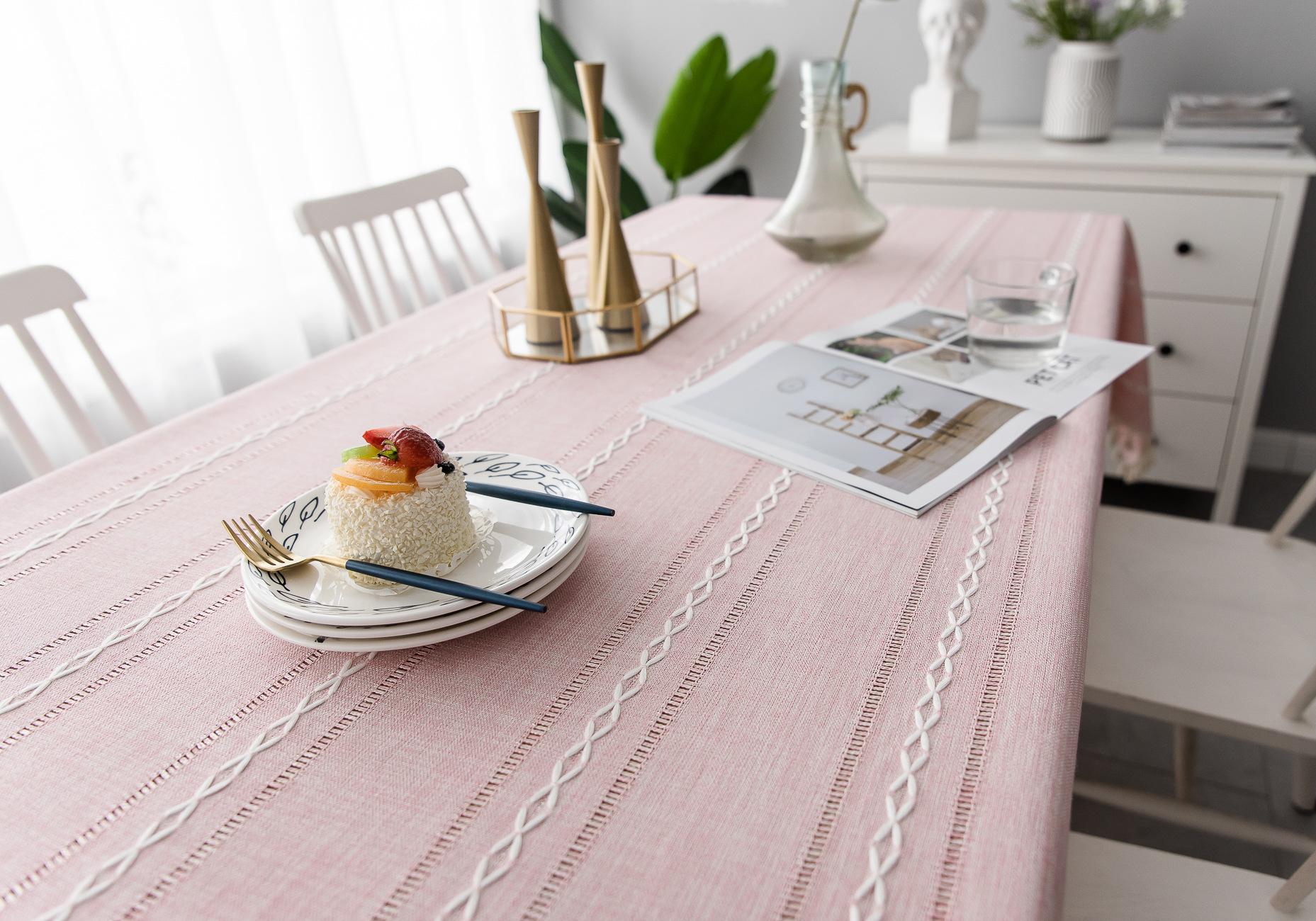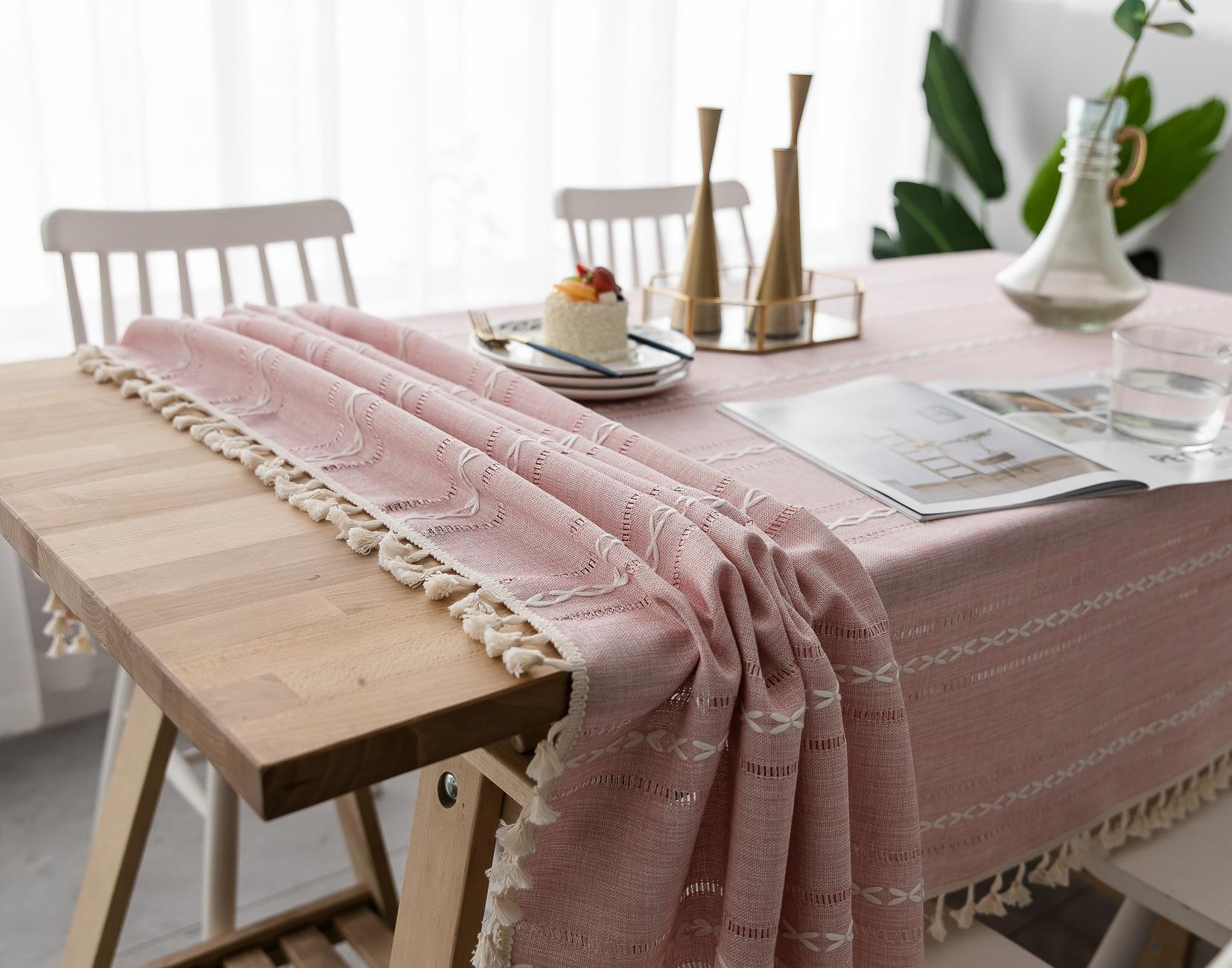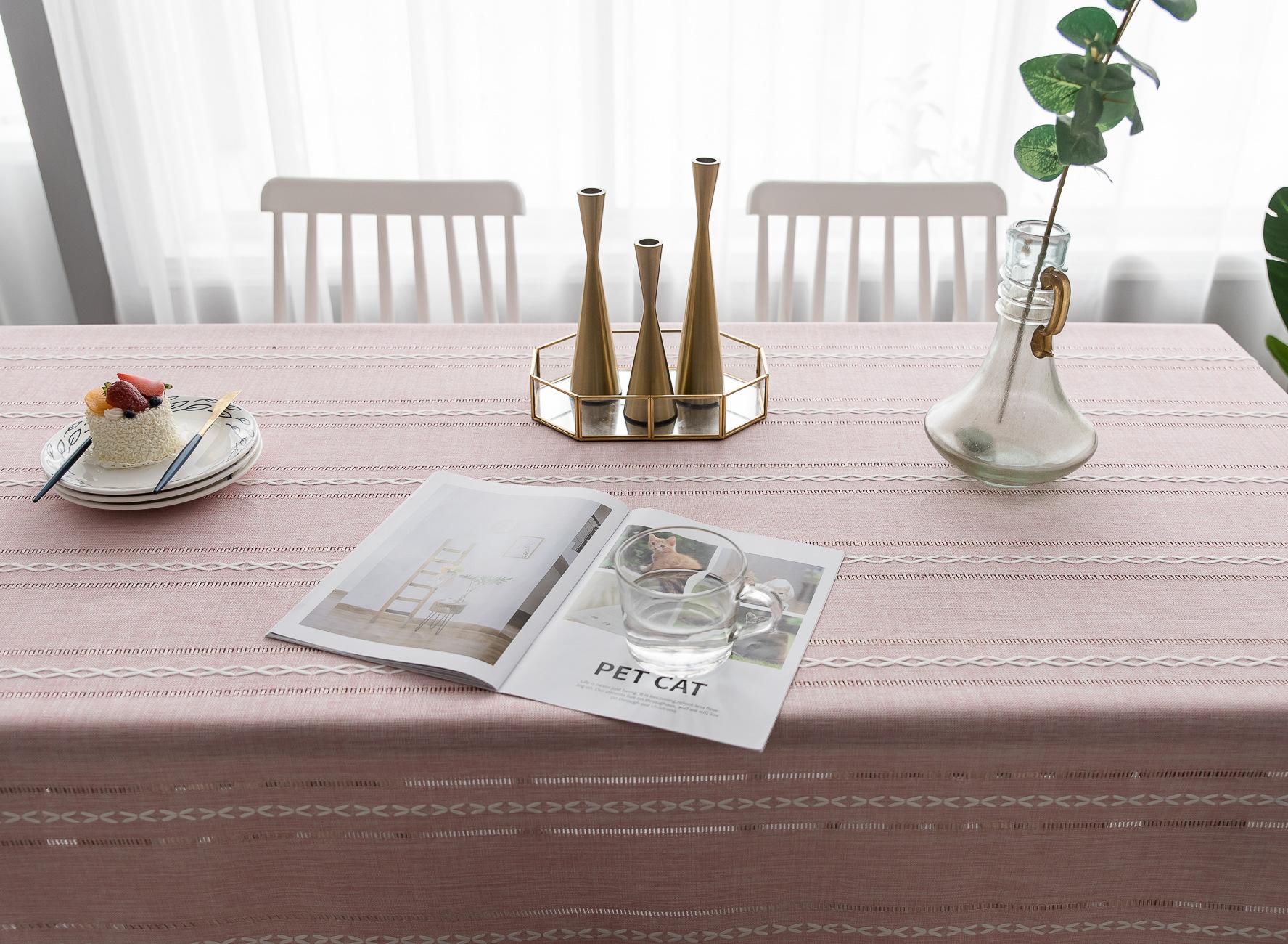 Nuevo mantel sencillo moderno bordado tridimensional tela algodón y lino pequeño fresco cubierta para mesa de centro rectangular venta al por mayor de fábrica