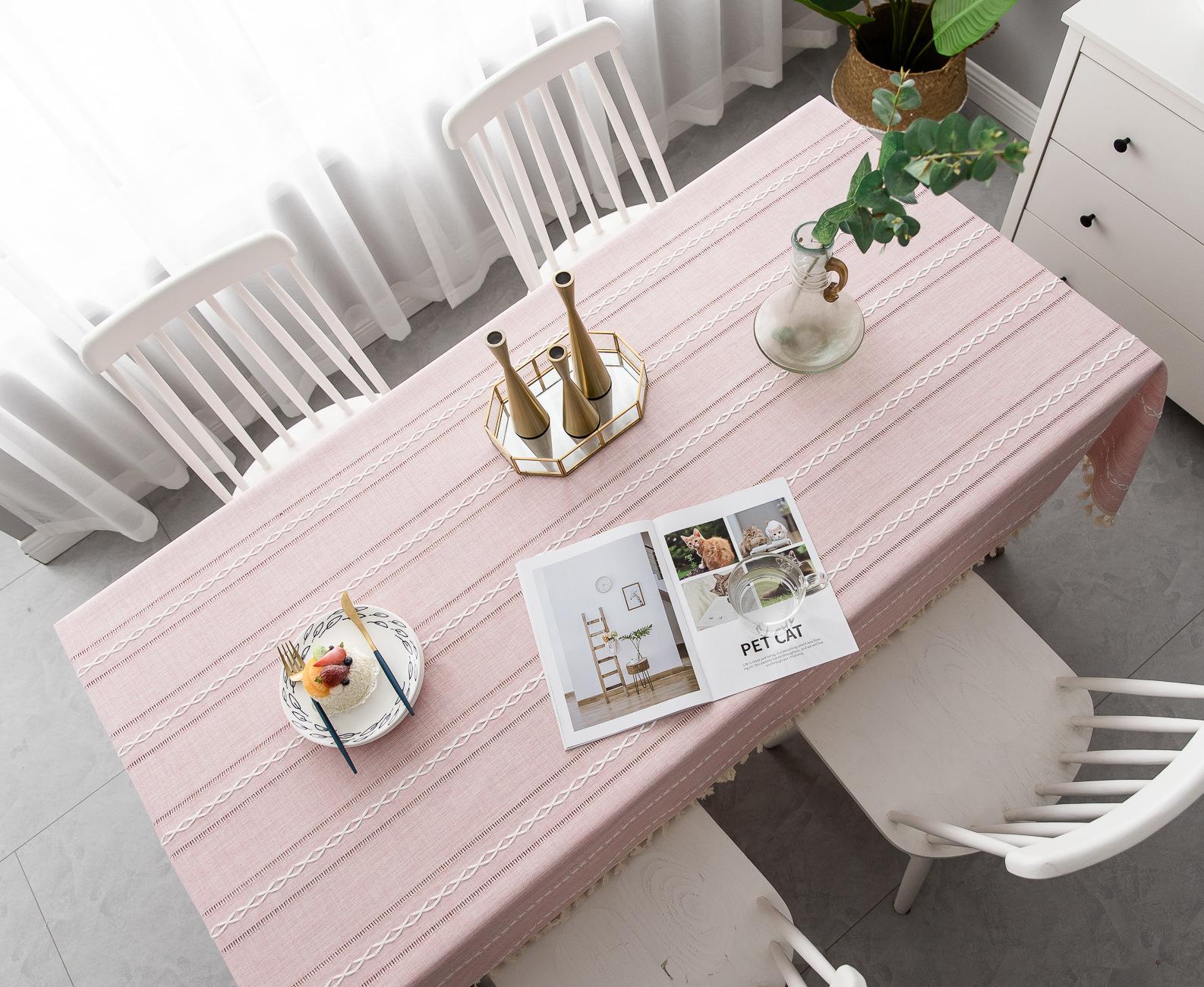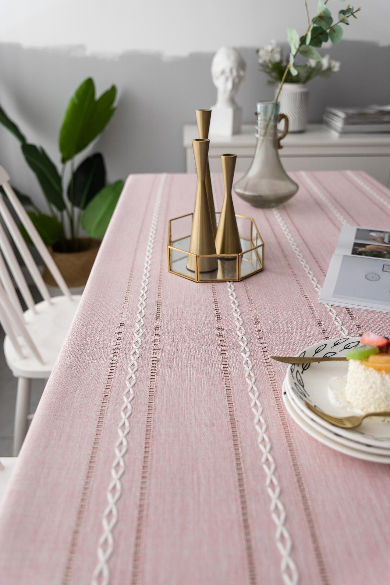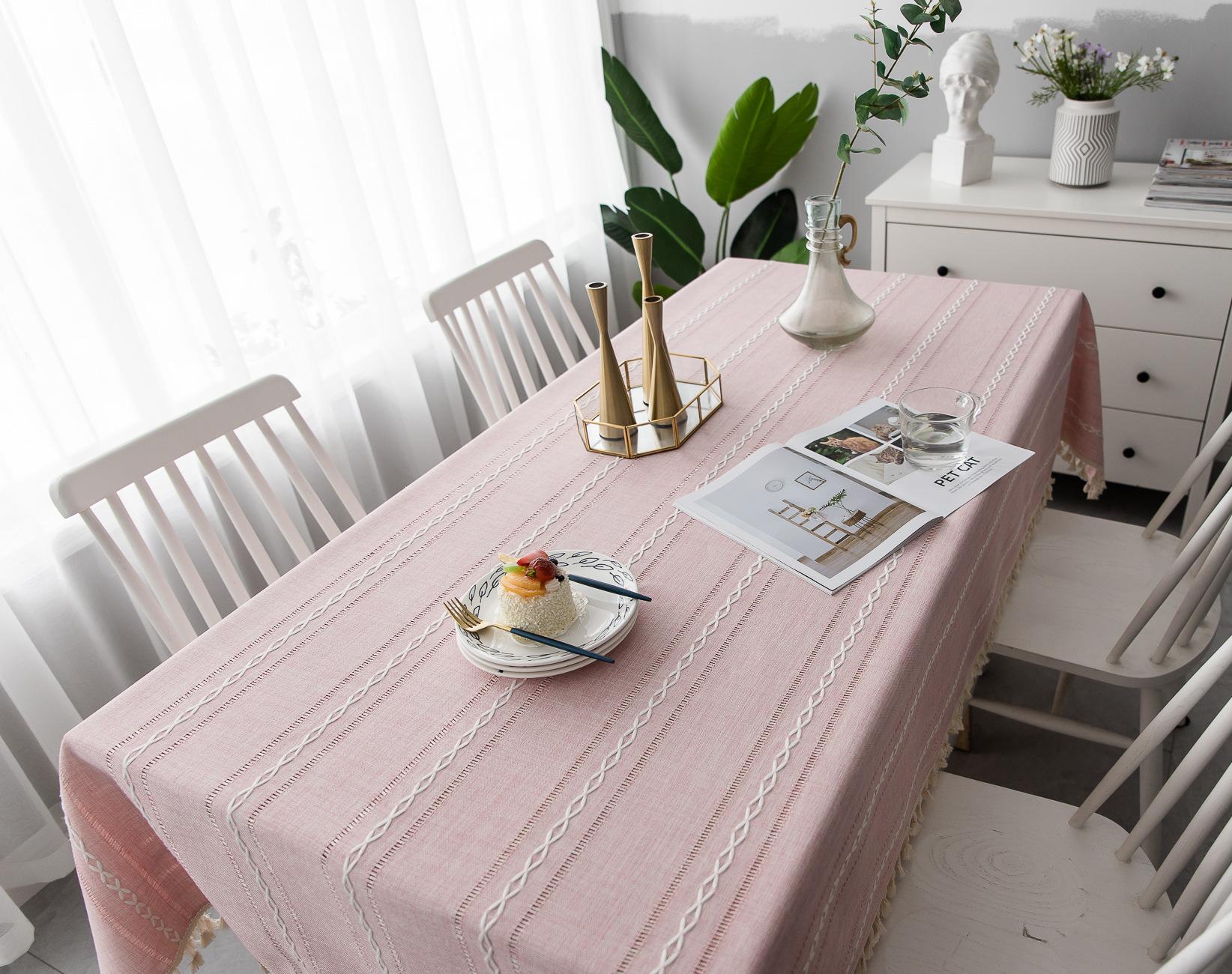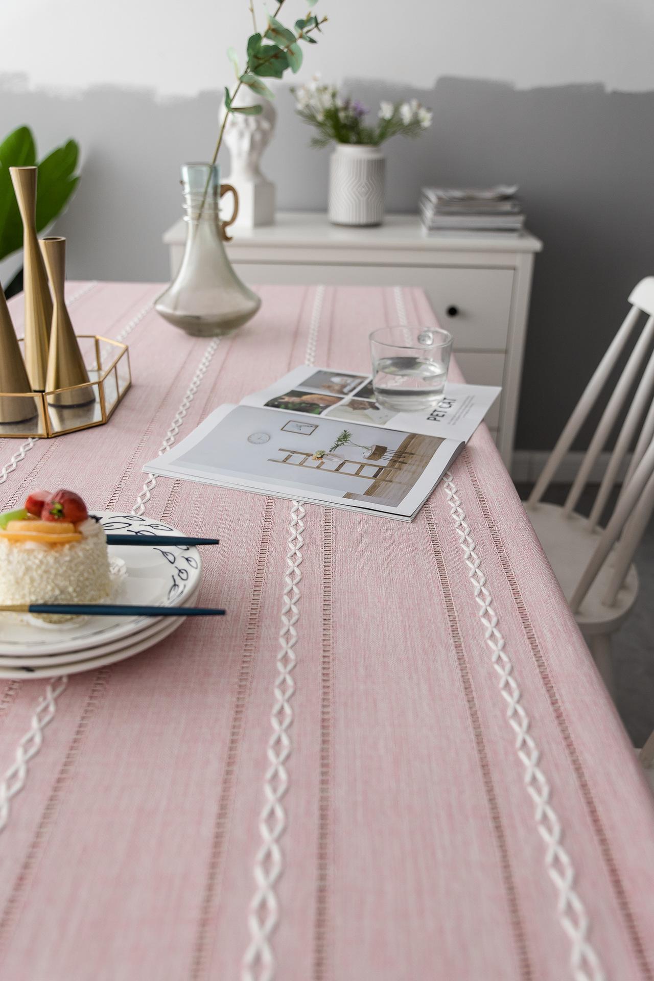 Nuevo mantel sencillo moderno bordado tridimensional tela algodón y lino pequeño fresco cubierta para mesa de centro rectangular venta al por mayor de fábrica