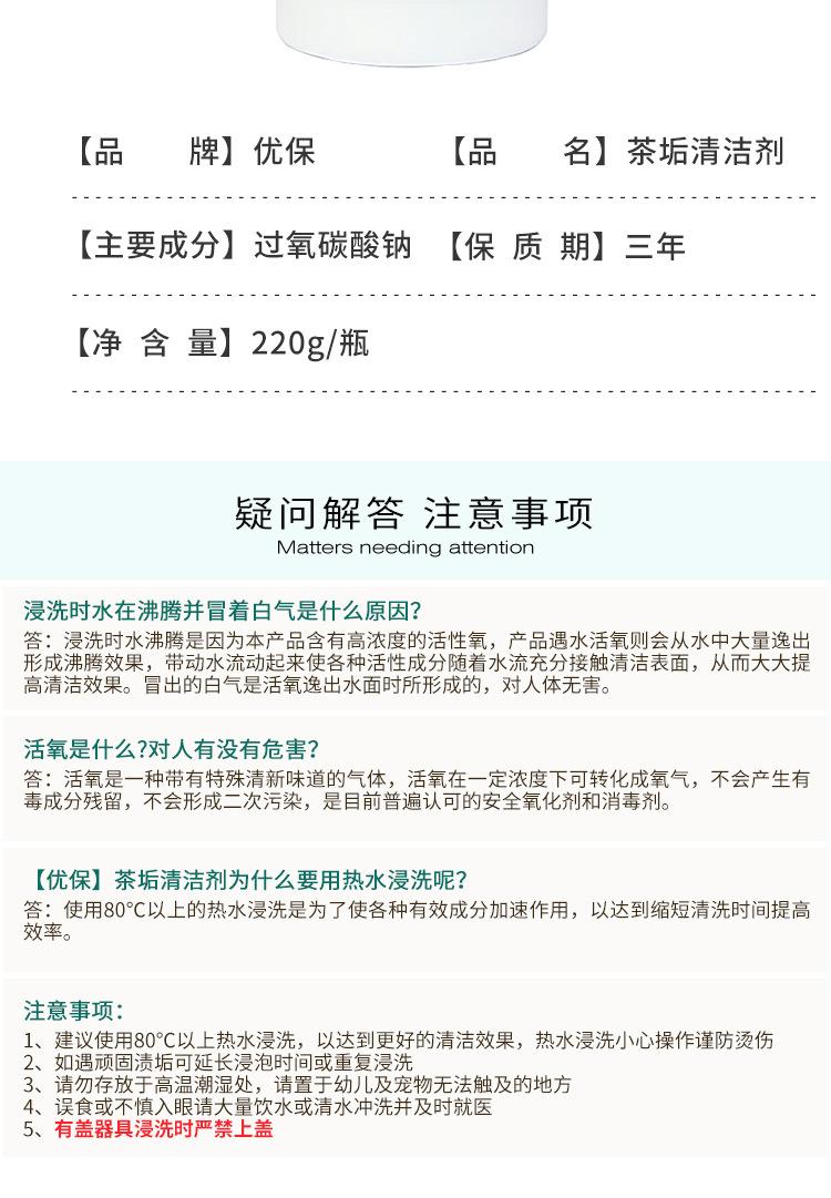 Compra Limpiador de sarro de té Youbao grado alimenticio removedor de manchas de té agente limpiador detergente para juego de té detergente para cubeta de té con leche 220g al por mayor en Joom.pro