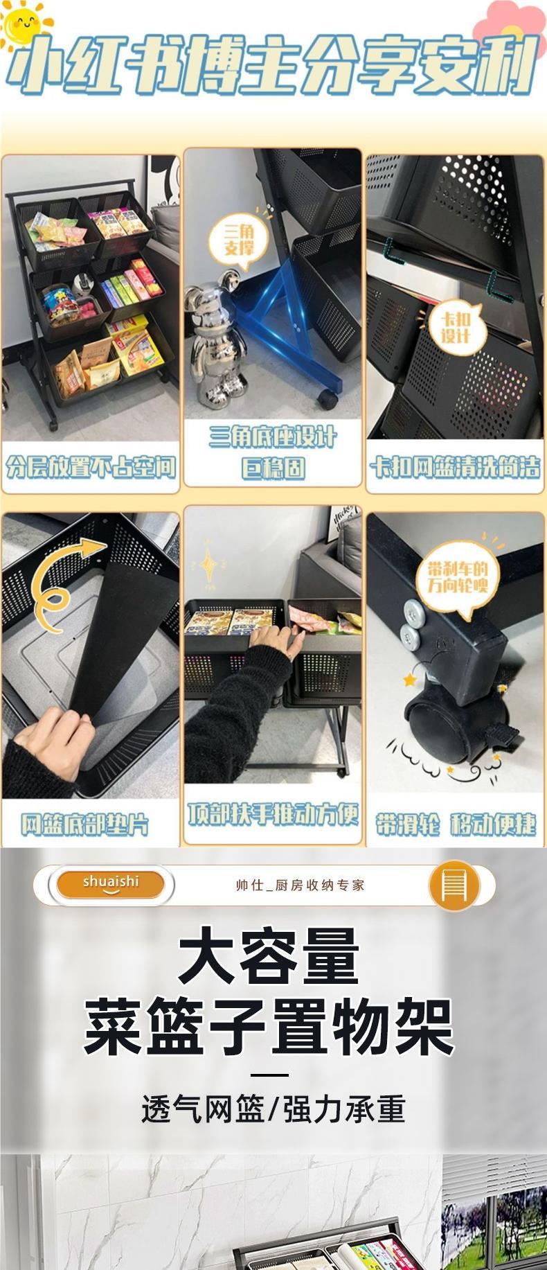 [same model as the best-selling one on xiaohongshu] - black 3-layer 3-basket [net basket is detachable]☆♢