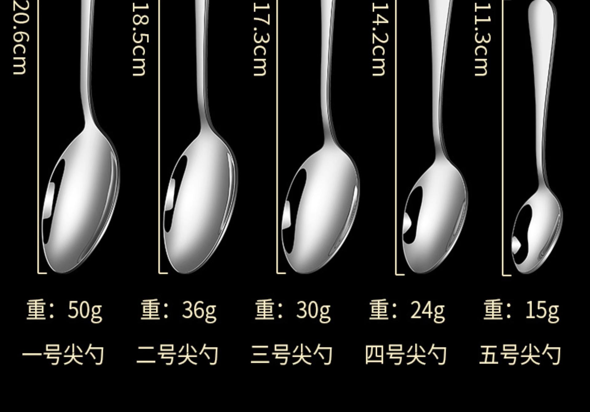 No. 1 pointed spoon, No. 2 pointed spoon, No. 3 pointed spoon, No. 4 pointed spoon, No. 5 pointed spoon, No. 1...