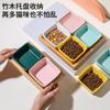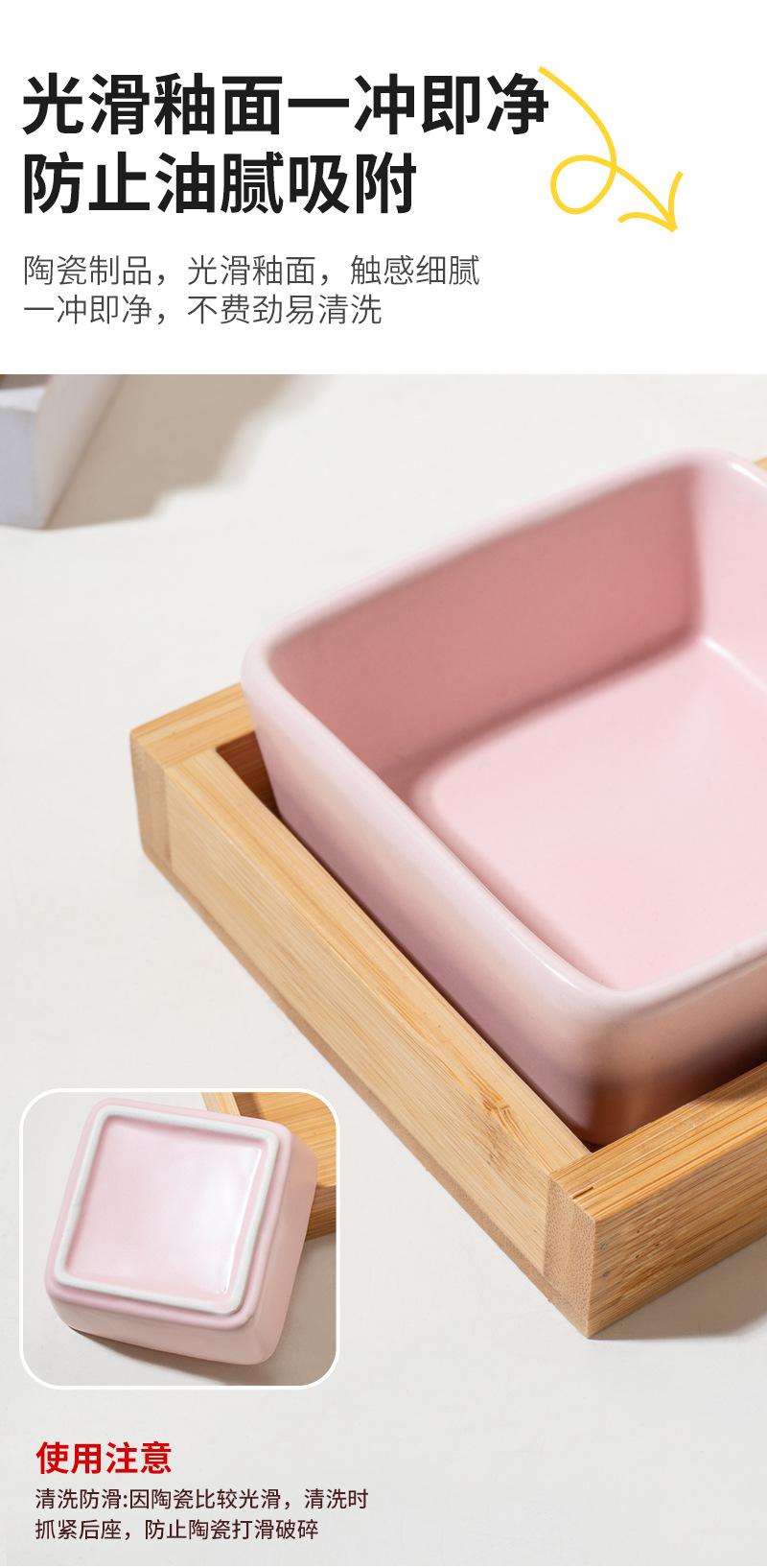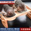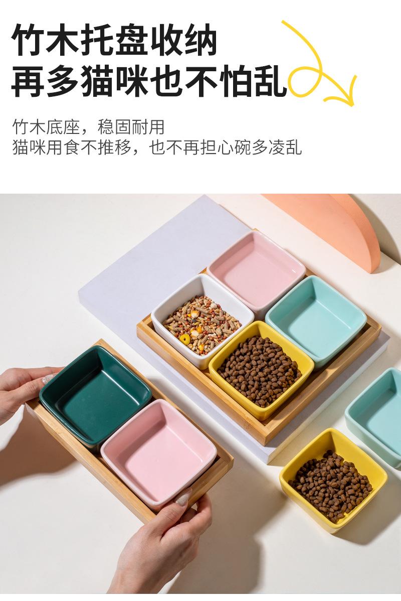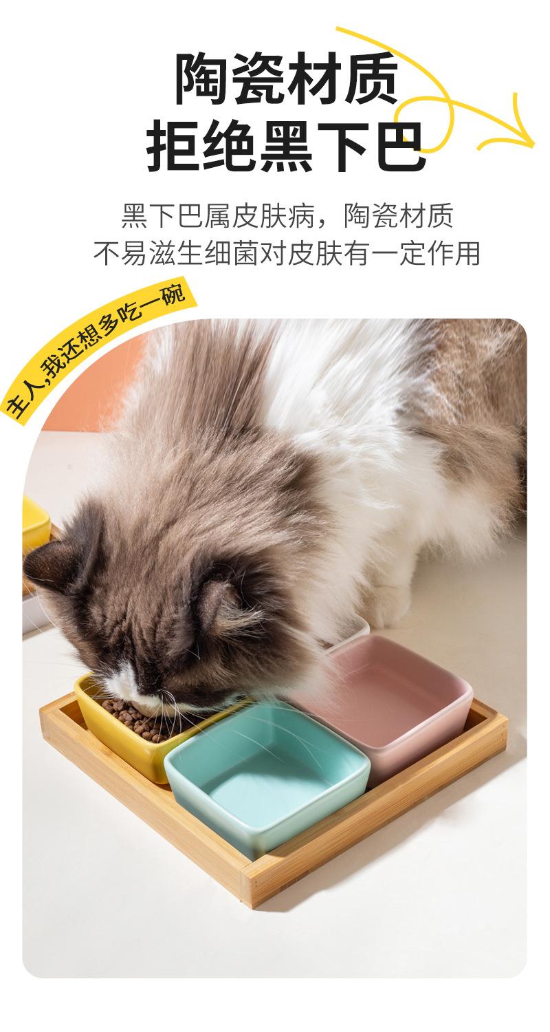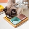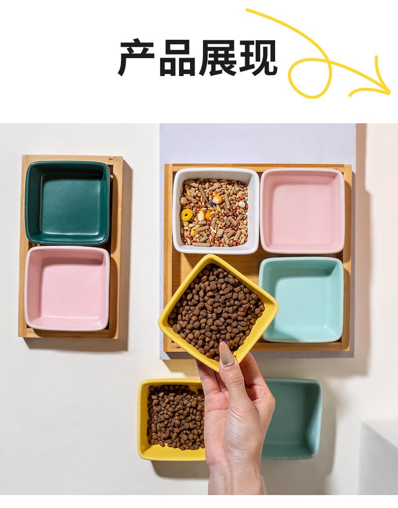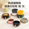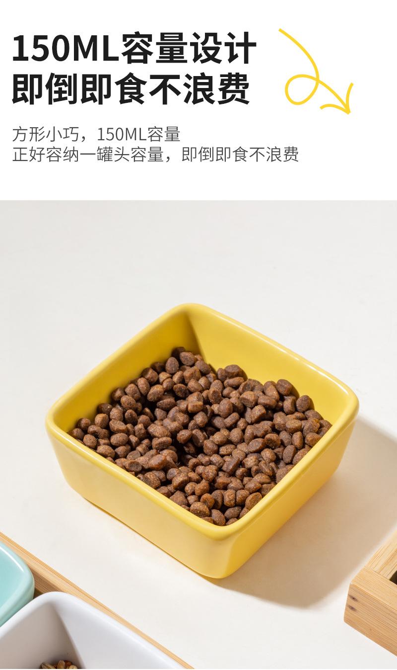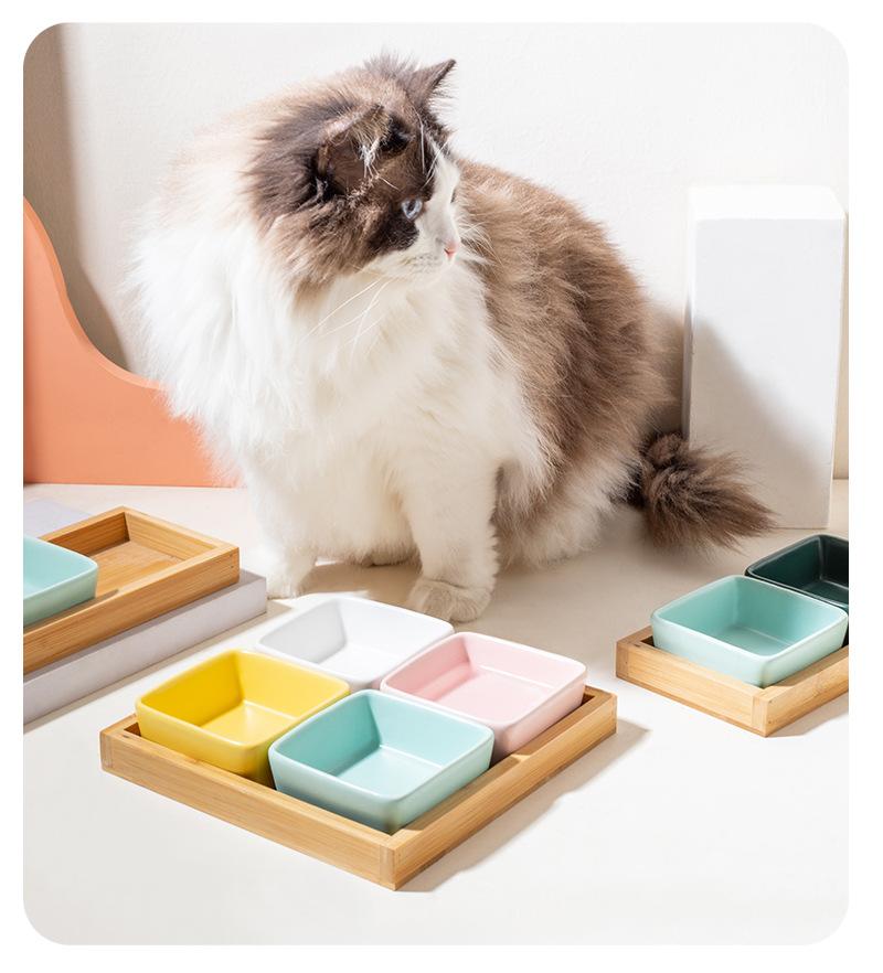 Tazón Cuadrado para Gato Cerámico Cachorro Gatito Adecuado Utensilios para Comida con Bandeja de Madera para Proteger la Columna Cervical Tazón para Comida de Gato Recipiente para Comida de Gato