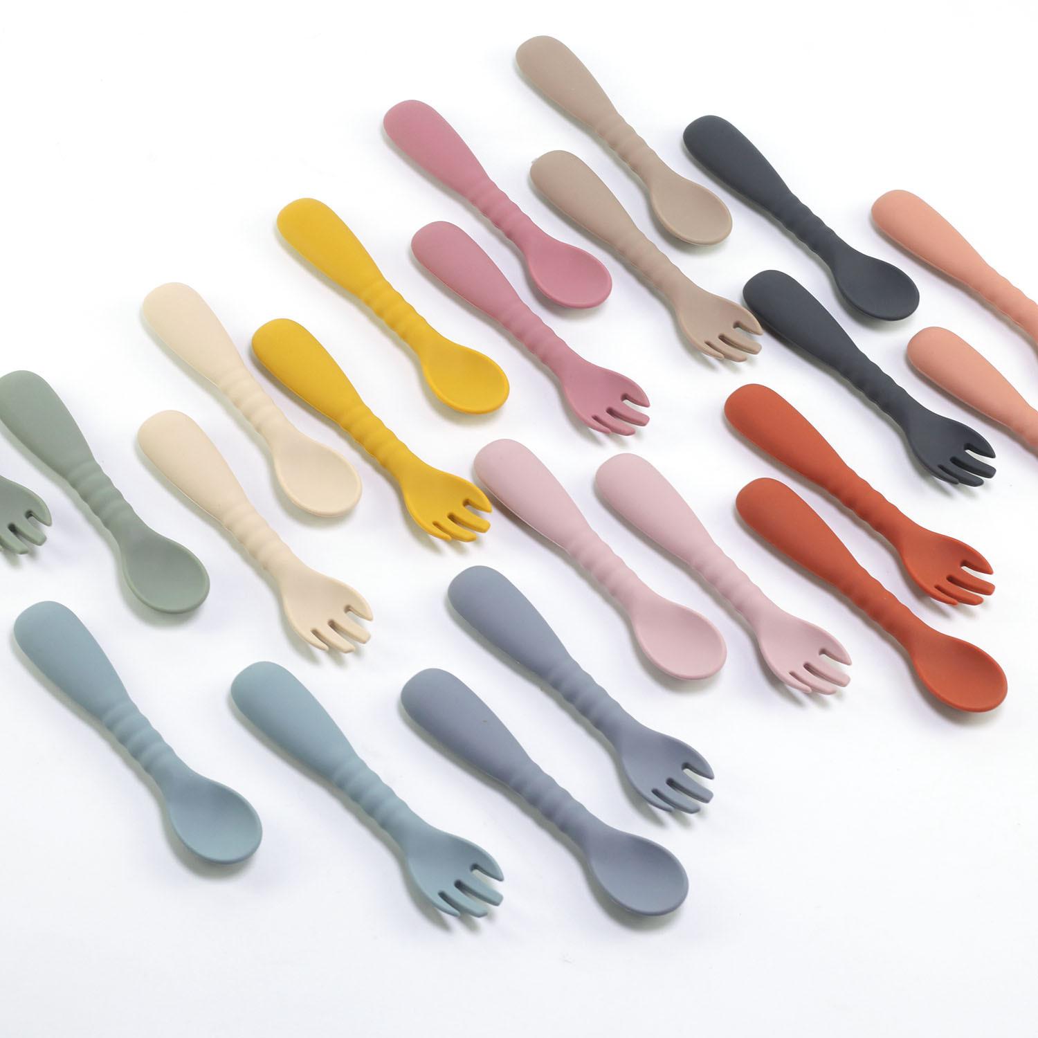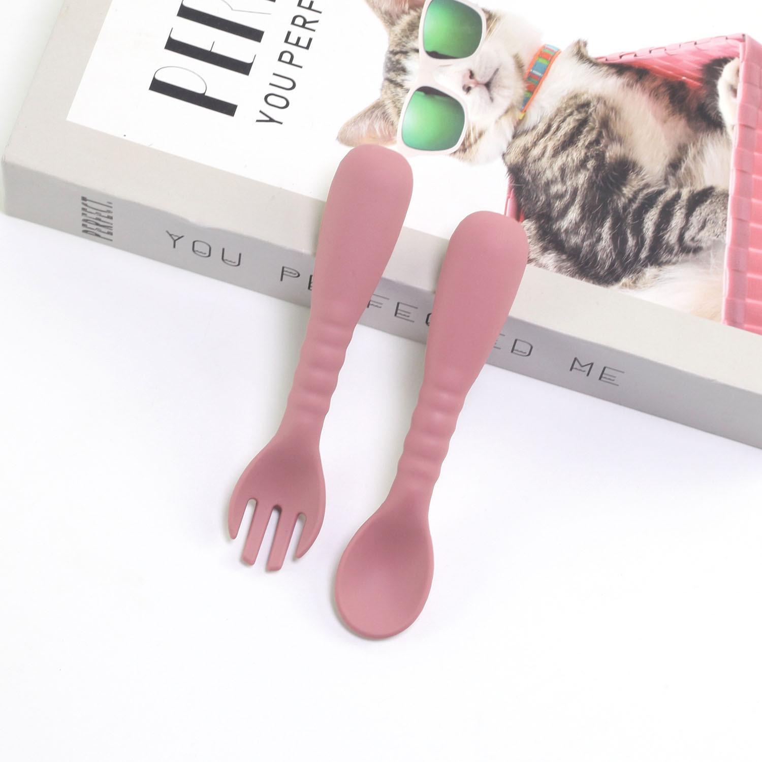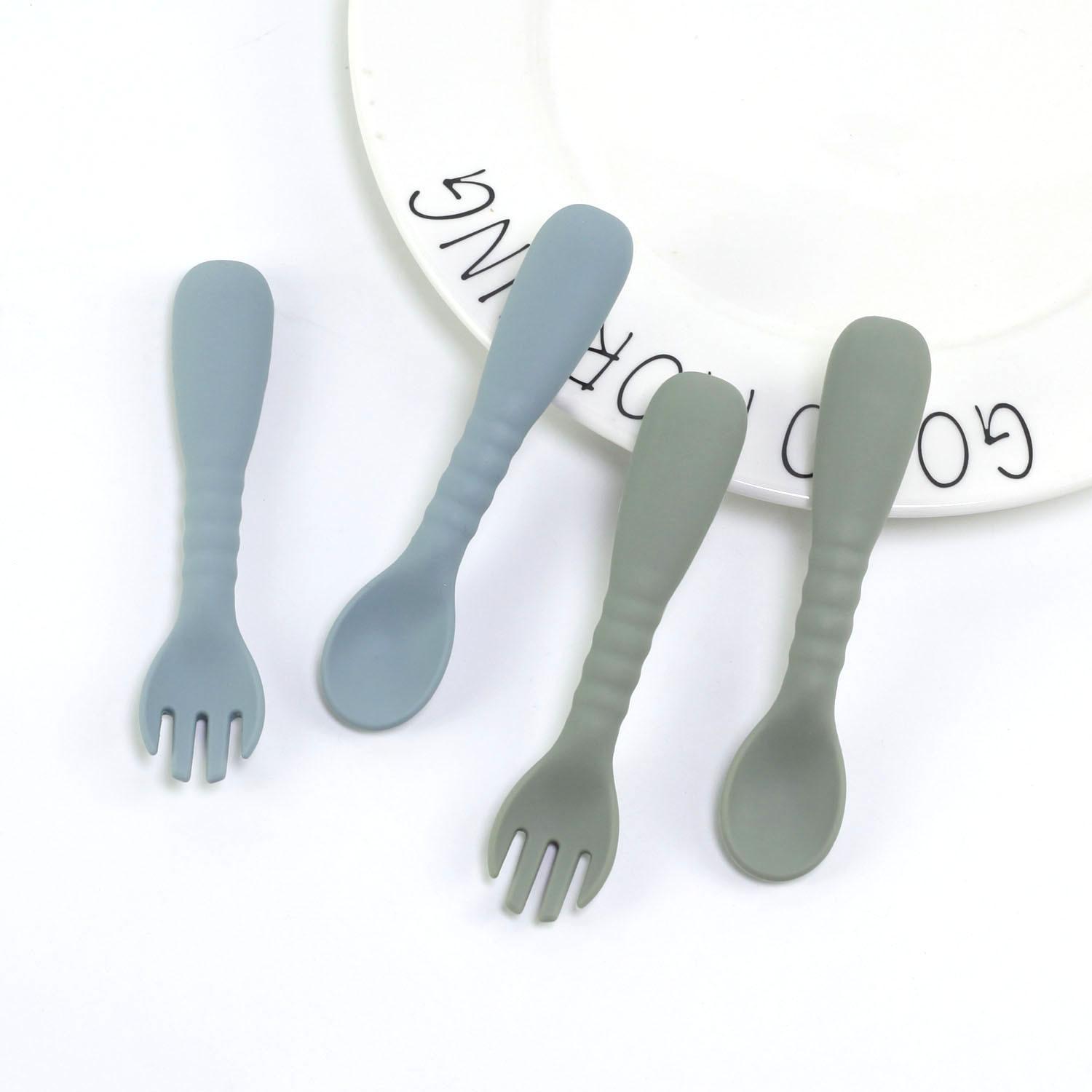 Bebé aprendiendo a comer cuchara de entrenamiento tenedor comida para bebé cuchara de silicona cuchara para comida para niños tenedor juego de cubiertos