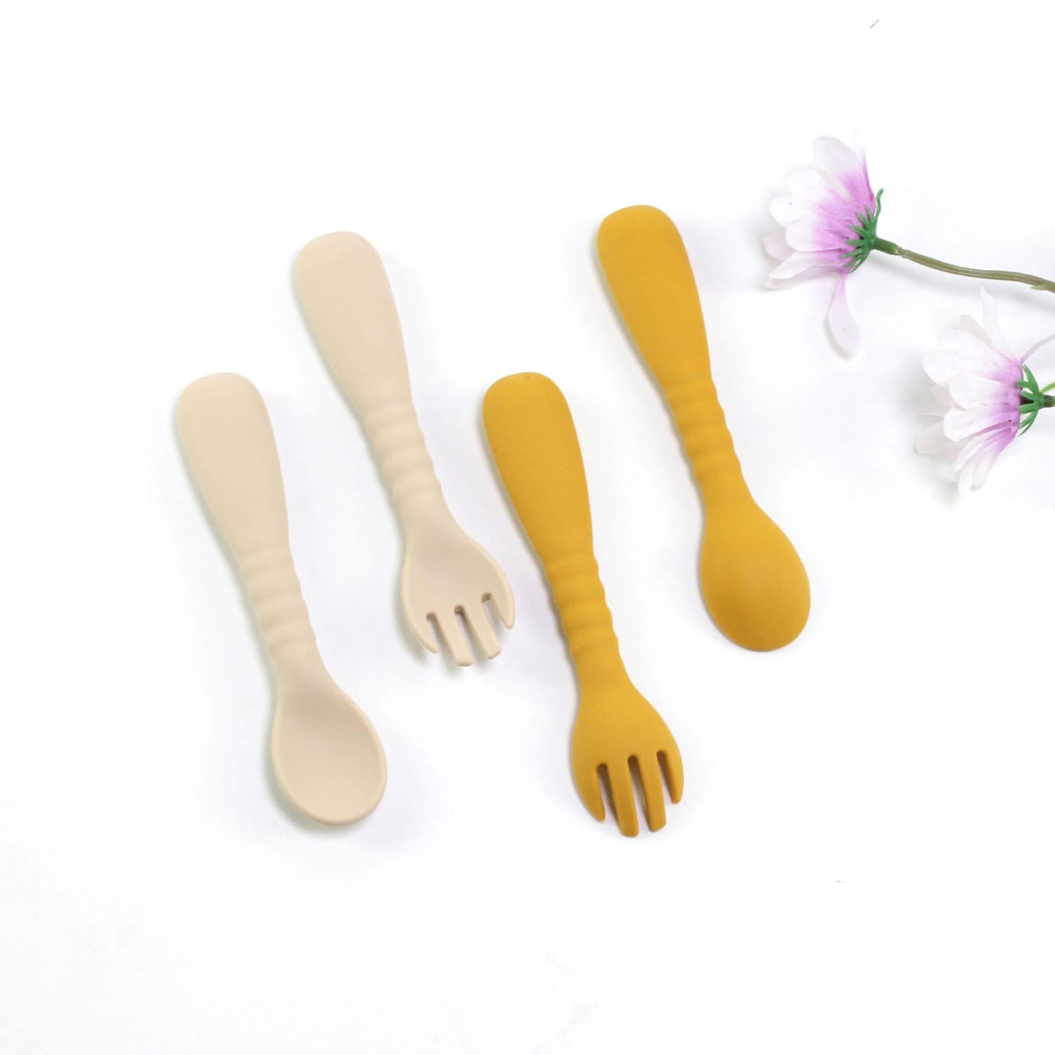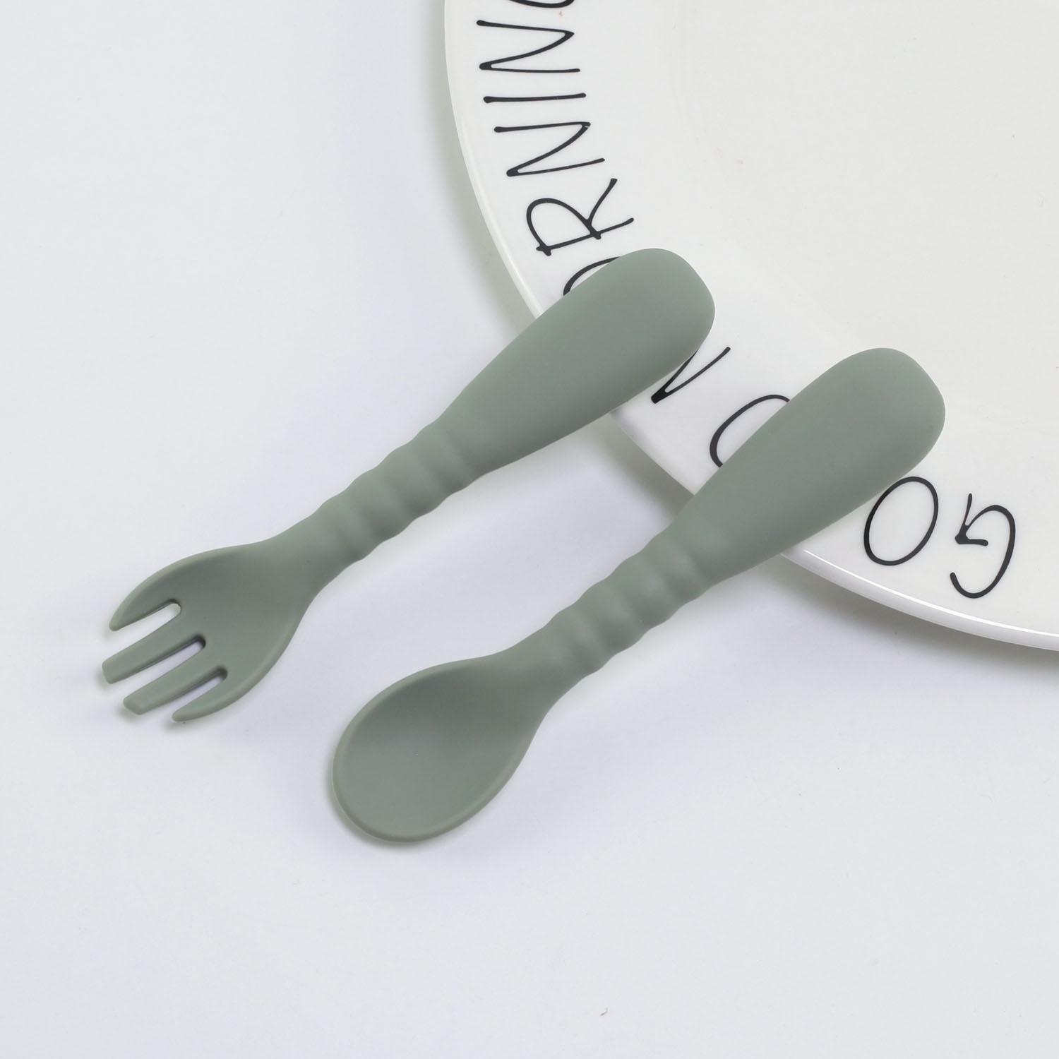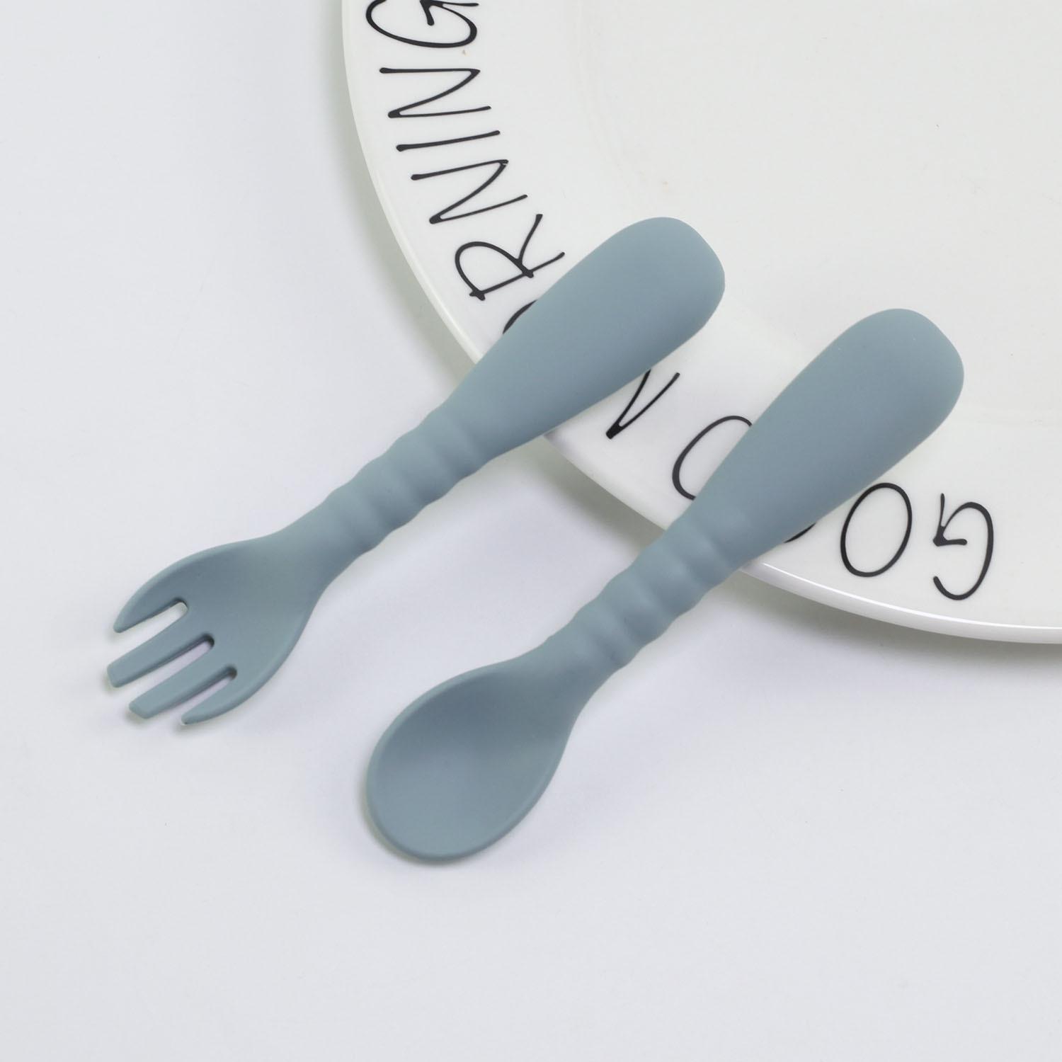 Bebé aprendiendo a comer cuchara de entrenamiento tenedor comida para bebé cuchara de silicona cuchara para comida para niños tenedor juego de cubiertos