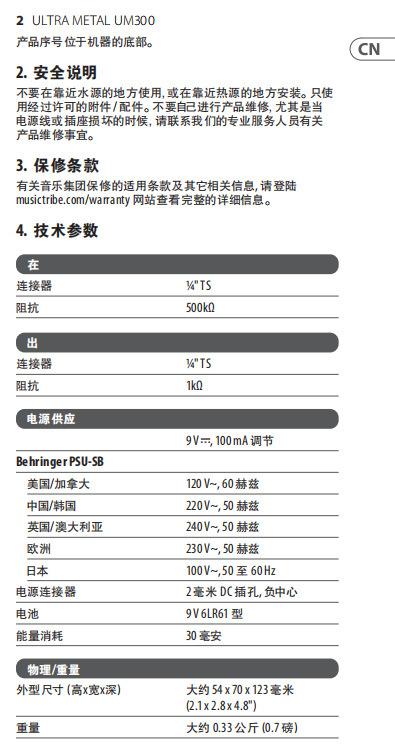 BEHRINGER/Bellinger UM300 Distorsión Profesional Heavy Metal Guitarra Instrumento Bajo Efecto de Bloque Único