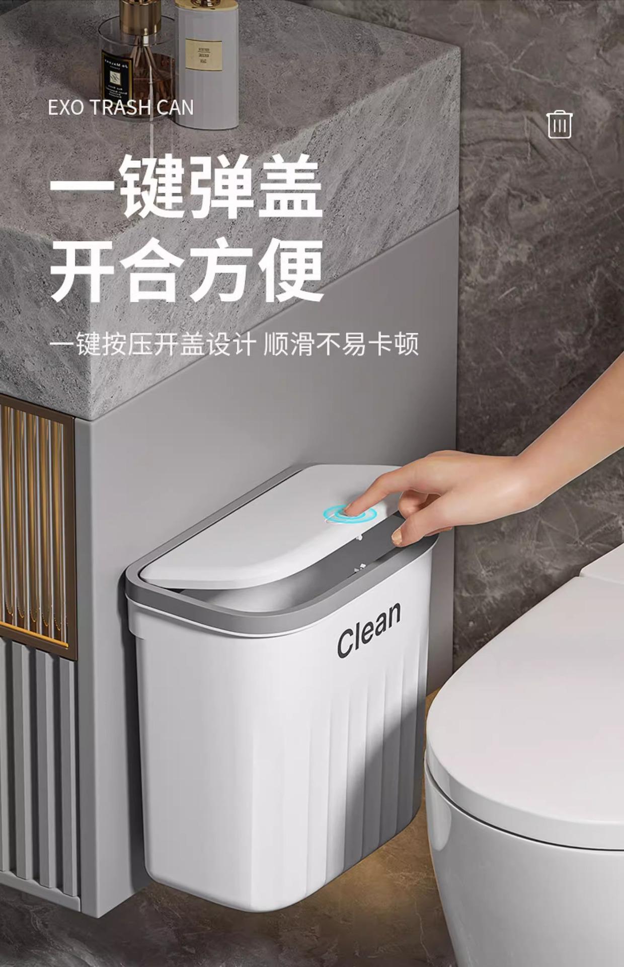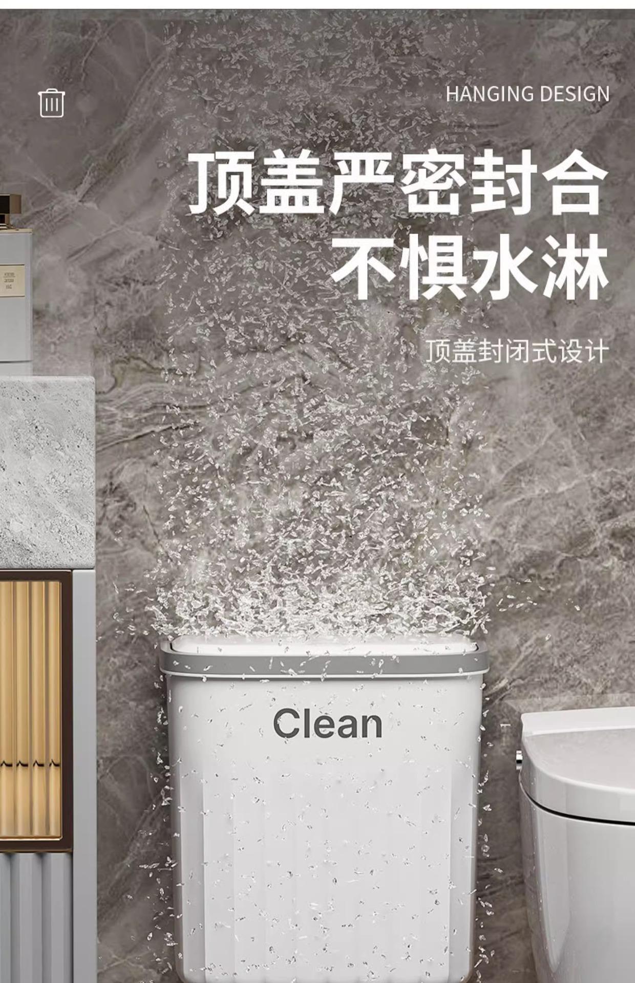 Bote de Basura de Cocina Baño con Tapa Cubo para Almacenamiento de Basura Hogar Montado en la Pared Sin Instalación Bote de Basura Multiusos