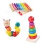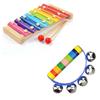 Equipado con un pequeño martillo de madera, produce una música agradable con colores brillantes y un sonido pleno. Este modelo es un instrumento de percusión afinado en una escala de 8 notas.