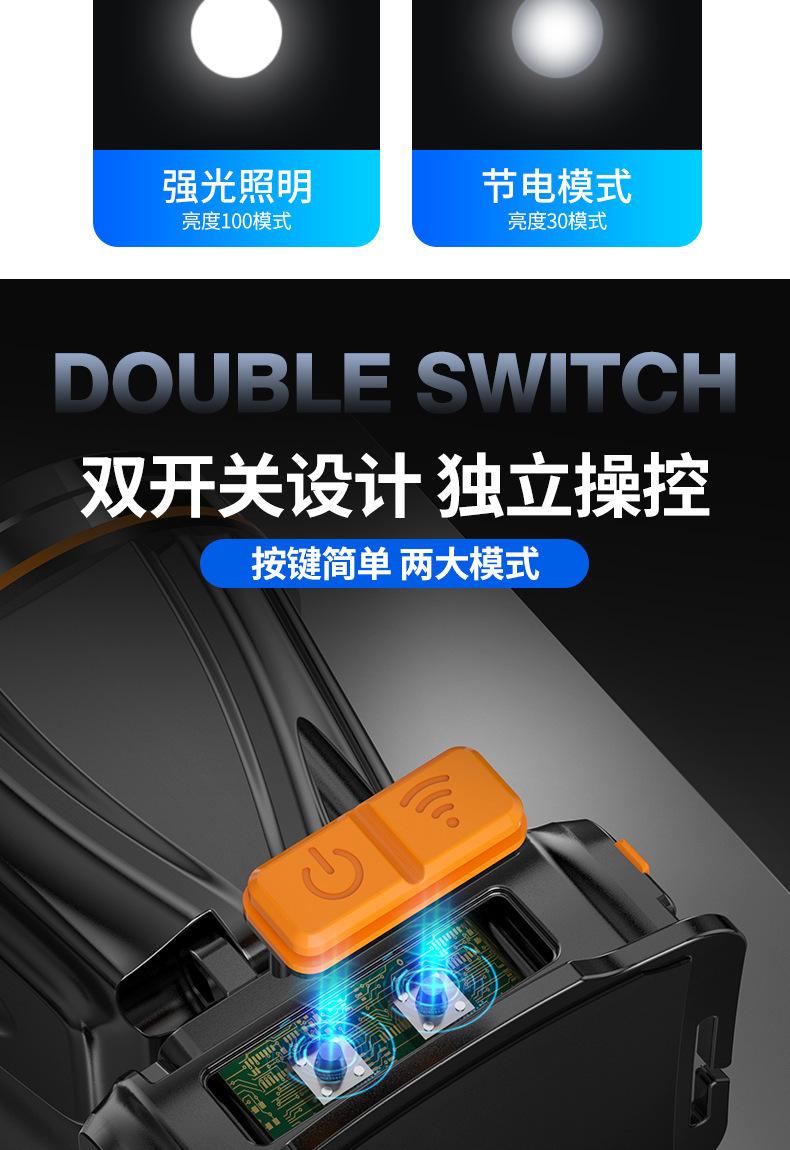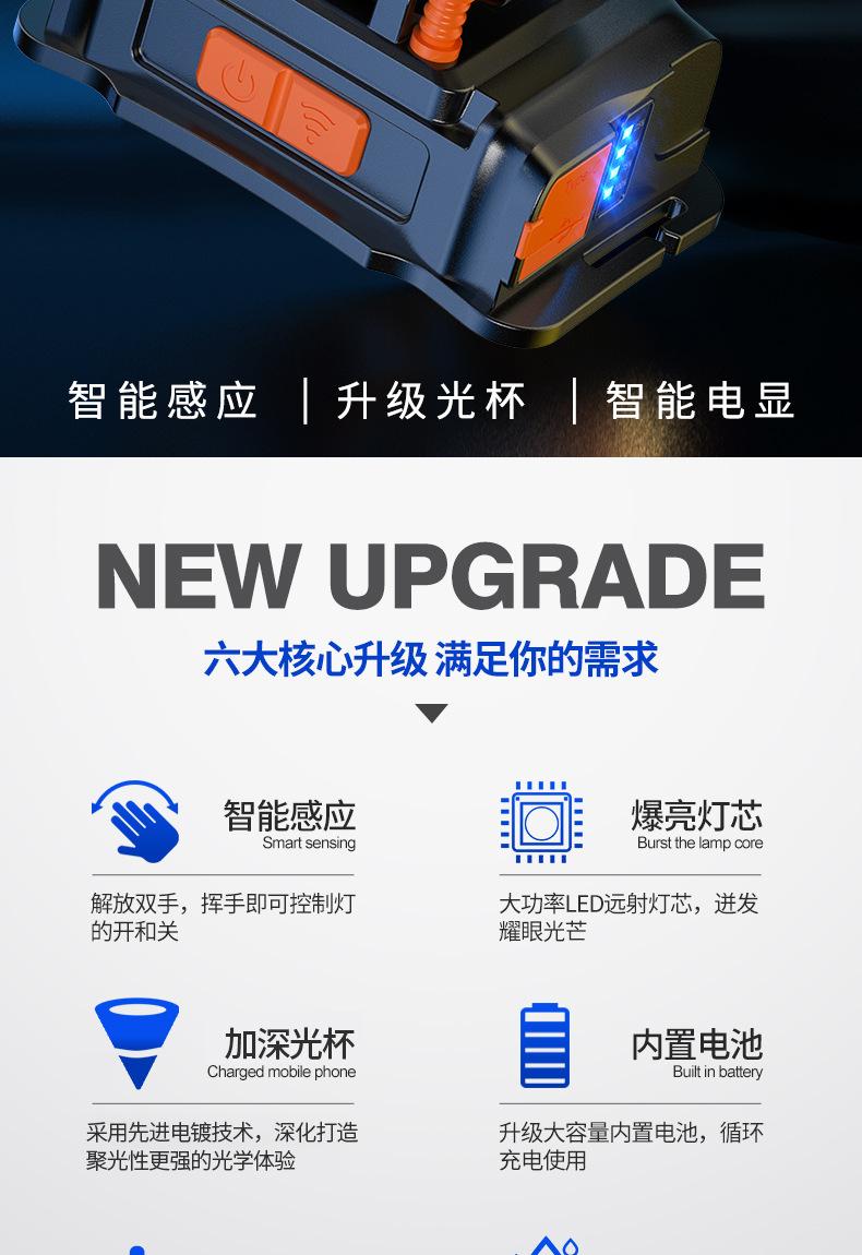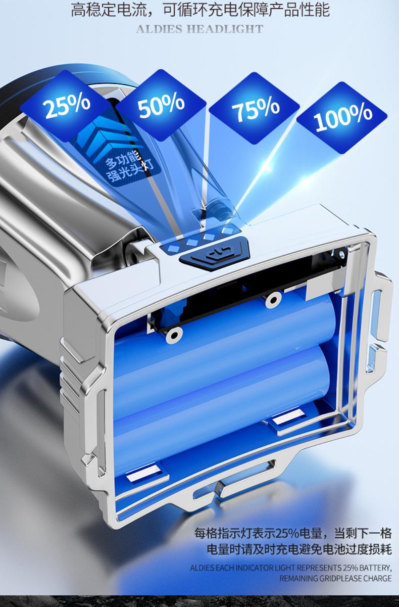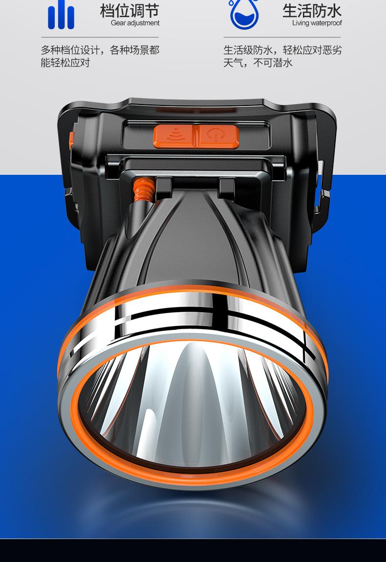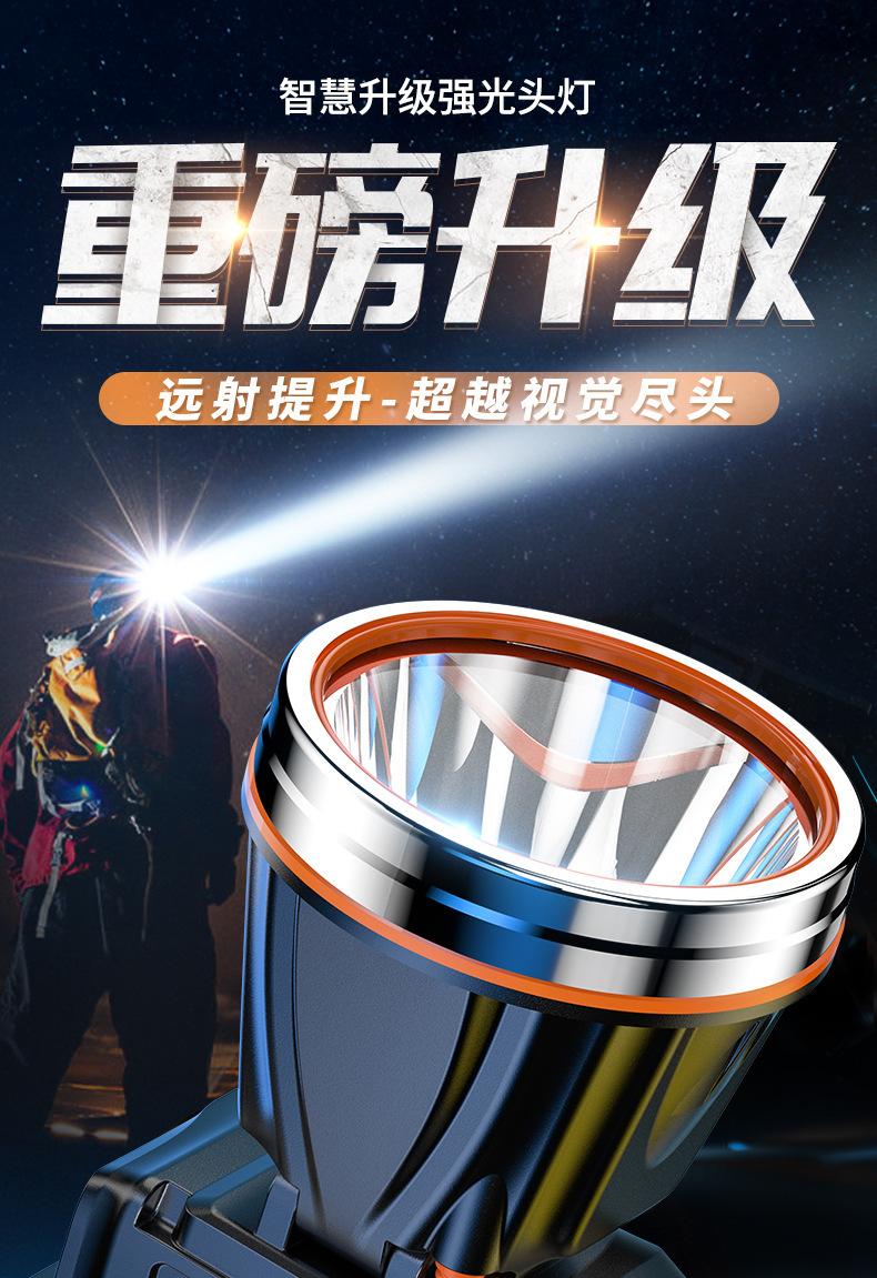 Linterna Recargable Impermeable de Luz Fuerte de Largo Alcance Transfronteriza Ultrabrillante Montada en la Cabeza Específica para Pesca Duración de Batería Ultralarga Lámpara de Cabeza