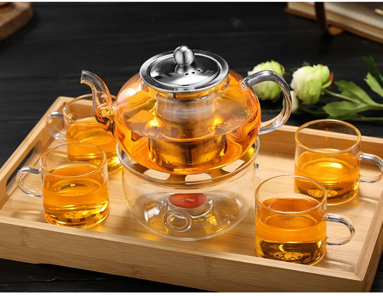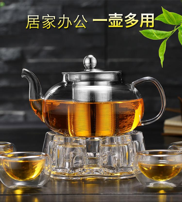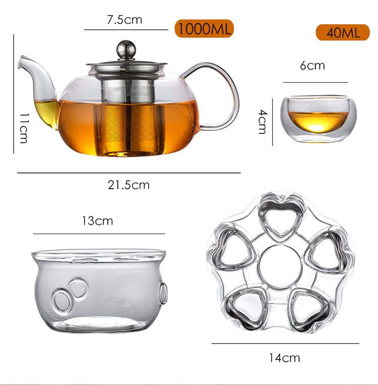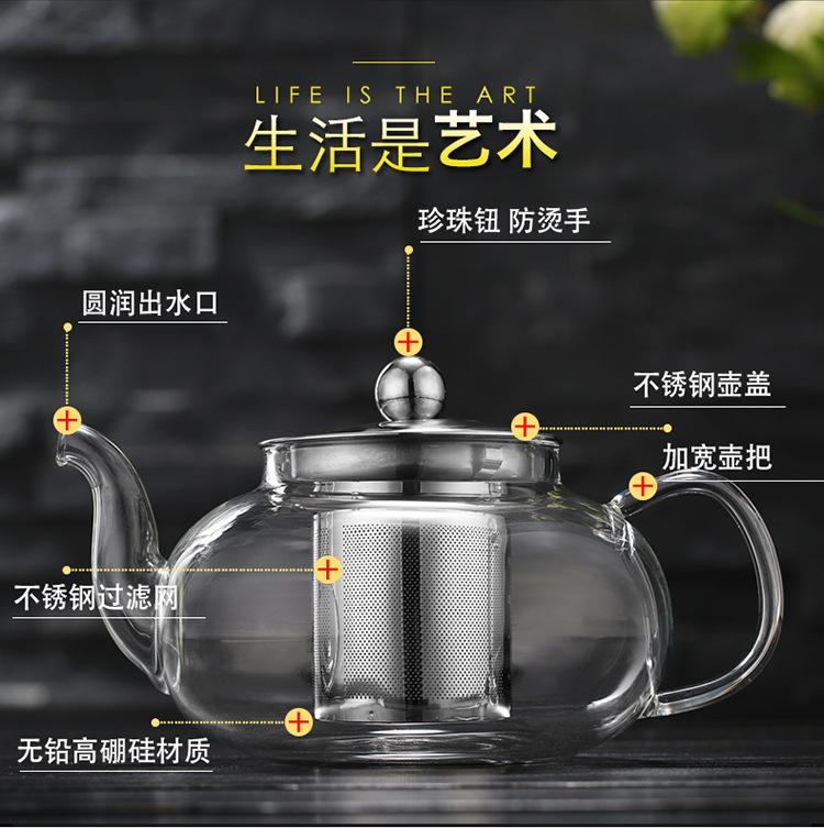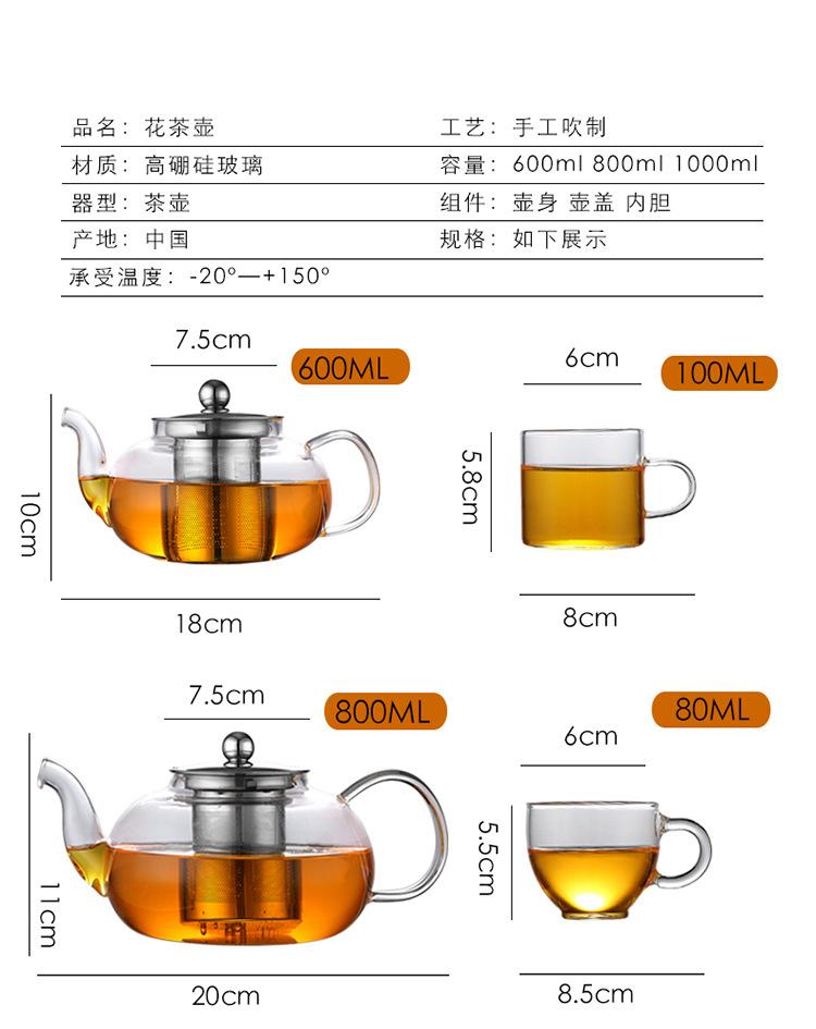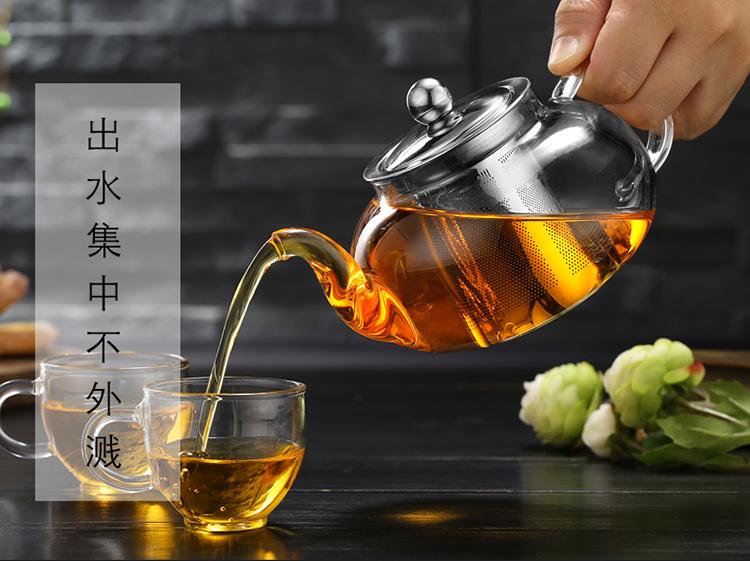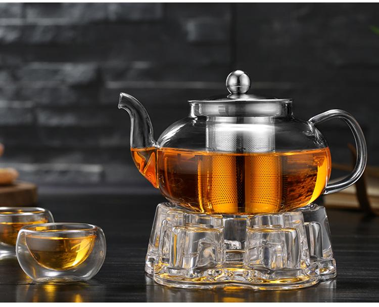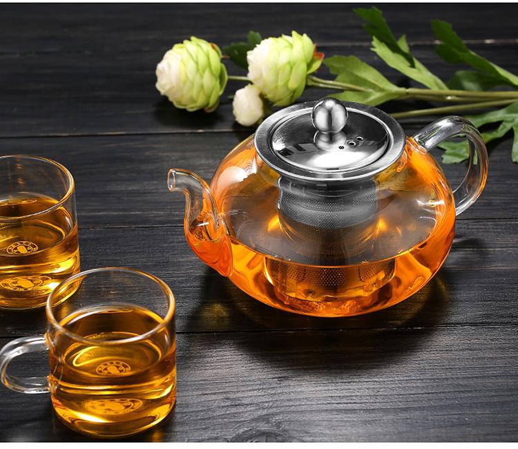 Tetera de Vidrio Transparente de Borosilicato Alto al por Mayor Tetera con Filtro Tetera de Flores Vidrio Resistente al Calor Vidrio para Té Kung Fu