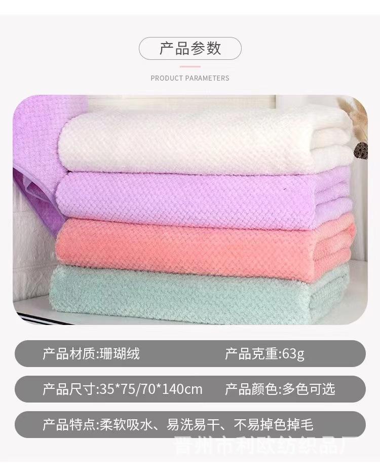 Suministro Transfronterizo de Toallas de Terciopelo Coral, Juego de Toallas de Baño de Terciopelo Coral con Cuadros de Piña, Toalla de Playa Absorbente y de Secado Rápido, Toalla Grande